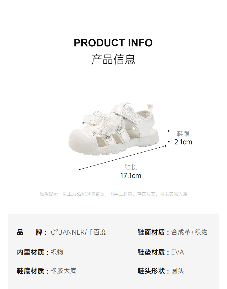 千百度2026夏季趣味珍珠 卡通造型透气休闲凉鞋童鞋A26362001