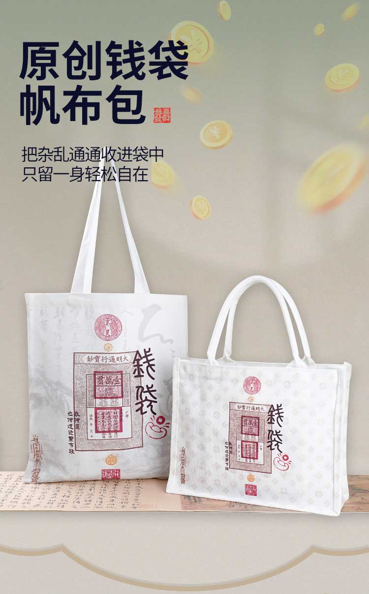 原创设计钱袋帆布包钱来钱来两种款式可选结实耐用日常出行和通勤