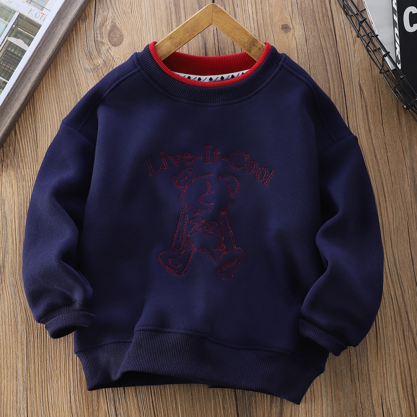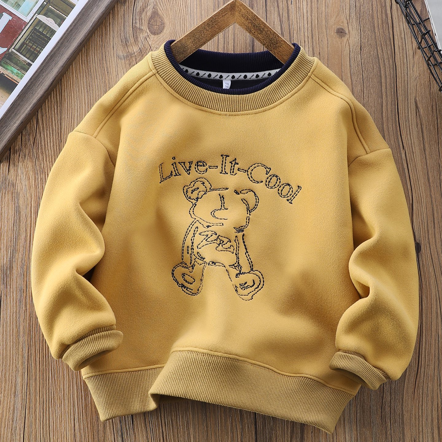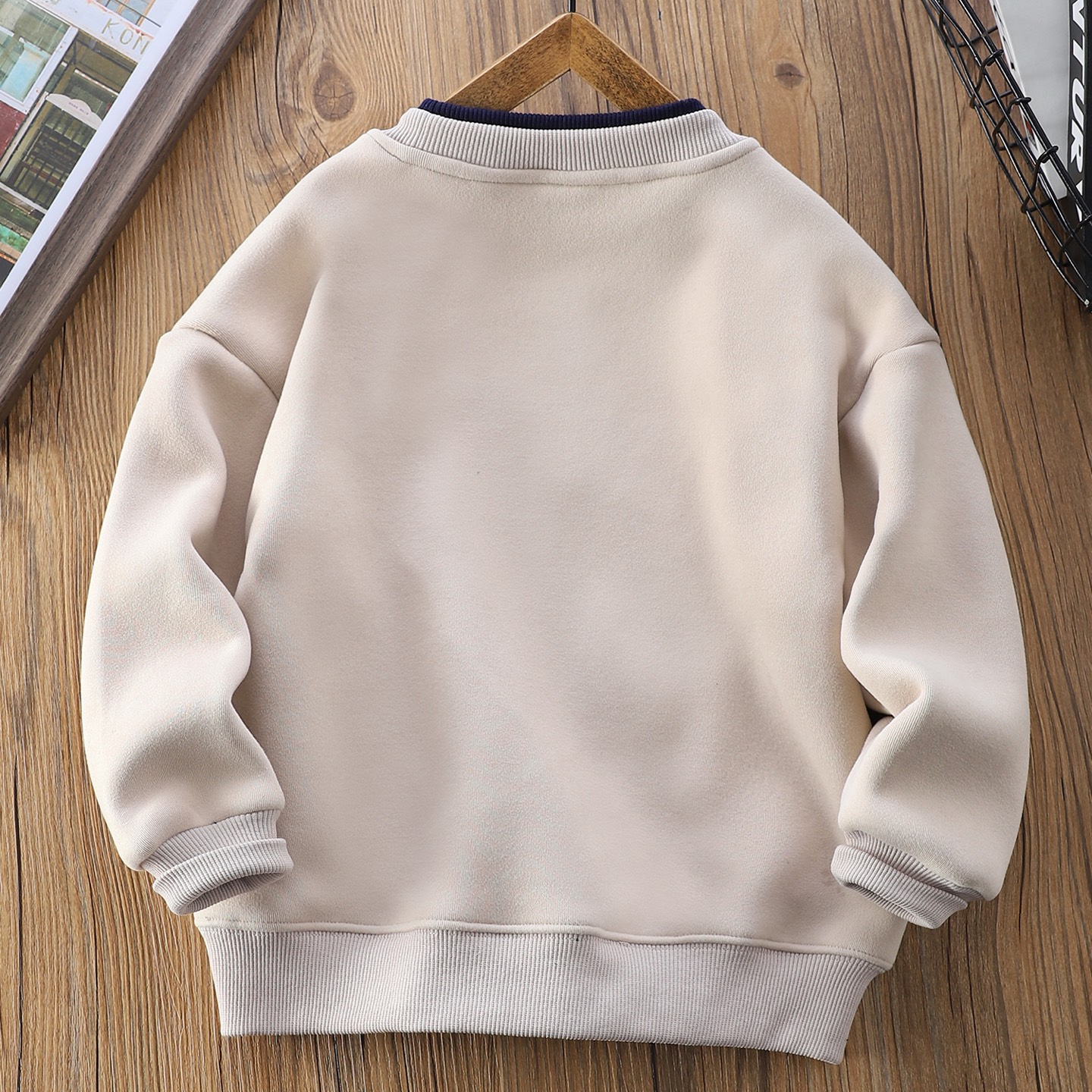 110-170加厚!加绒卫衣刺绣假两件秋冬保暖卫衣 小立领