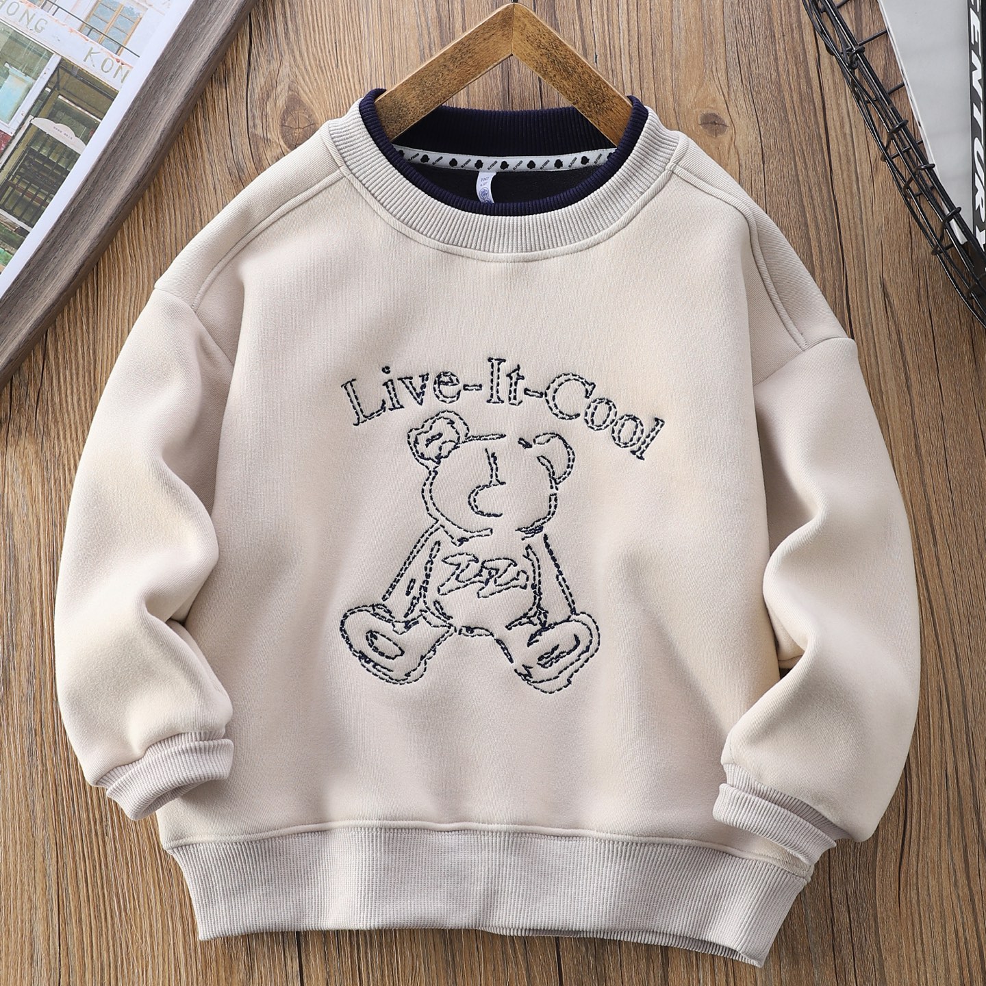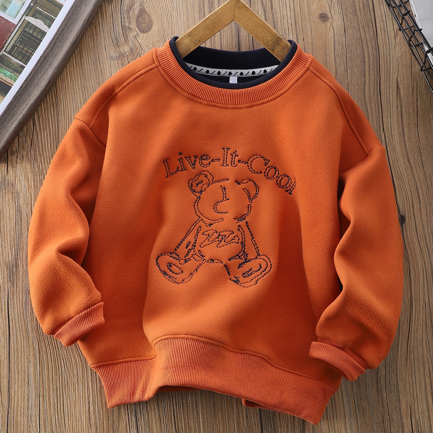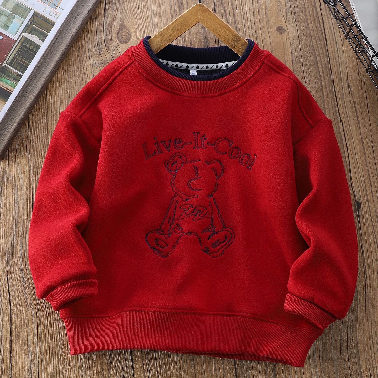 110-170加厚!加绒卫衣刺绣假两件秋冬保暖卫衣 小立领