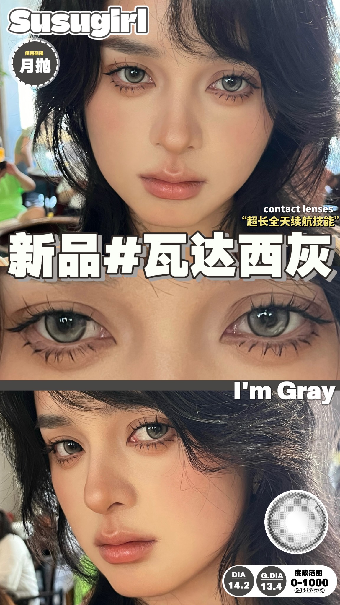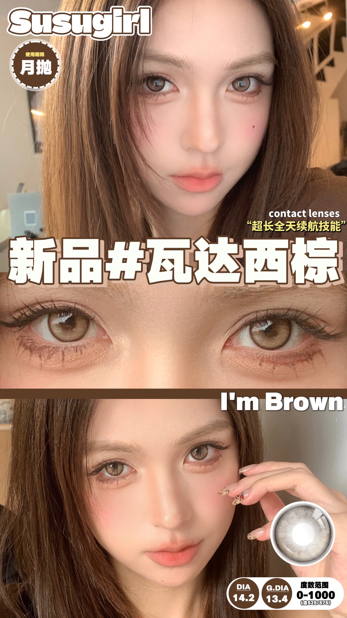 susugirl月抛 瓦达西灰/瓦达西棕 14.2mm 水凝胶