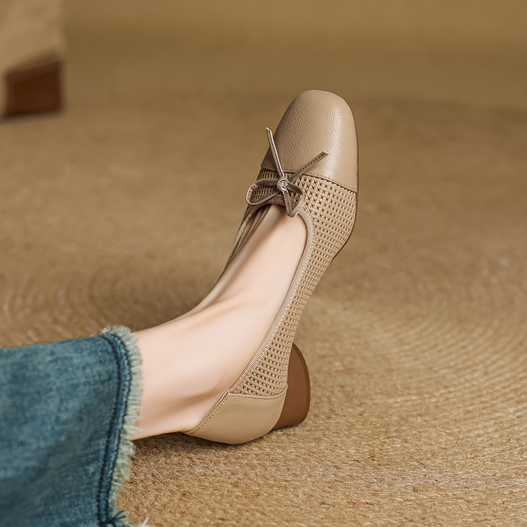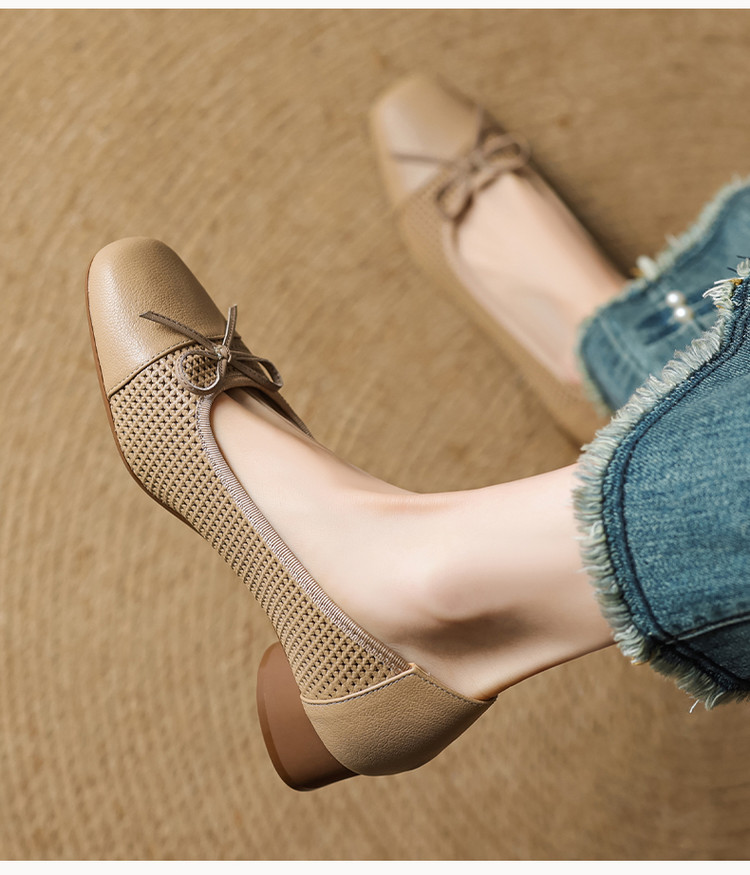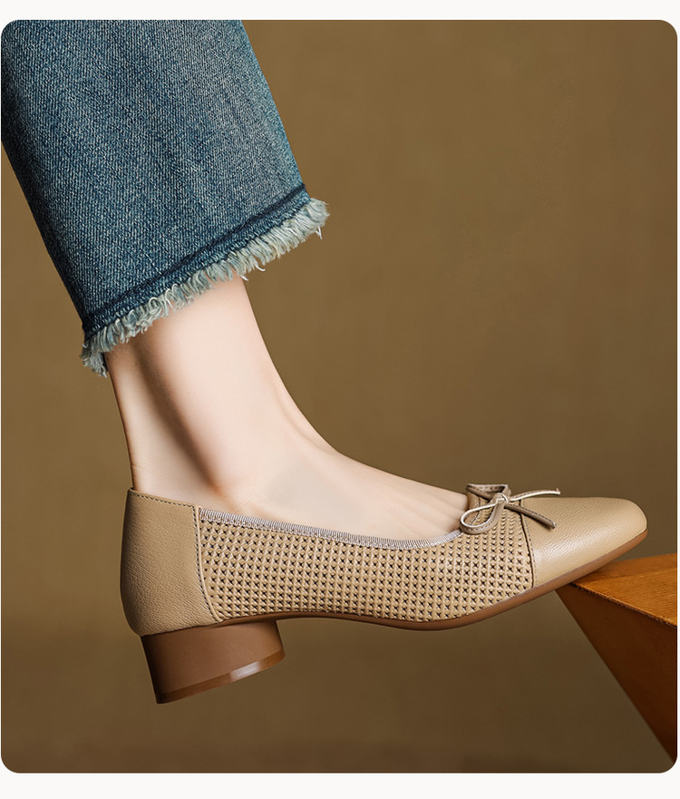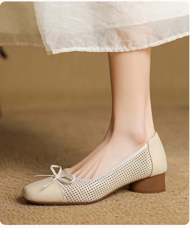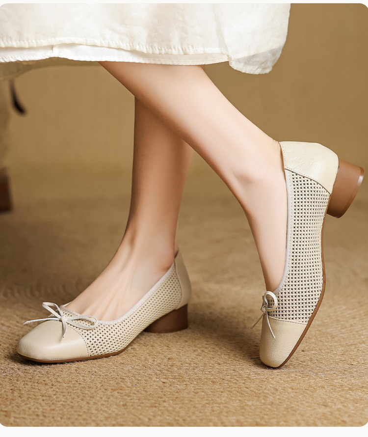【预售5天】透气春夏低跟羊皮镂空压孔真皮洞洞单鞋QCNX&84-15