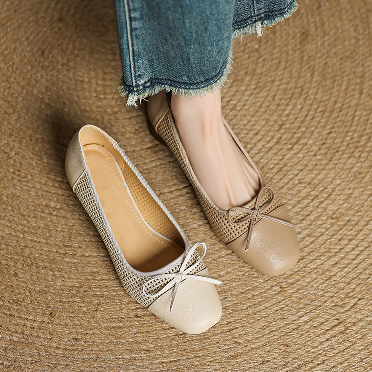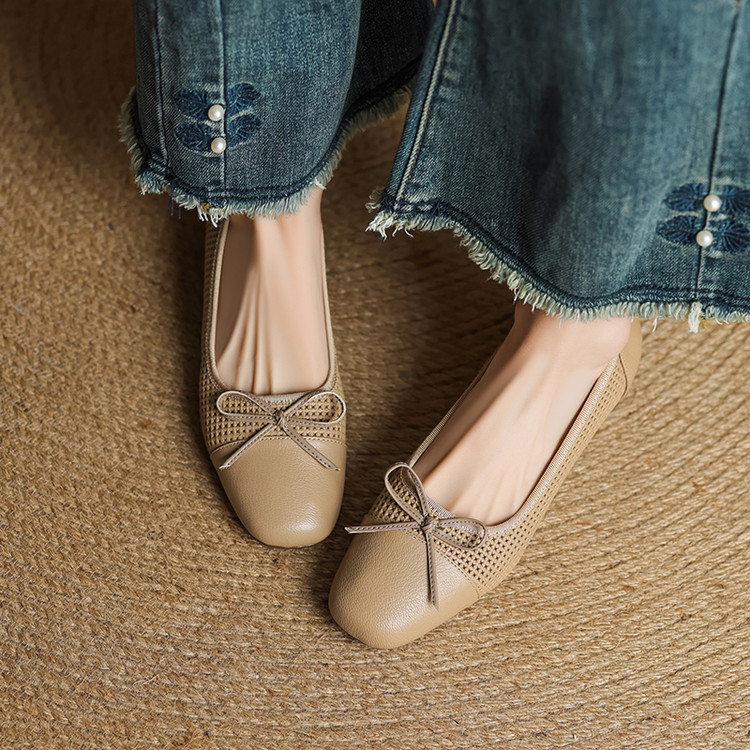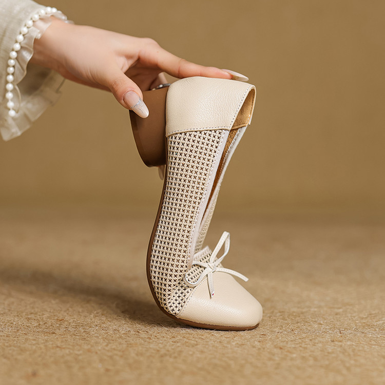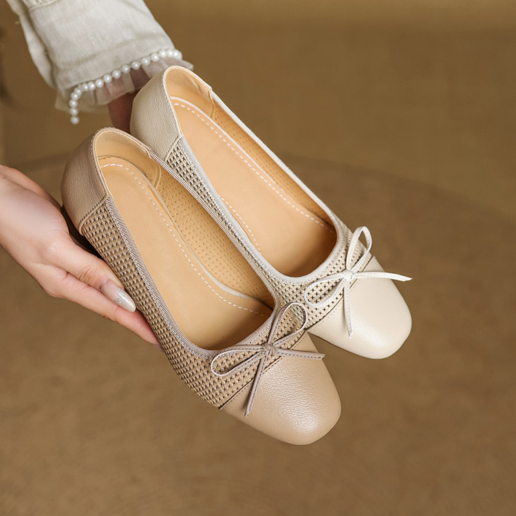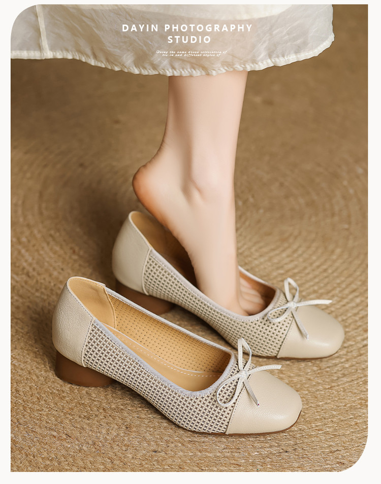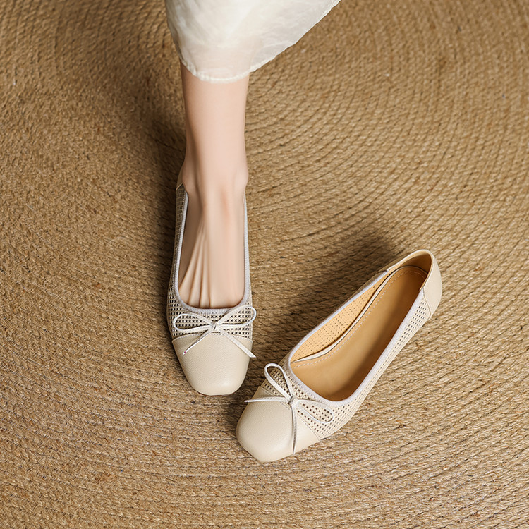 【预售5天】透气春夏低跟羊皮镂空压孔真皮洞洞单鞋QCNX&84-15