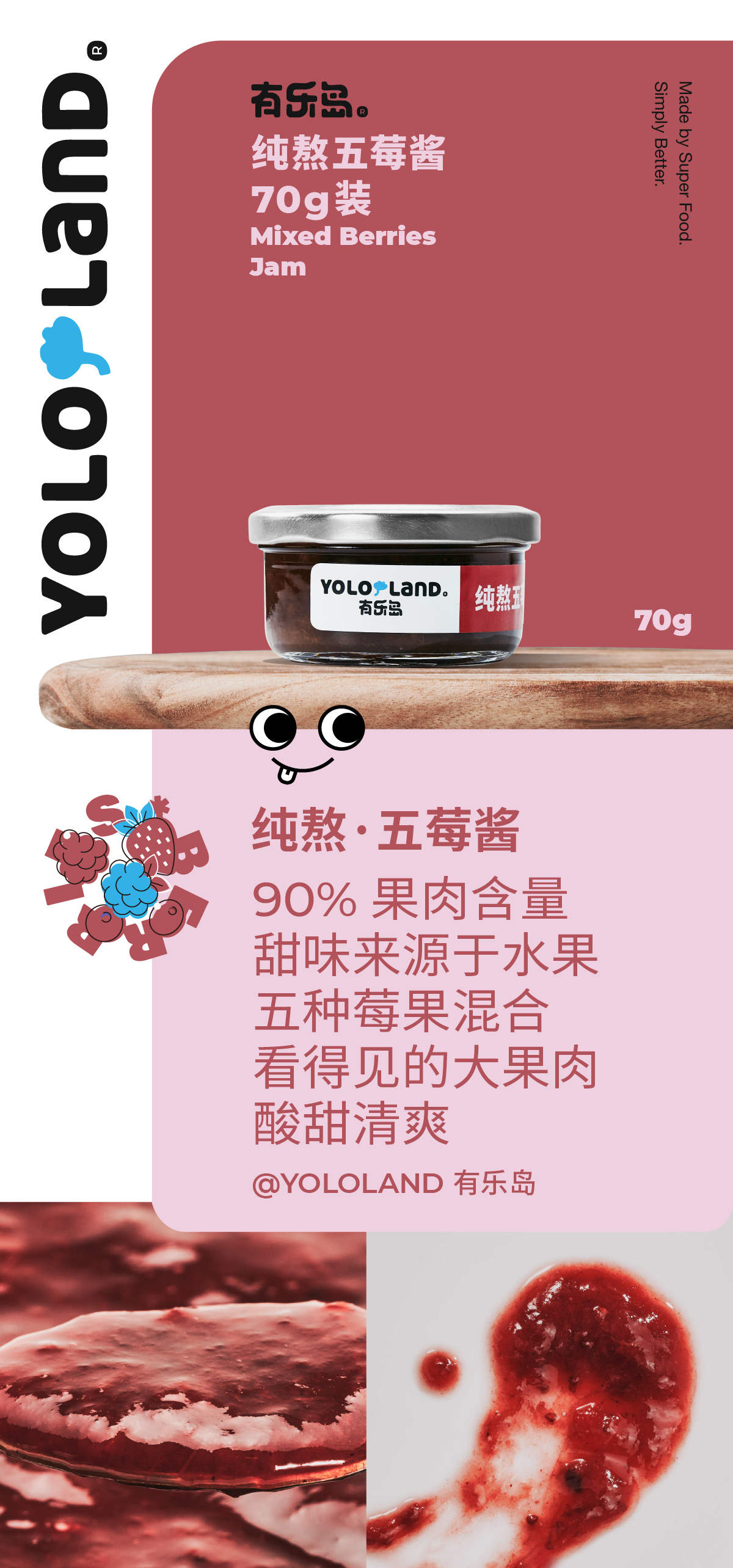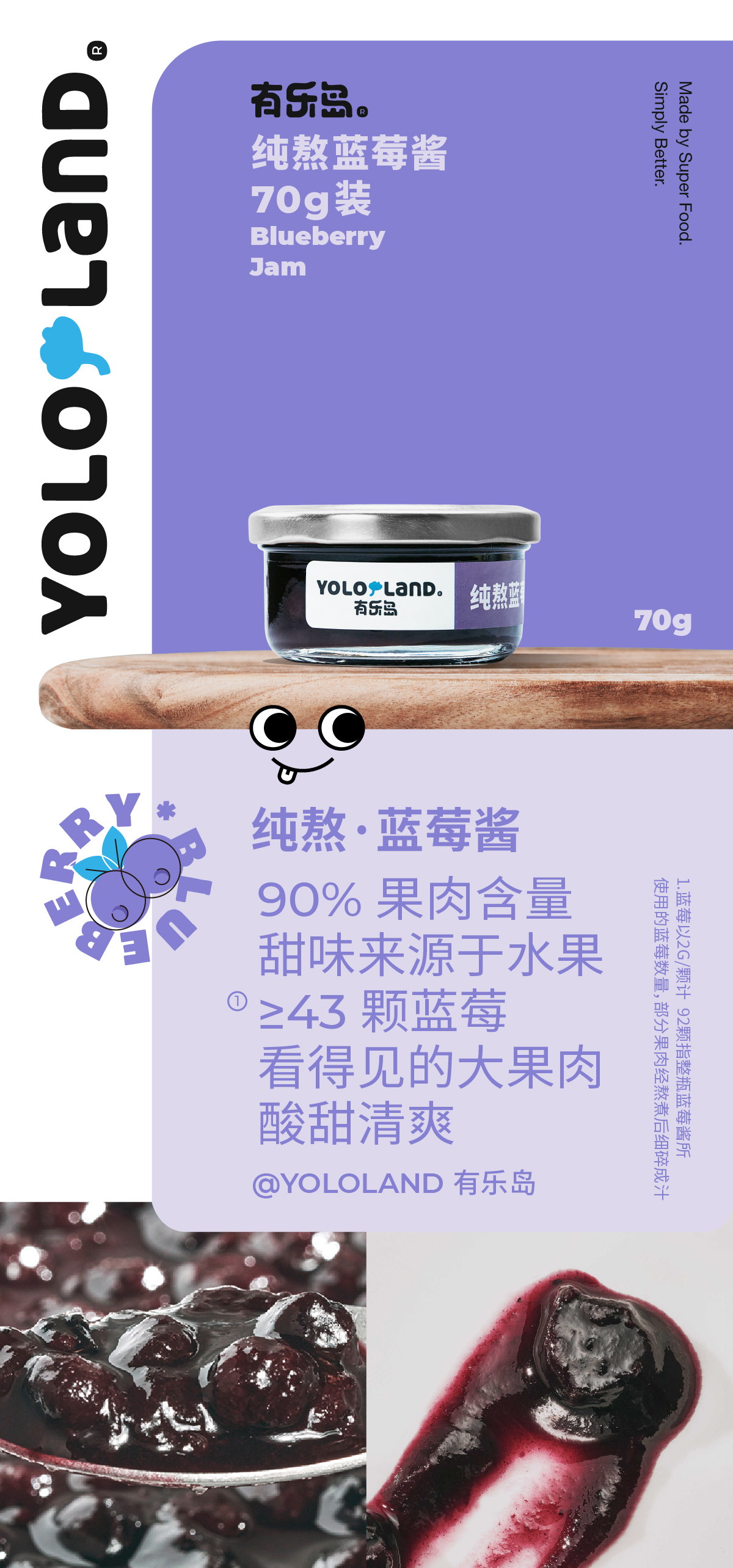 有乐岛 / 纯熬水果酱小罐装70g 无添加果胶白砂糖/蓝莓酱/草莓酱/五莓酱/杏子酱