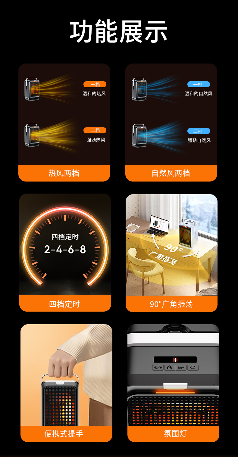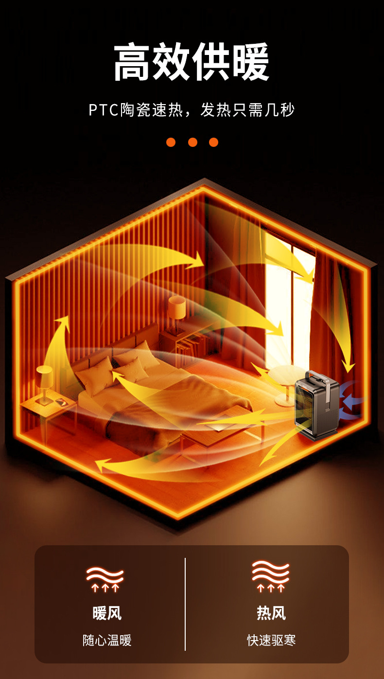 【节能桌面暖风机】小型家用取暖器 热风机电暖器冷暖两用 广角送暖