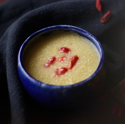 将枸杞、黄芪洗净与适量黄小米一 起煮熟即可。想喝甜的朋友可酌量加椰子花糖或红糖。