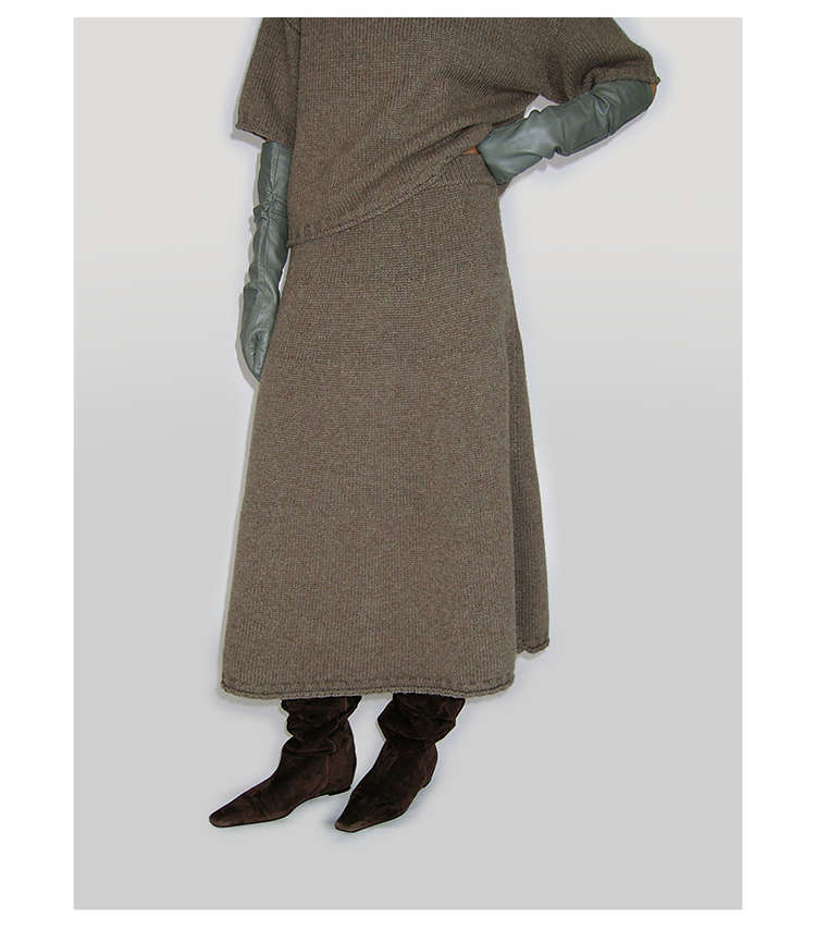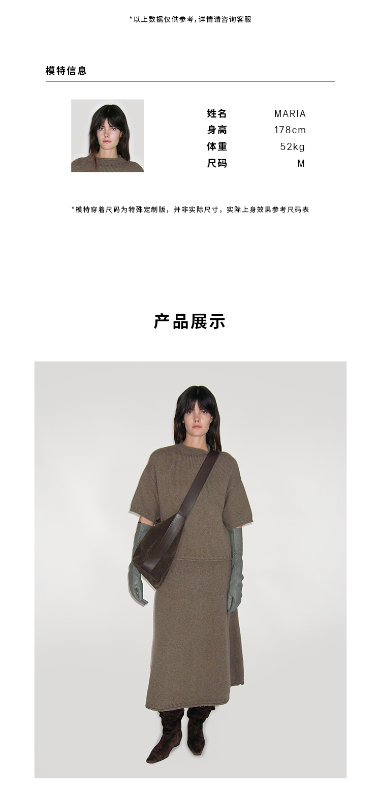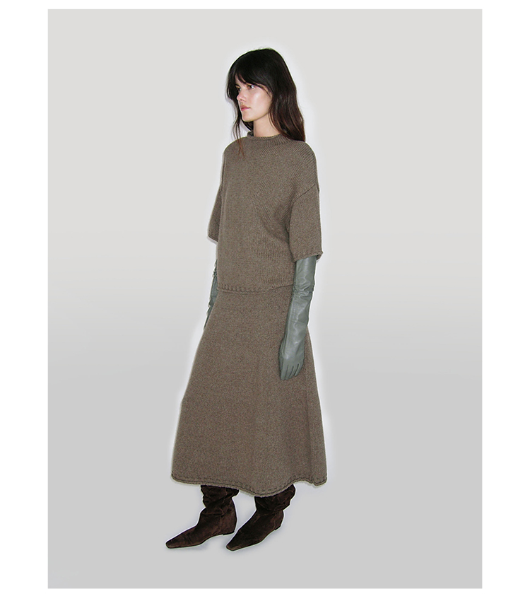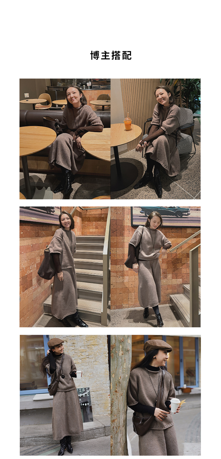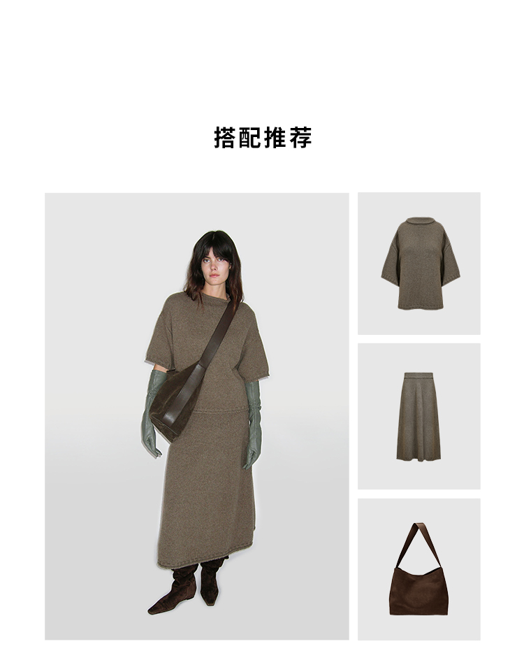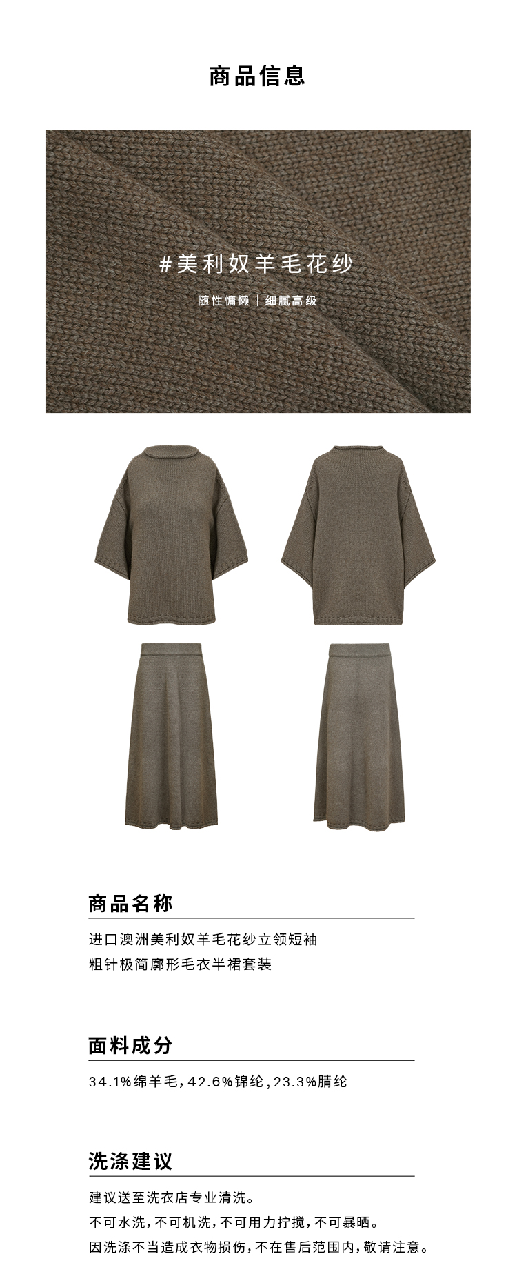 HIDEMI 进口澳洲美利奴羊毛花纱立领短袖粗针极简廓形毛衣半裙套装 毛衣|茧型半裙