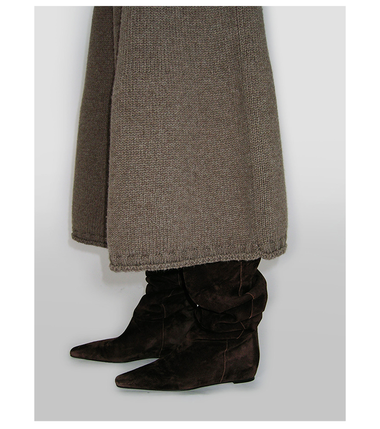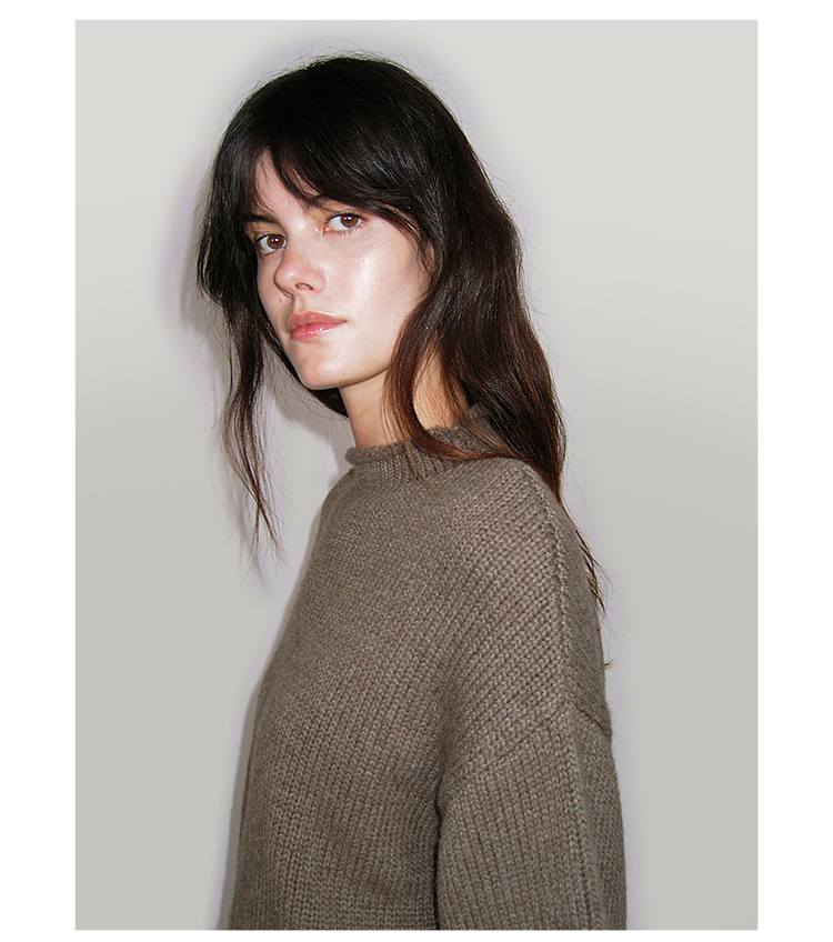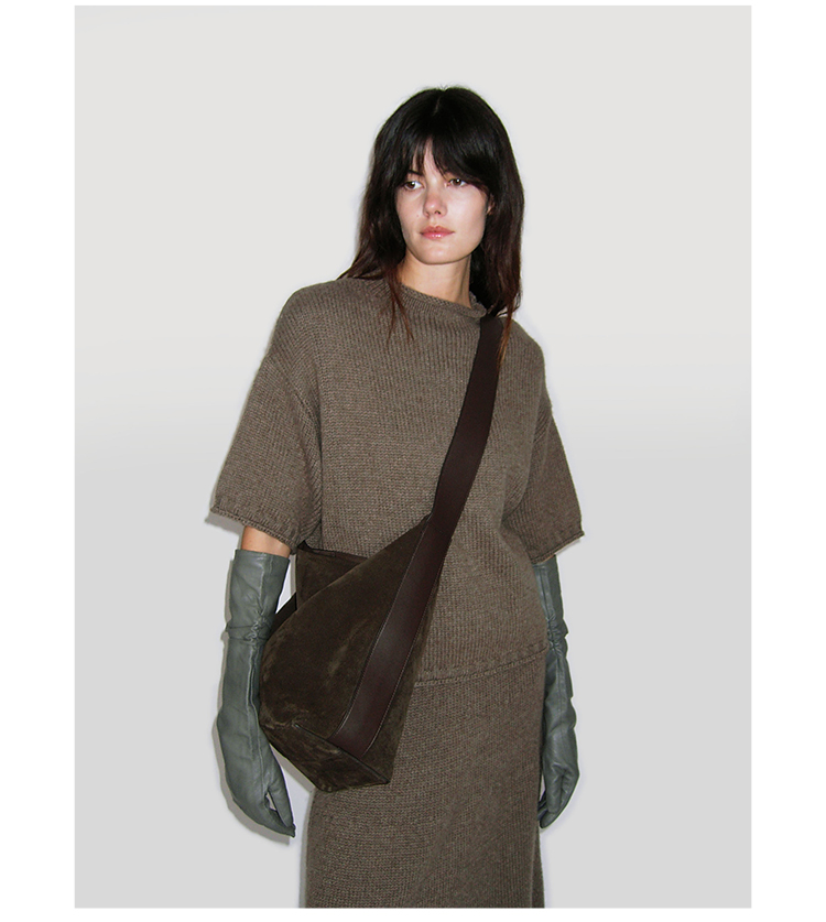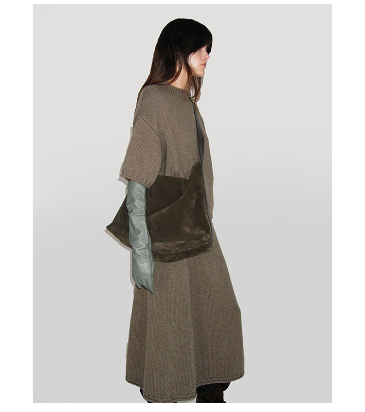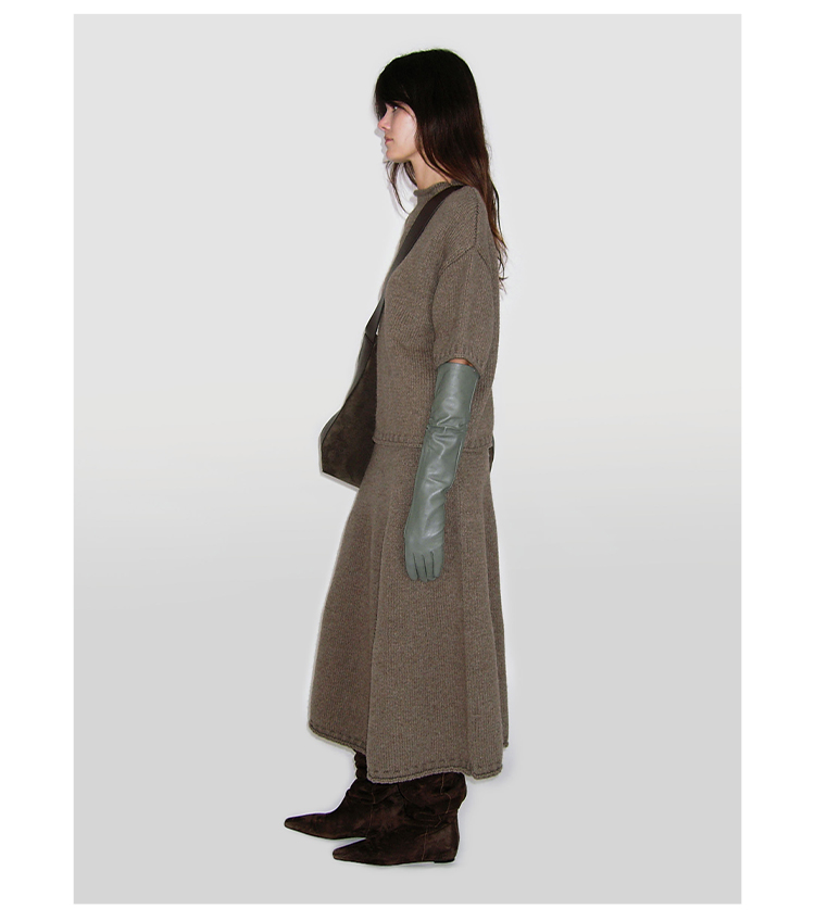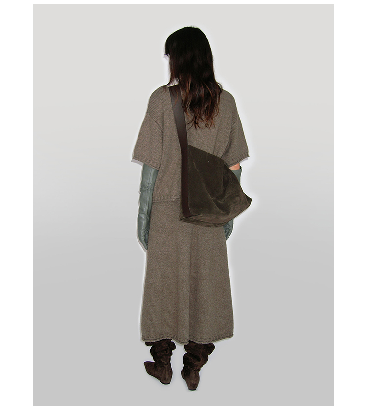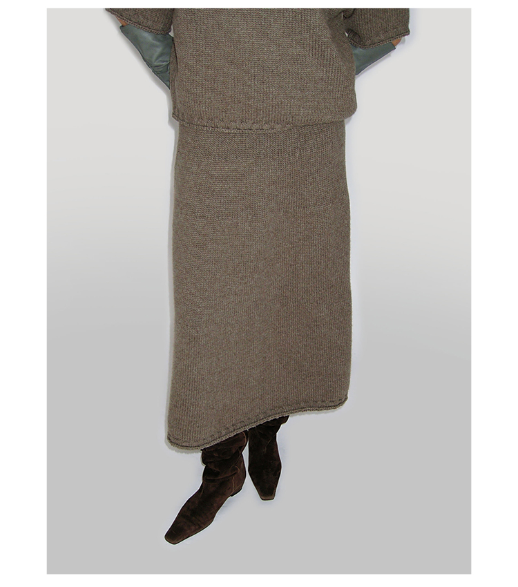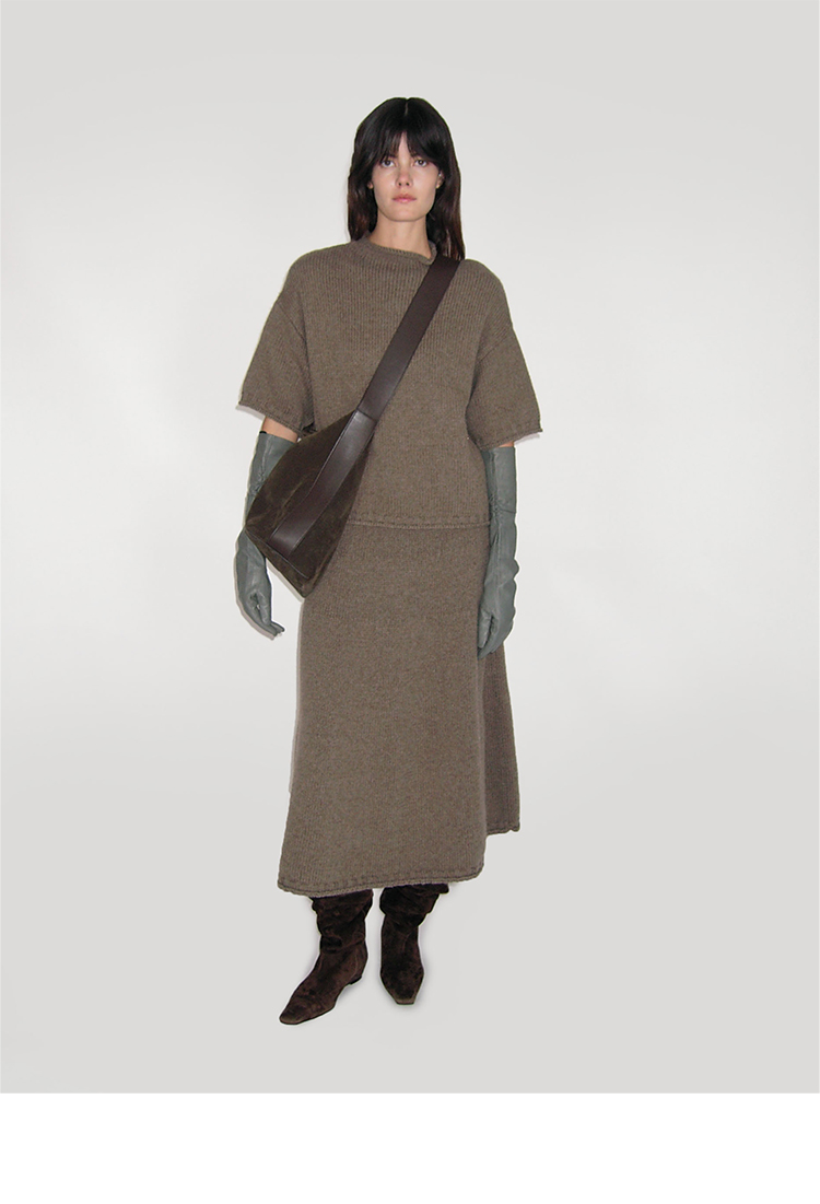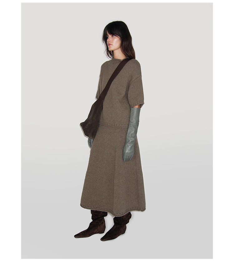 HIDEMI 进口澳洲美利奴羊毛花纱立领短袖粗针极简廓形毛衣半裙套装 毛衣|茧型半裙