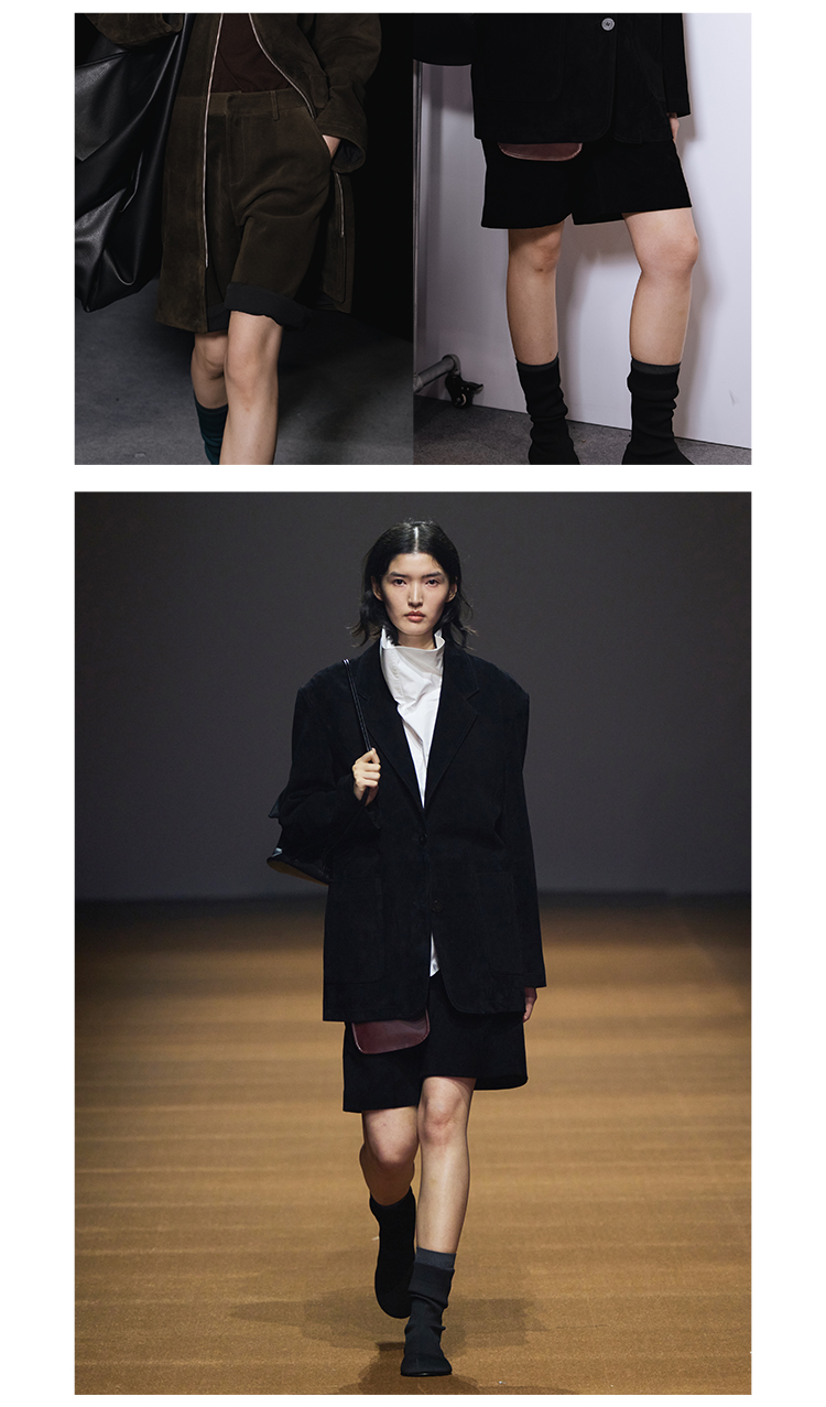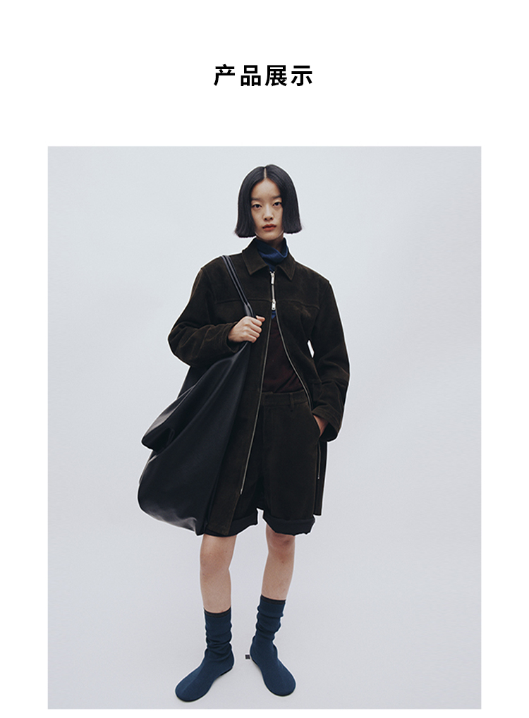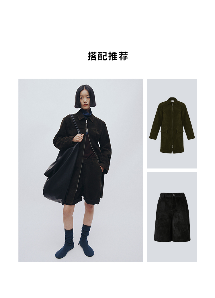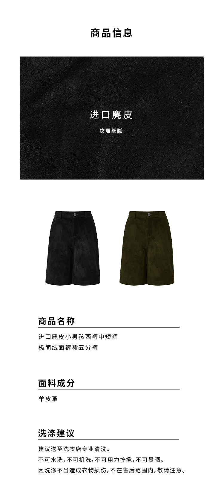 HIDEMI进口麂皮小男孩西裤中短裤极简绒面裤裙五分裤 黑色/墨绿色