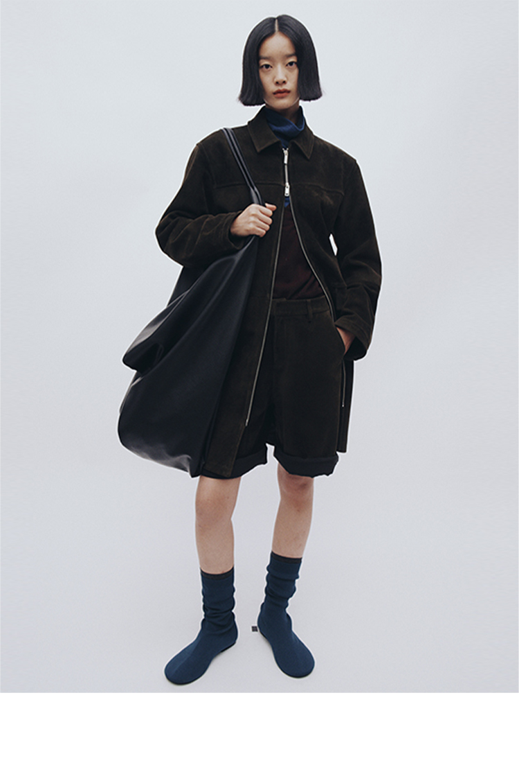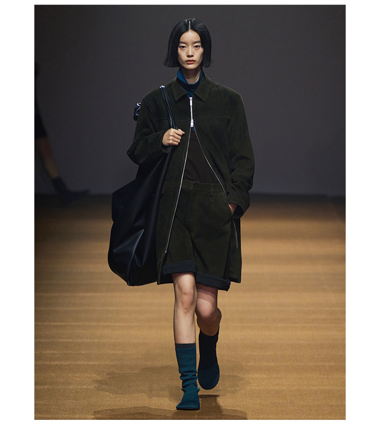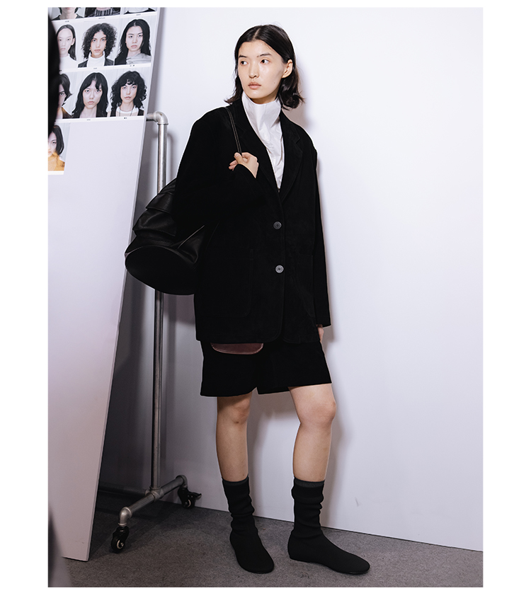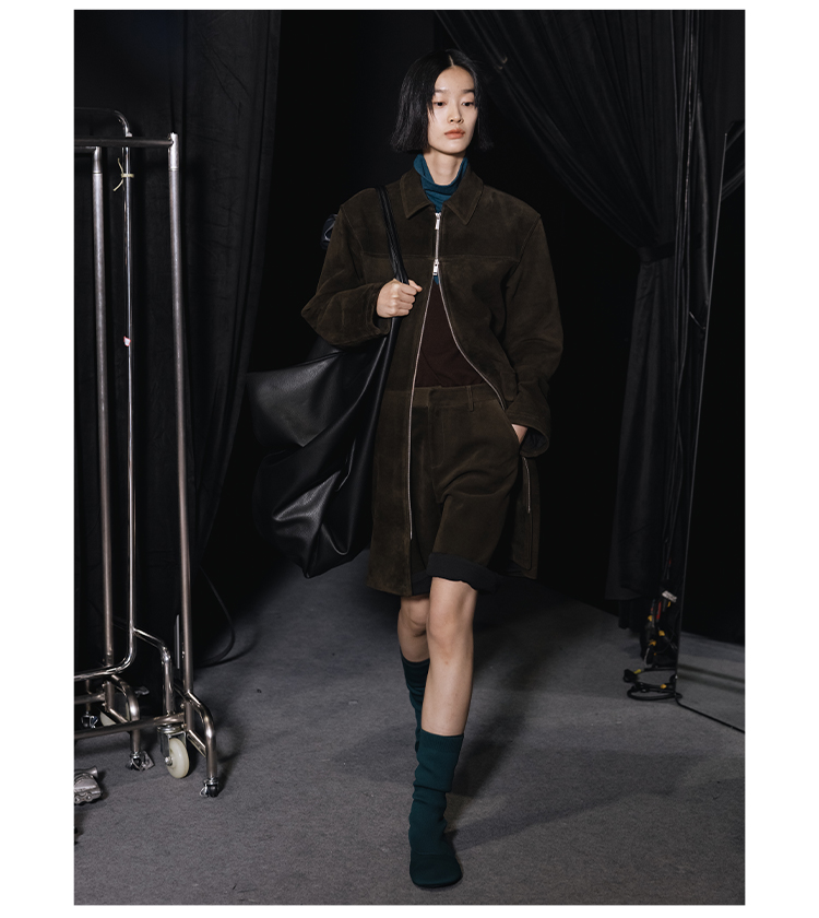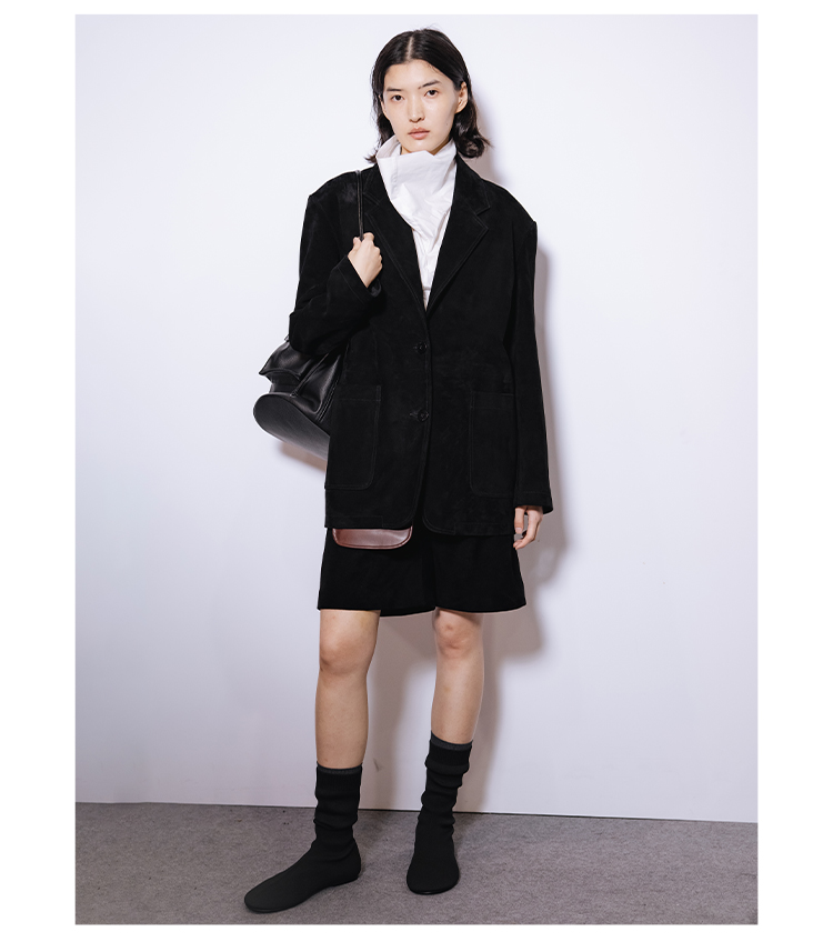 HIDEMI进口麂皮小男孩西裤中短裤极简绒面裤裙五分裤 黑色/墨绿色