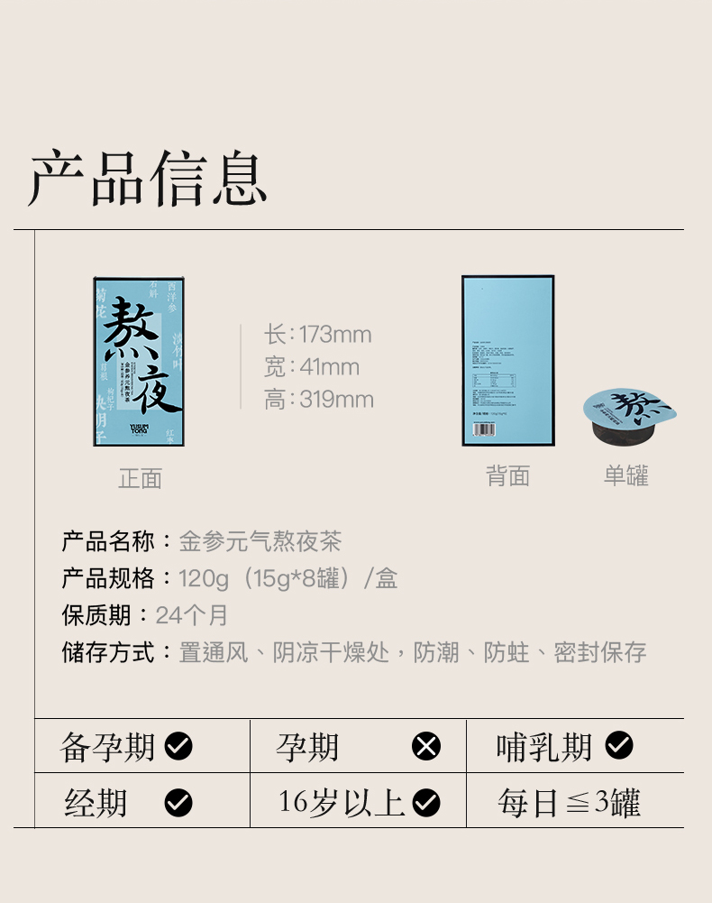 羽心堂 金参养元熬夜茶 120(15g*8罐)/盒
