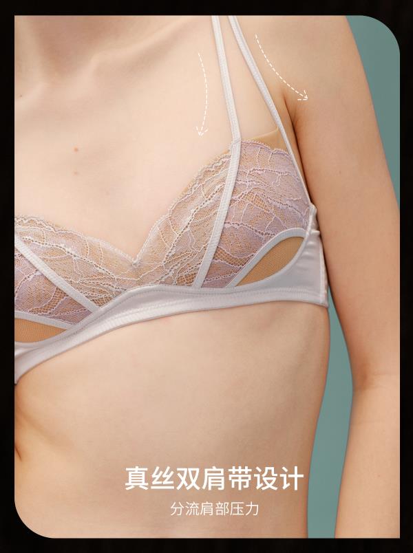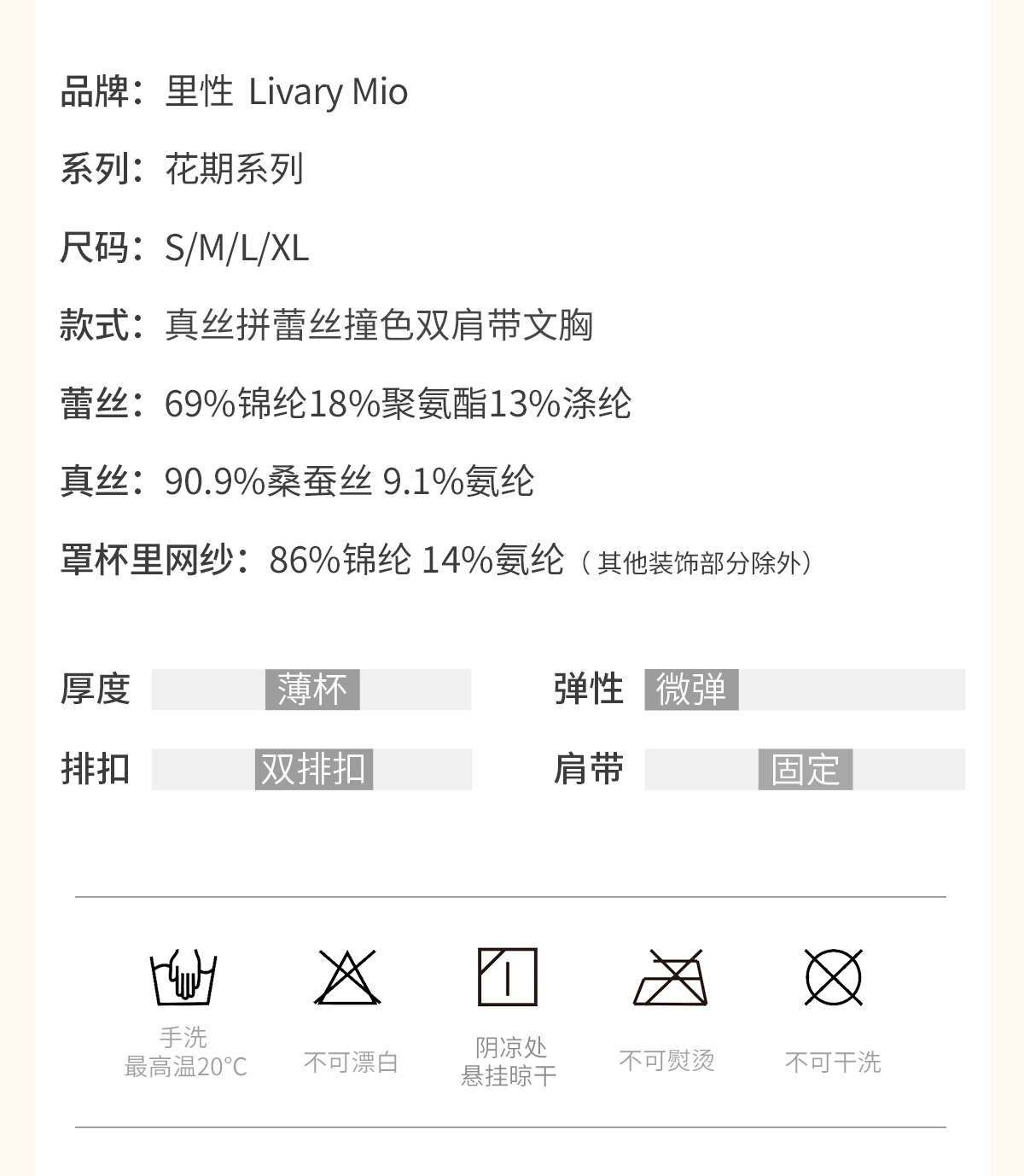 里性 LIVARY MIO 花期-Florescence 真丝拼蕾丝撞色内衣双肩带文胸