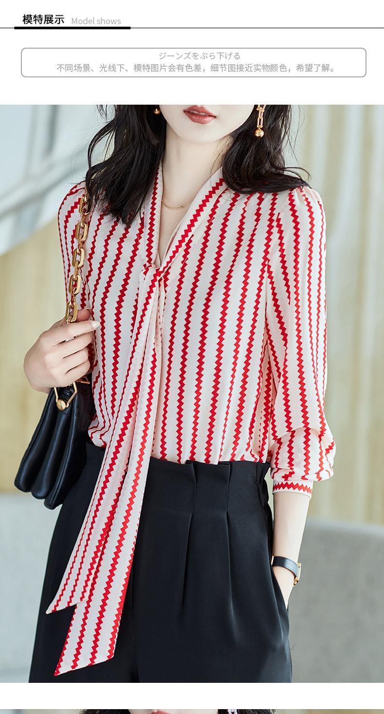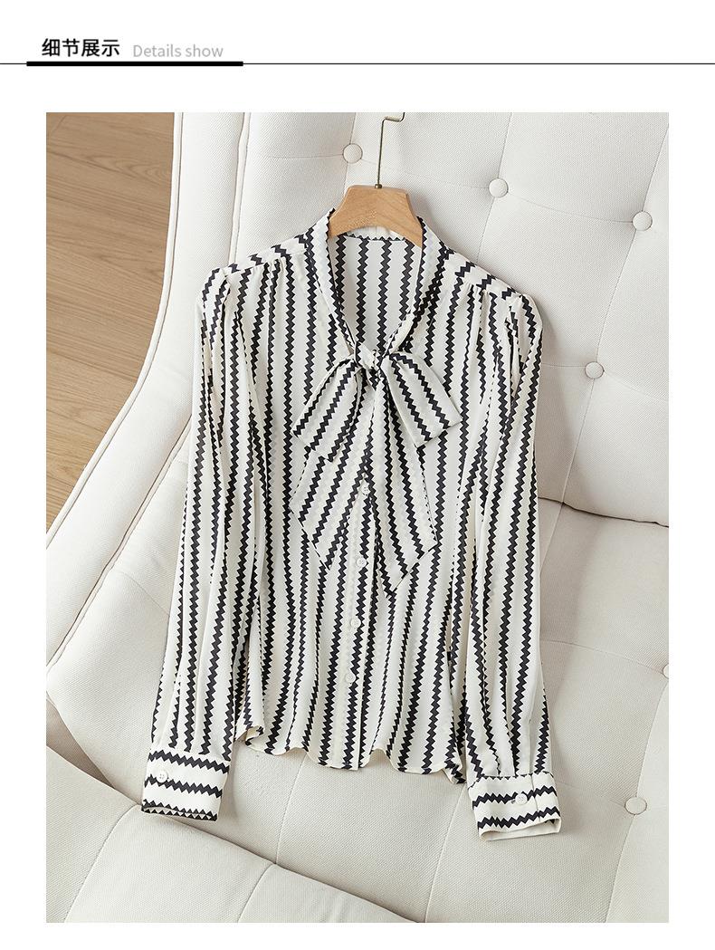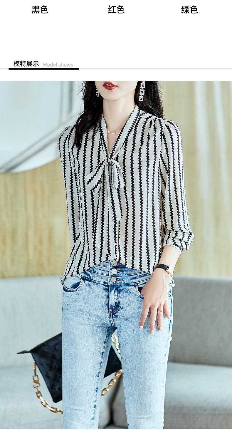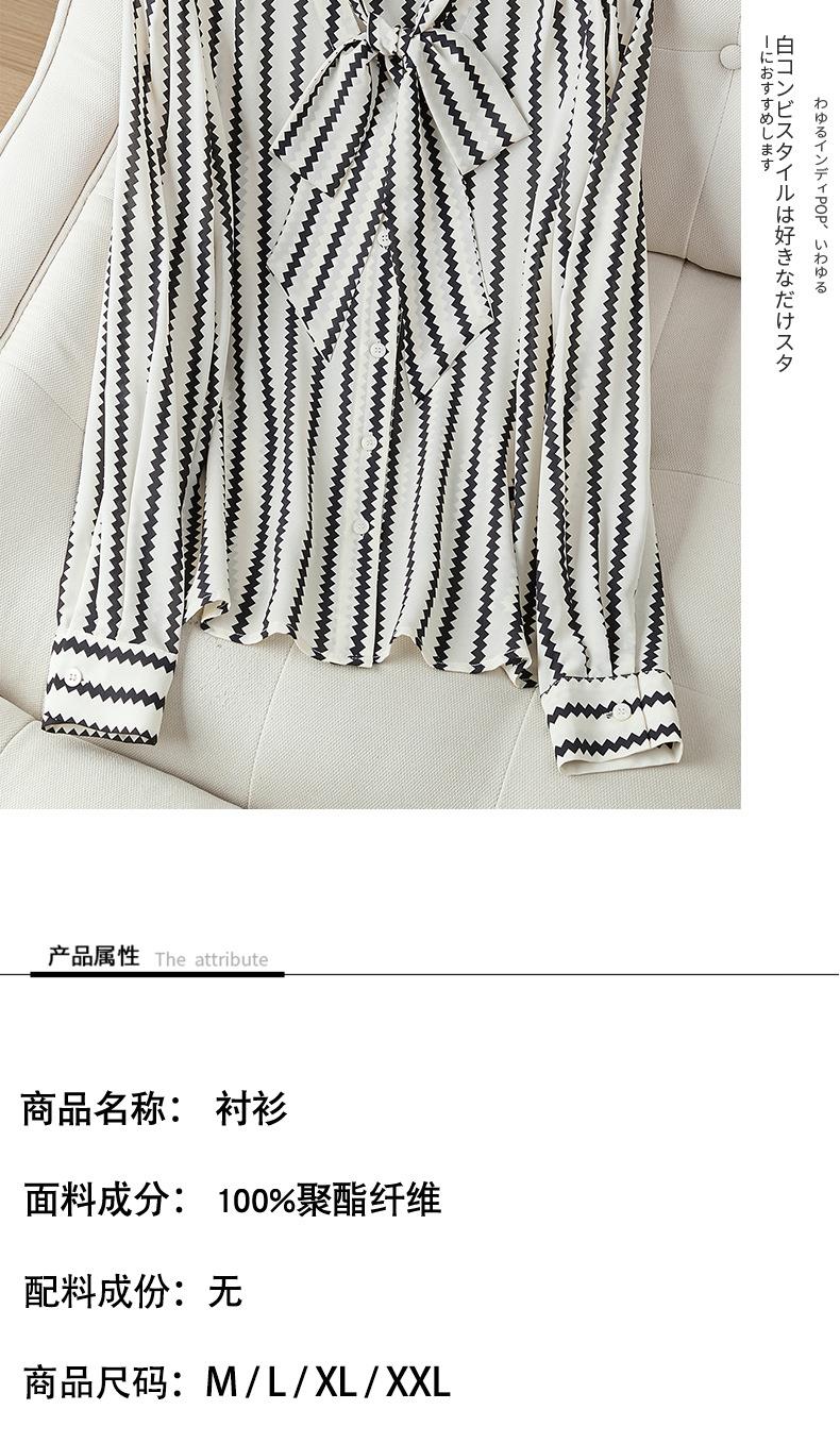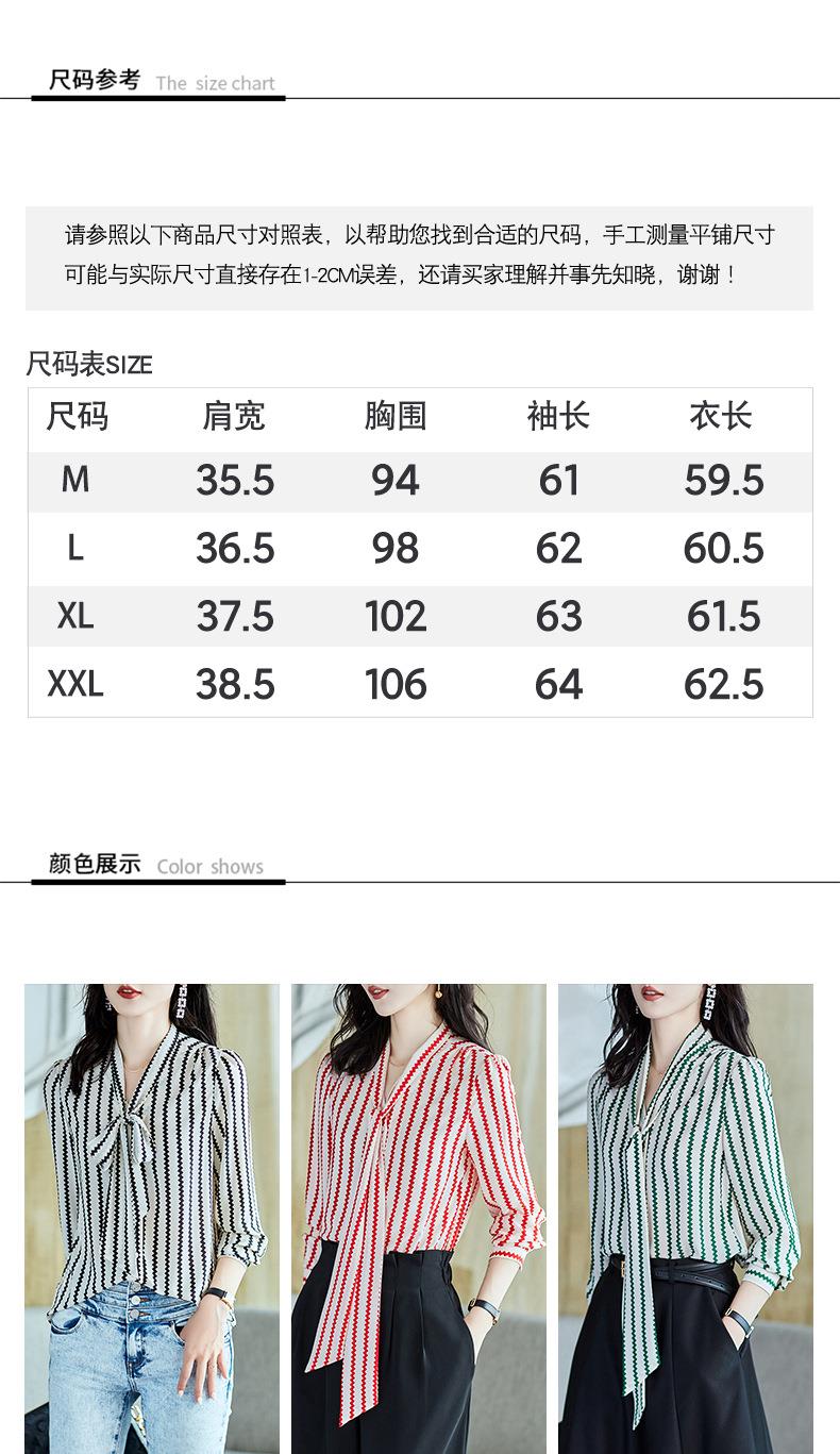 2023秋装新款衬衫女长袖宽松雪纺衫条纹女士衬衣A2755