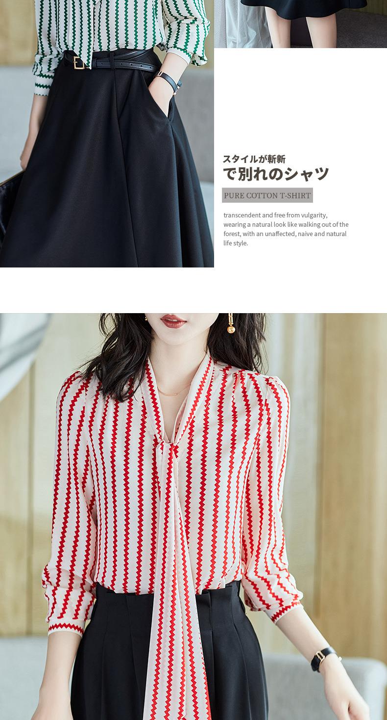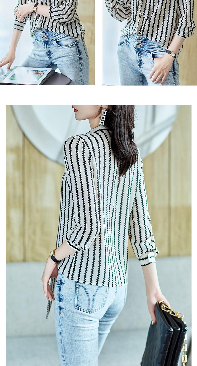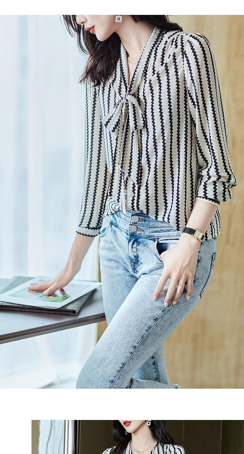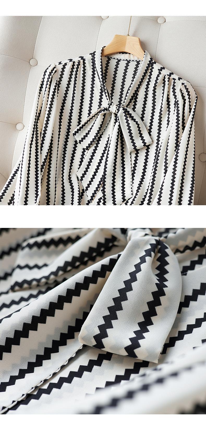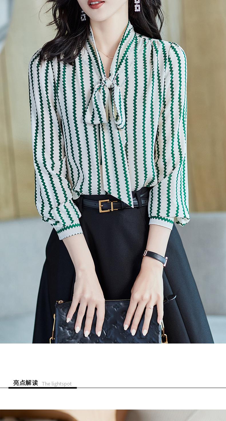 2023秋装新款衬衫女长袖宽松雪纺衫条纹女士衬衣A2755