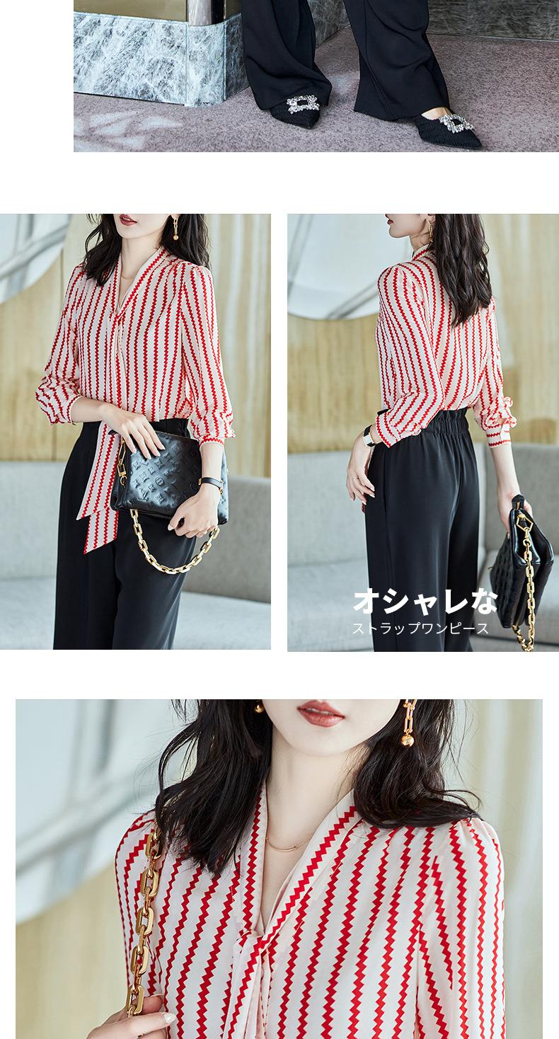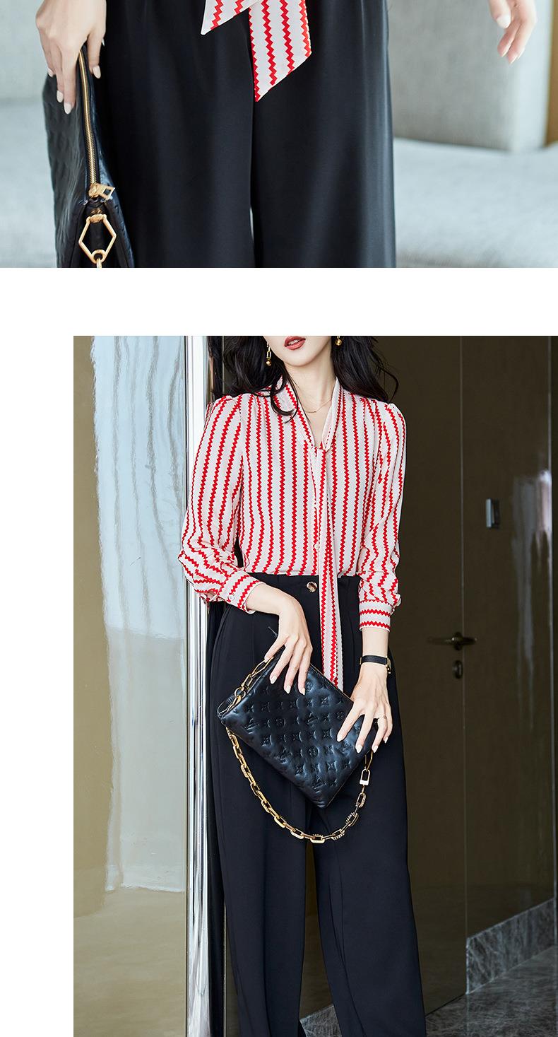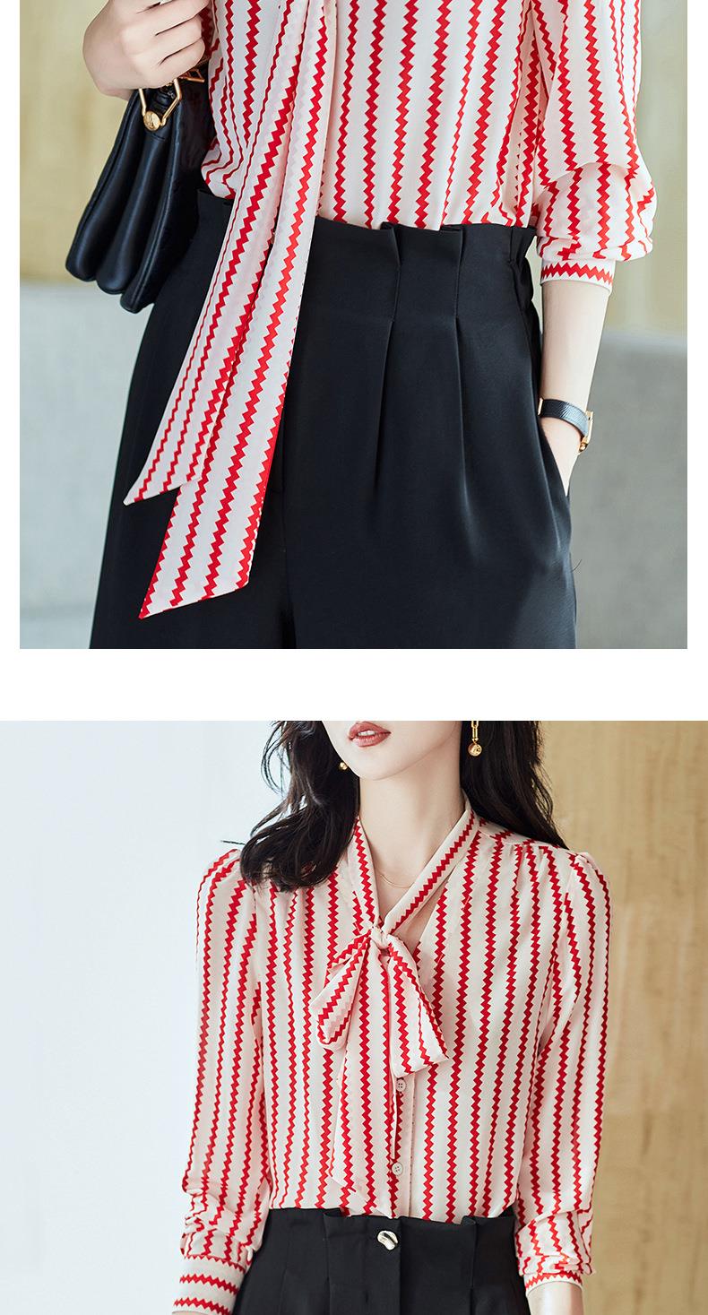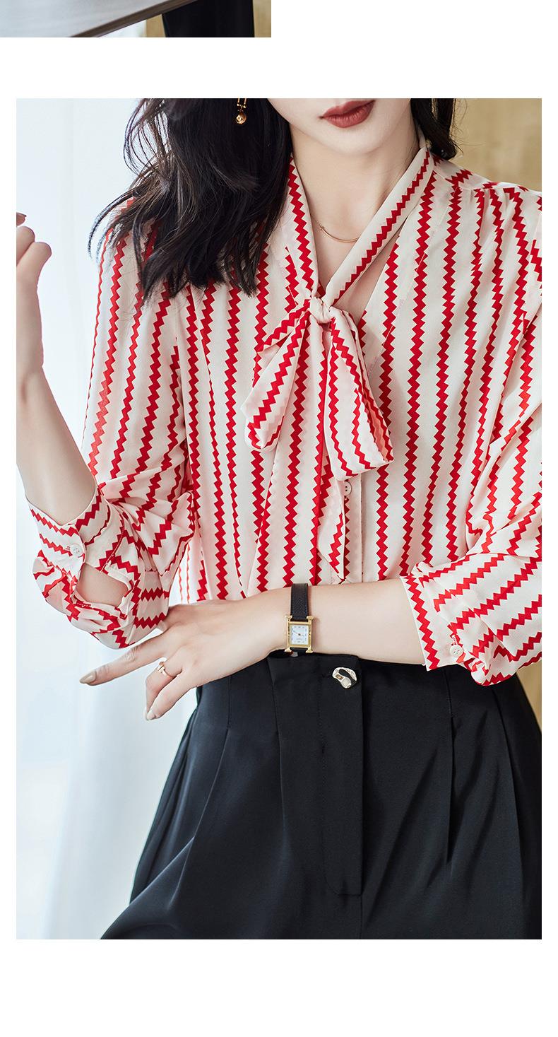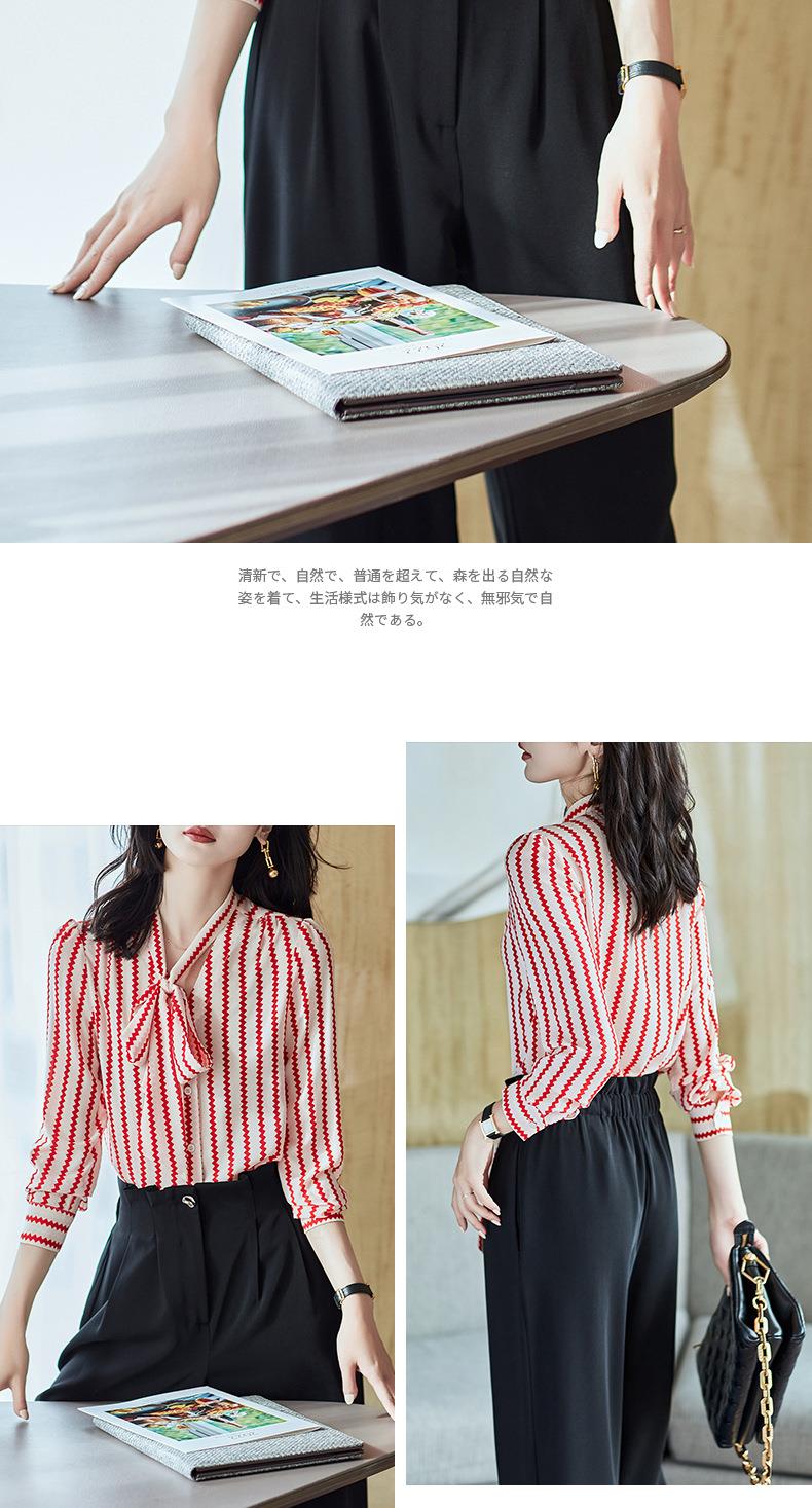 2023秋装新款衬衫女长袖宽松雪纺衫条纹女士衬衣A2755