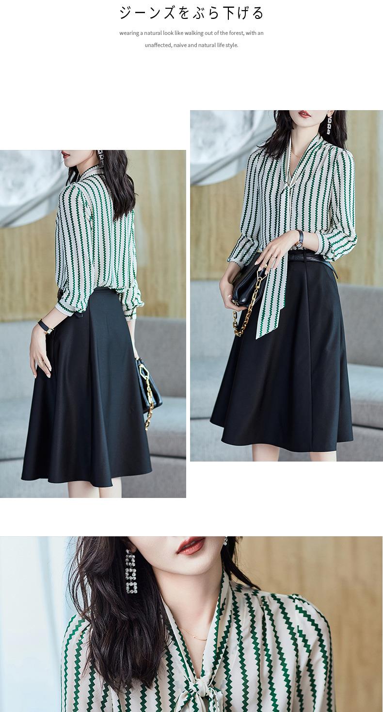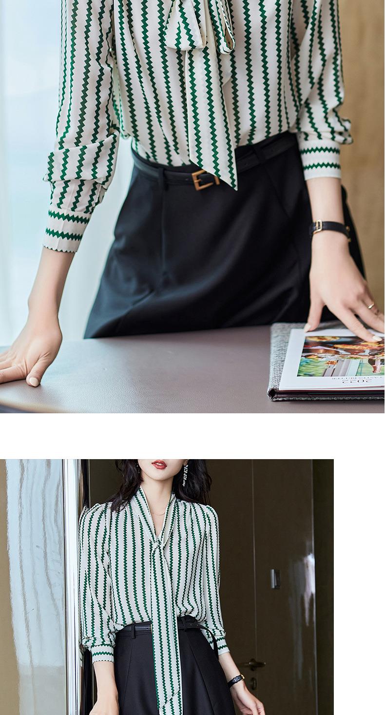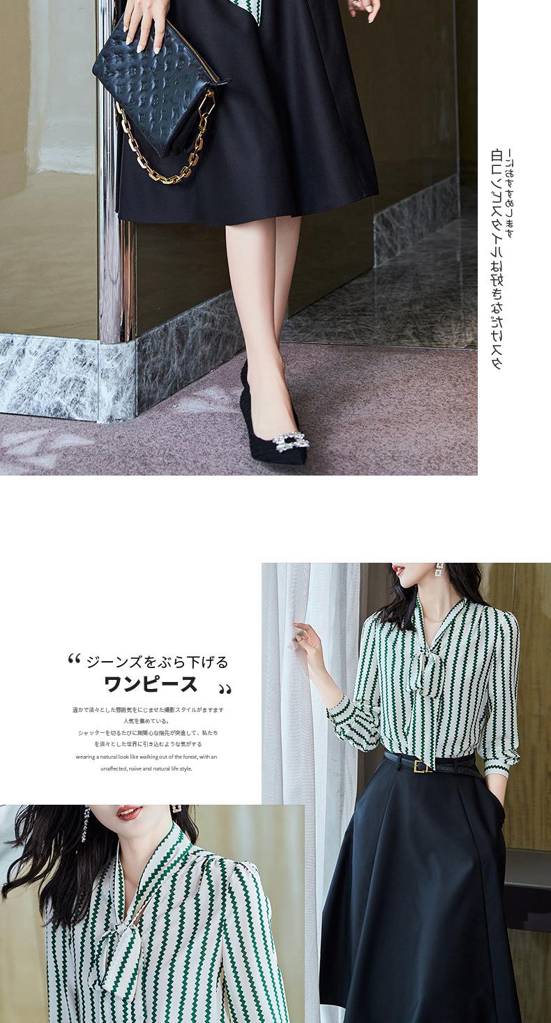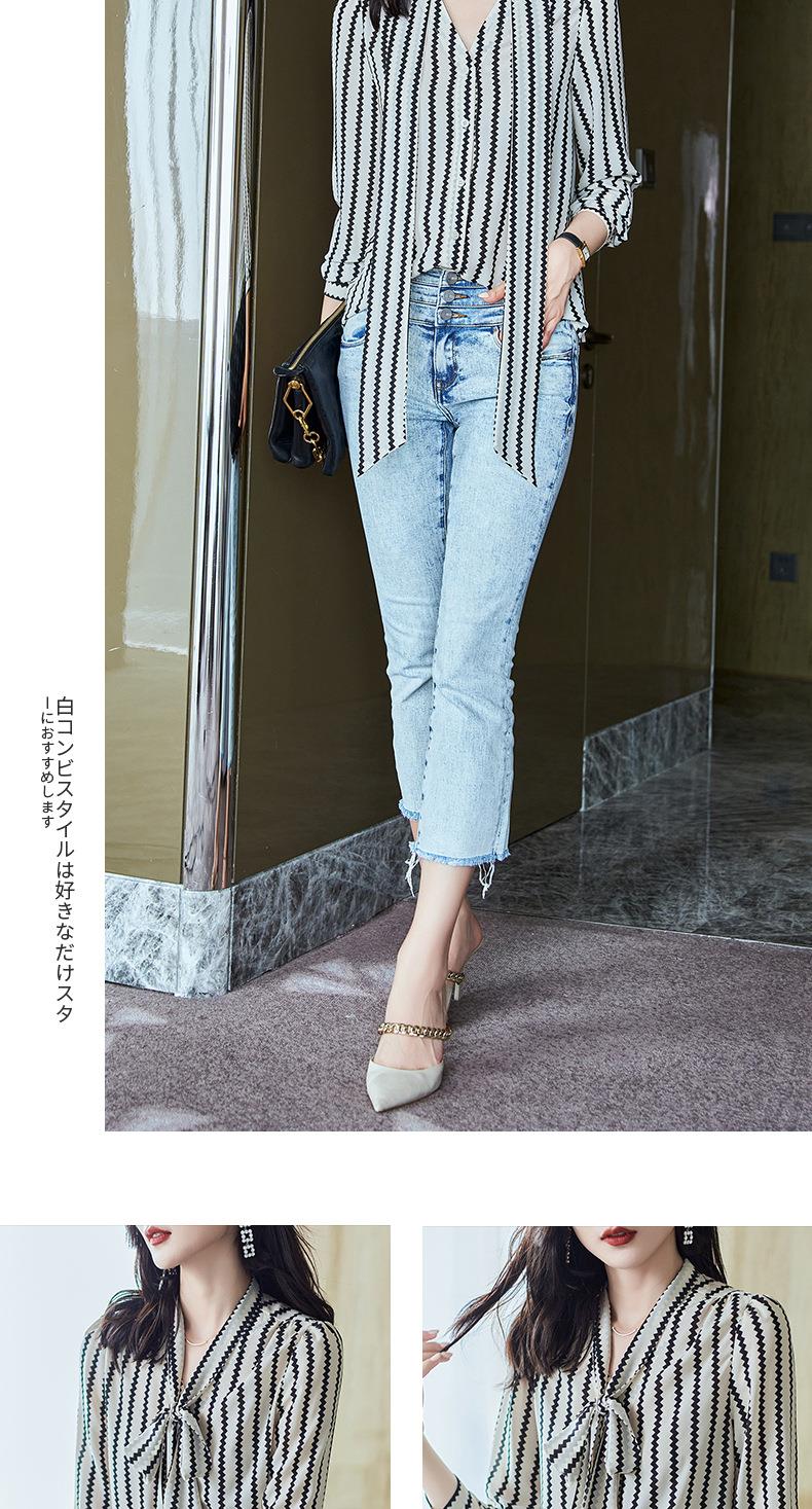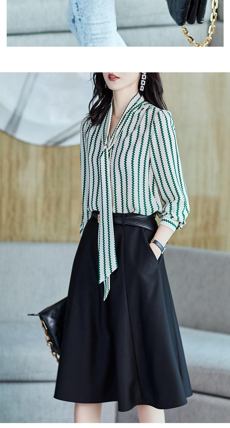 2023秋装新款衬衫女长袖宽松雪纺衫条纹女士衬衣A2755