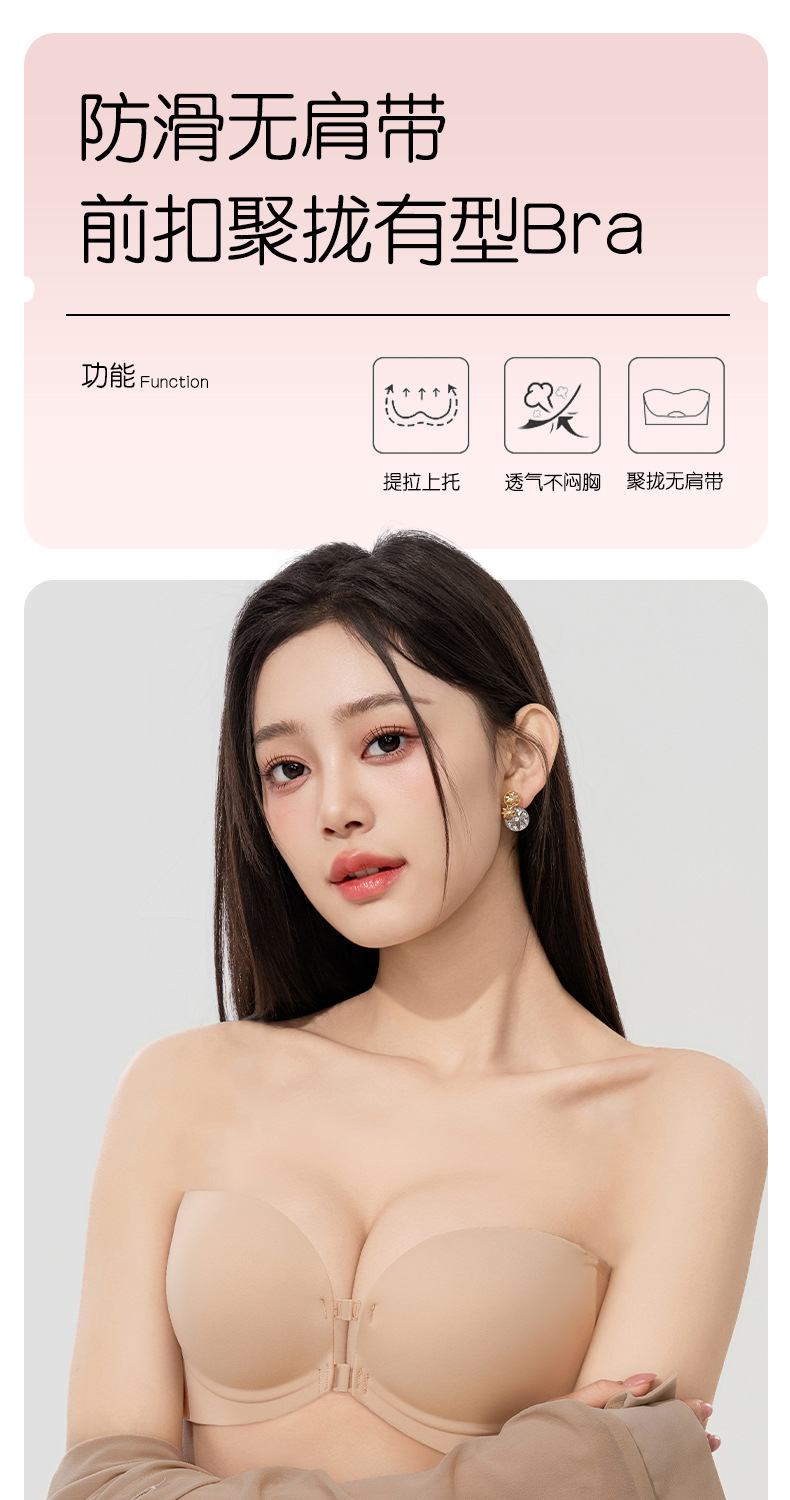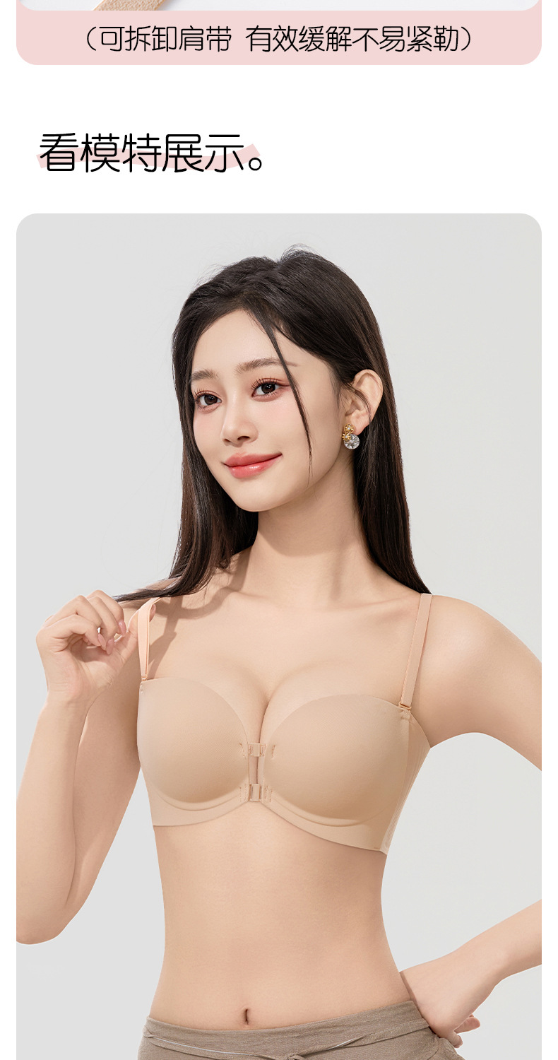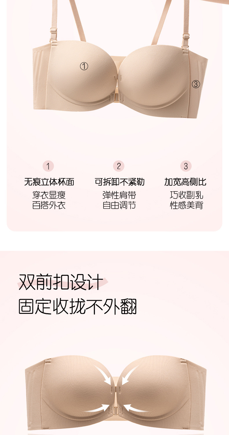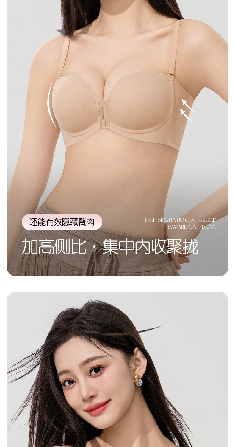 【聚拢有型!调整胸型】美背前扣可拆卸无肩带内衣女夏薄款防滑聚拢小胸显大无痕隐形文胸。xa