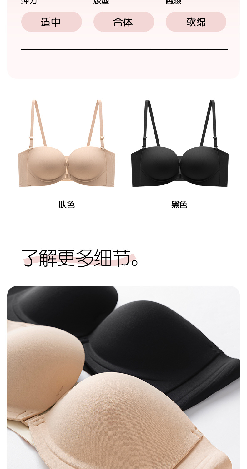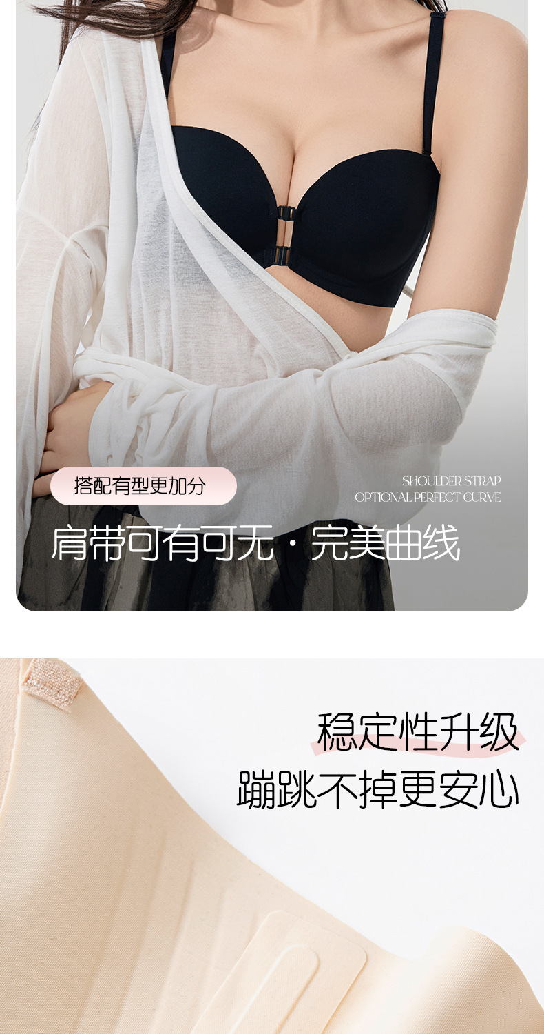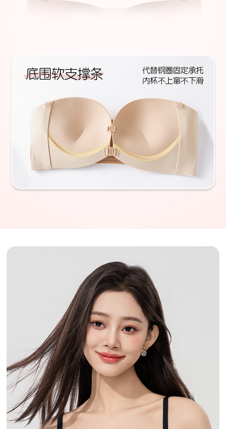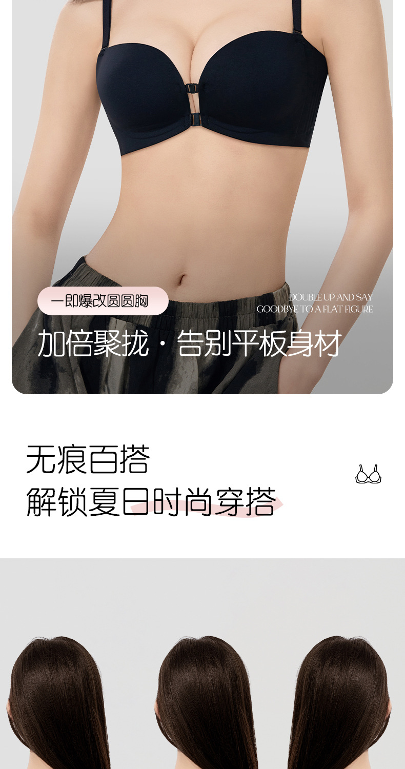 【聚拢有型!调整胸型】美背前扣可拆卸无肩带内衣女夏薄款防滑聚拢小胸显大无痕隐形文胸。xa