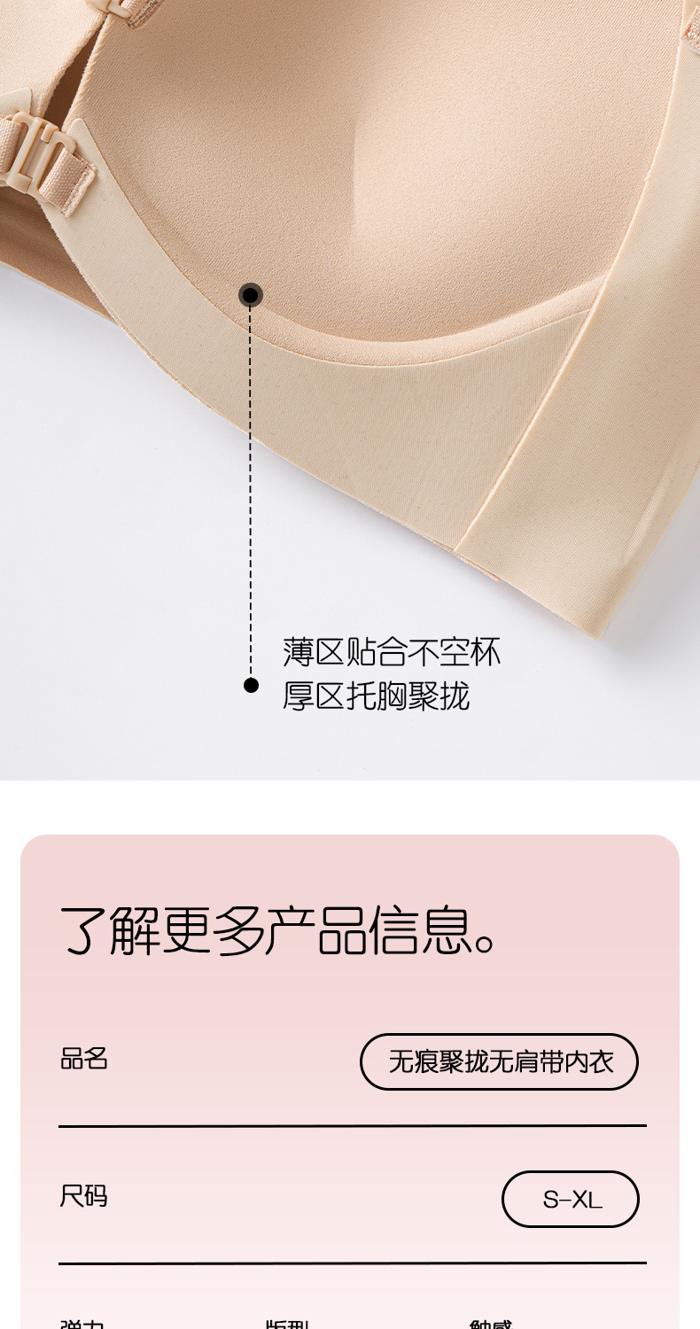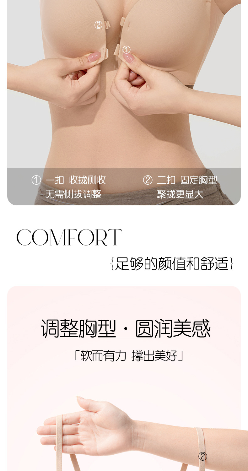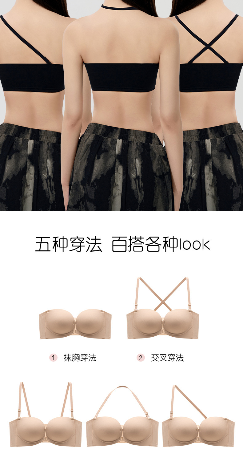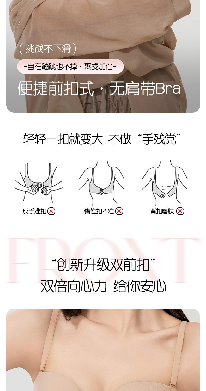 【聚拢有型!调整胸型】美背前扣可拆卸无肩带内衣女夏薄款防滑聚拢小胸显大无痕隐形文胸。xa