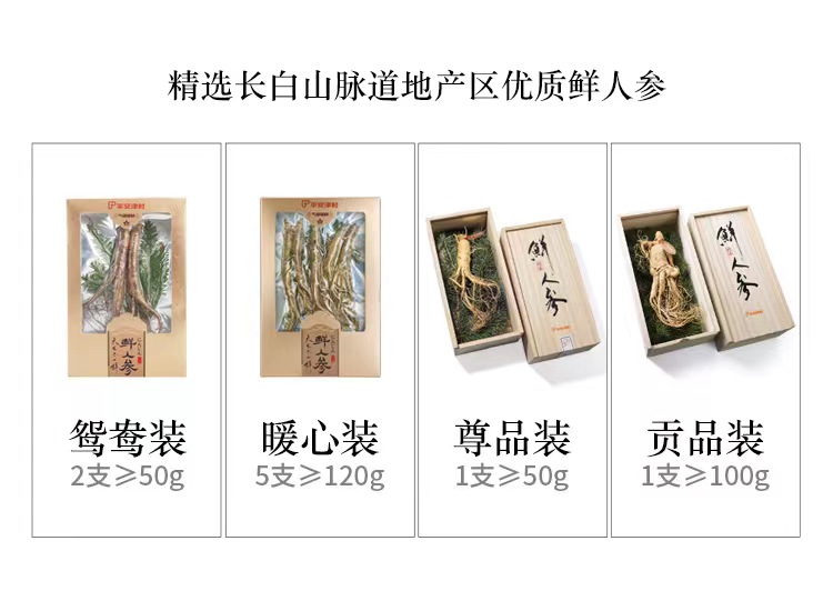 沈爷的宝贝 平安津村 尊品装鲜人参50g/盒 贡品装 鲜人参100g/盒 包邮 商品图1