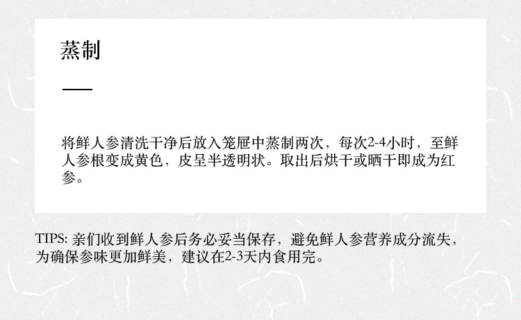 沈爷的宝贝 平安津村 尊品装鲜人参50g/盒 贡品装 鲜人参100g/盒 包邮 商品图4