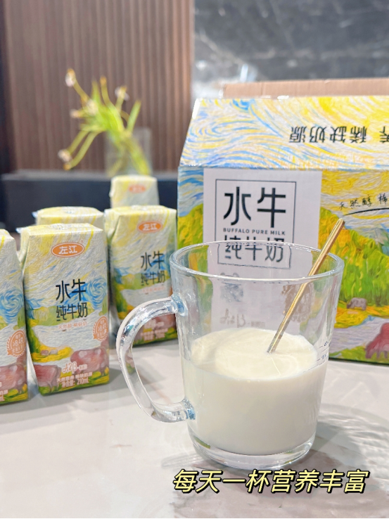 作为广西的特色摩拉水牛奶,它口感上跟普通牛奶差别很大。 水牛们吃的食材都是新鲜的甘蔗叶、菠萝~🍍让水牛拥有天然糖分,奶质优良、第一口下去你就会沉醉其中。 无论是甜度,还是浓度都甩普通牛奶好几个档位。 入口顺滑香醇,没有加糖却带着天然鲜甜,让人回味无穷。