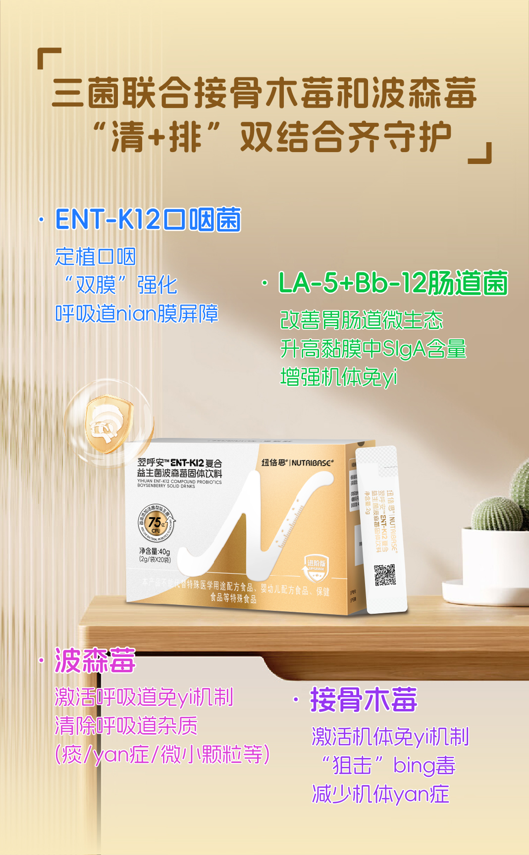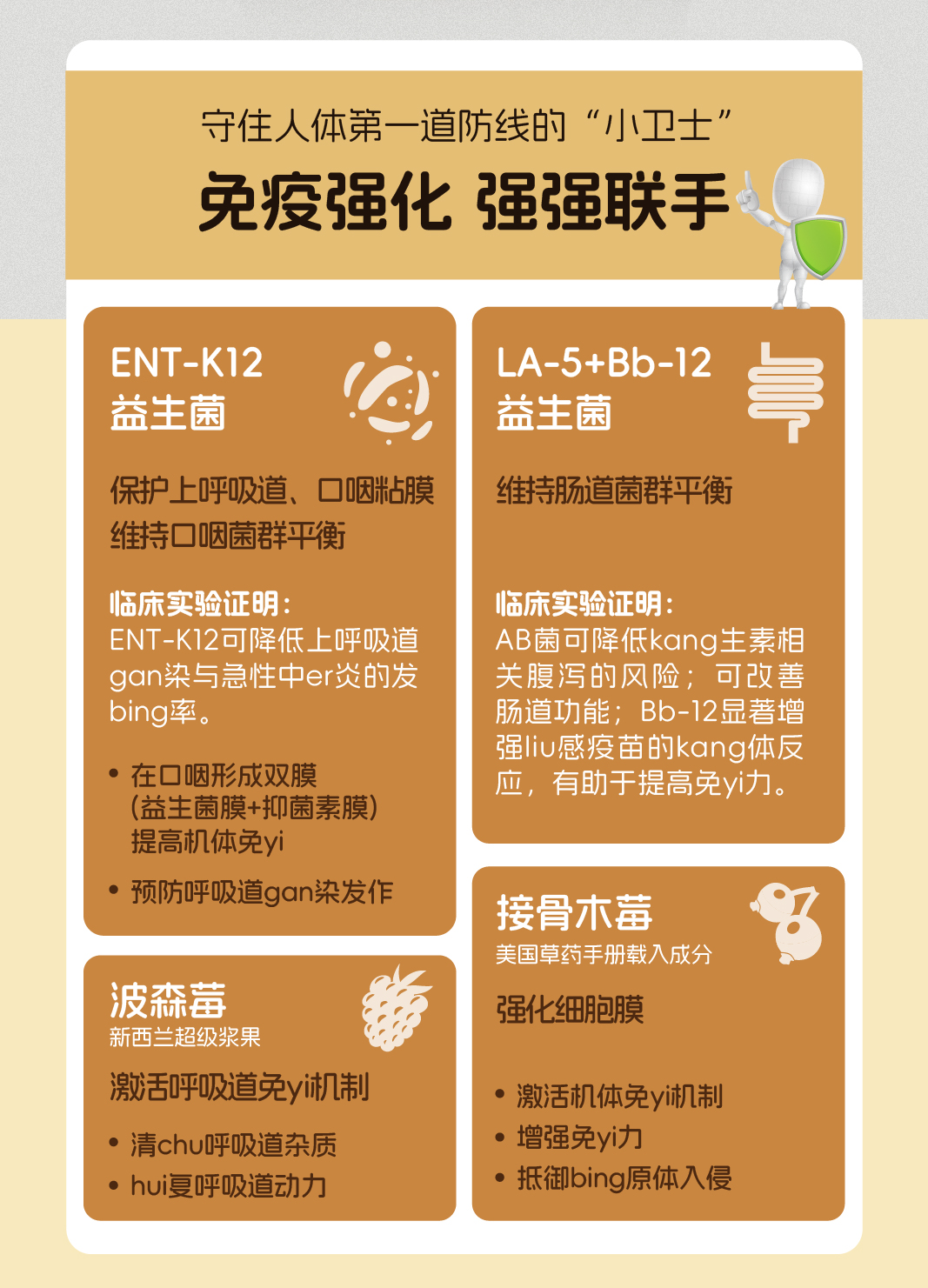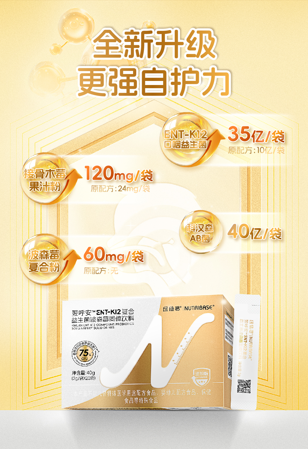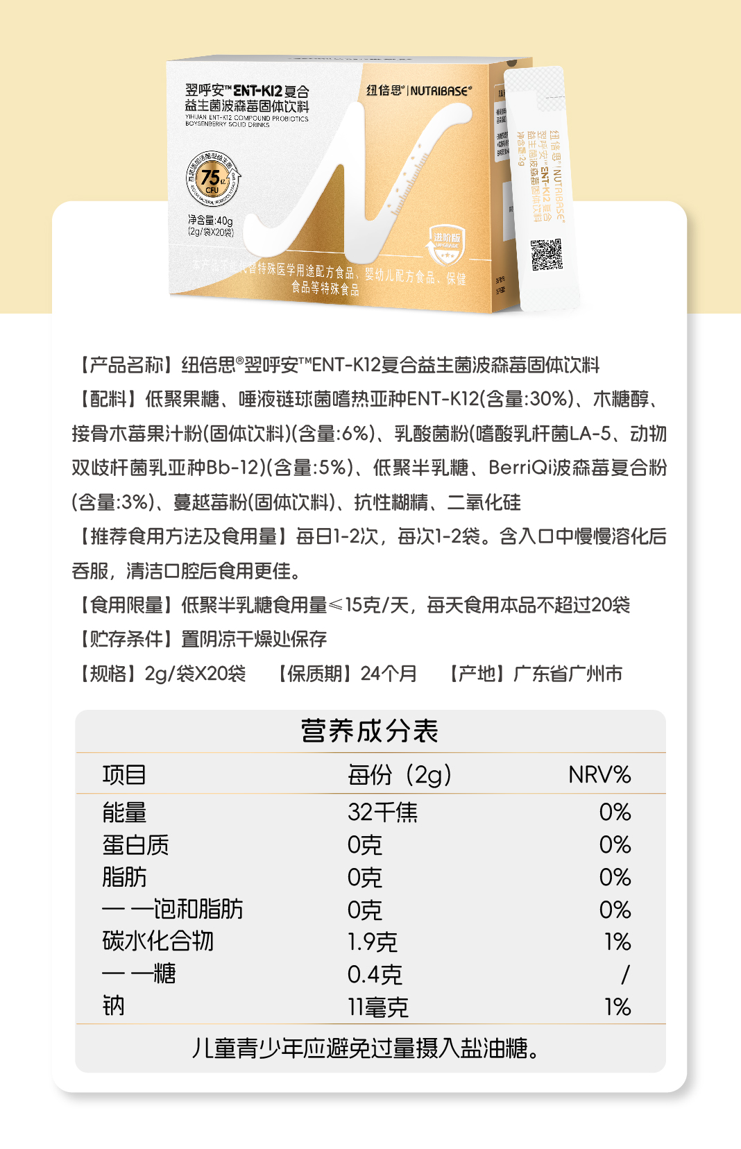 ² 【纽倍思粉剂耳鼻喉K12益生菌】每袋含ENT-K12益生菌35亿+科汉森AB菌40亿+约7680mg新鲜接骨木莓+60mg波森莓粉 2g*20条/盒 HM02-CRMM-NBS