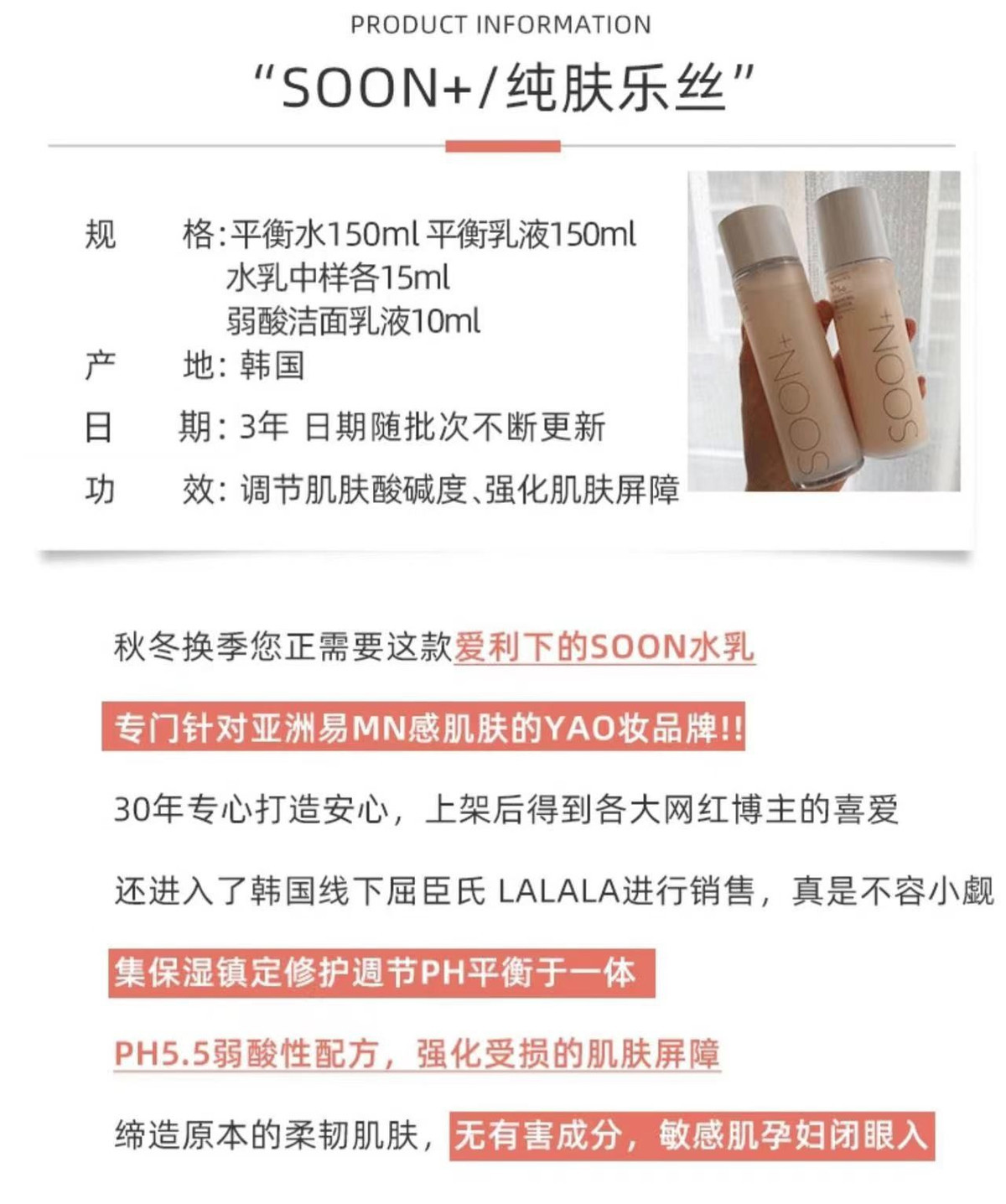 【爆款超低价预售 急单慎拍】韩国爱茉莉SOON纯肤乐丝弱酸平衡温和水乳洁面套装