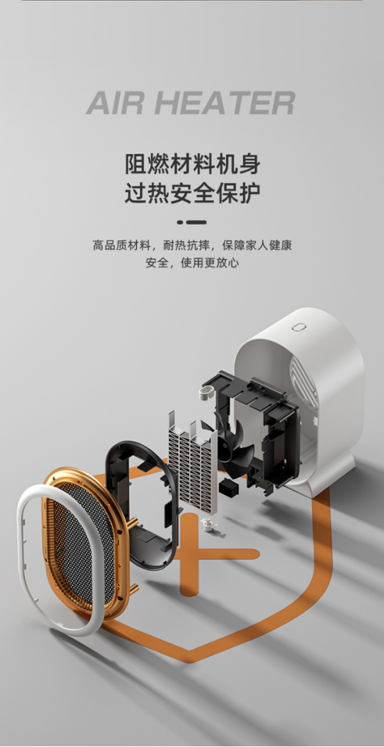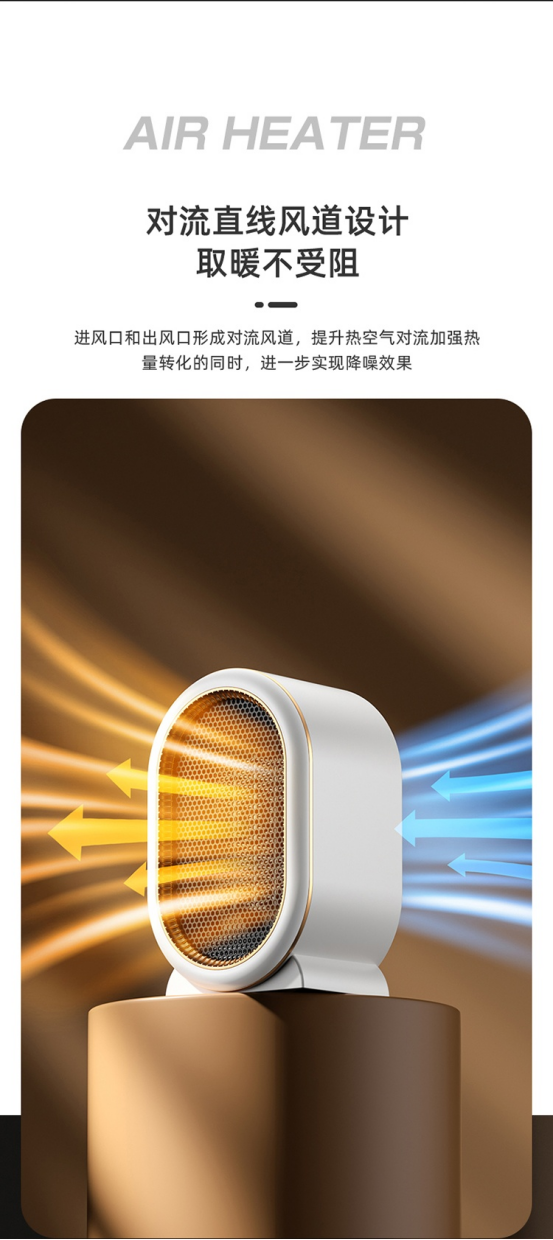 对流直线风道设计,取暖不受阻!! 进风口和出风口形成对流风道 提升热空气对流加强热量转化的同时 进一步实现降噪效果!