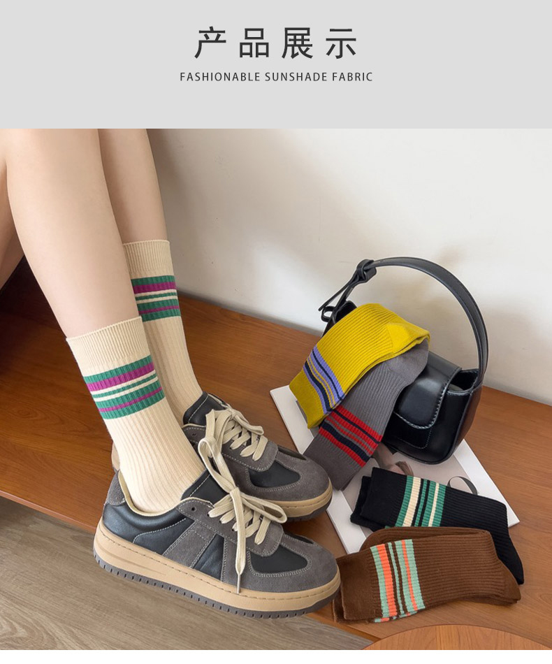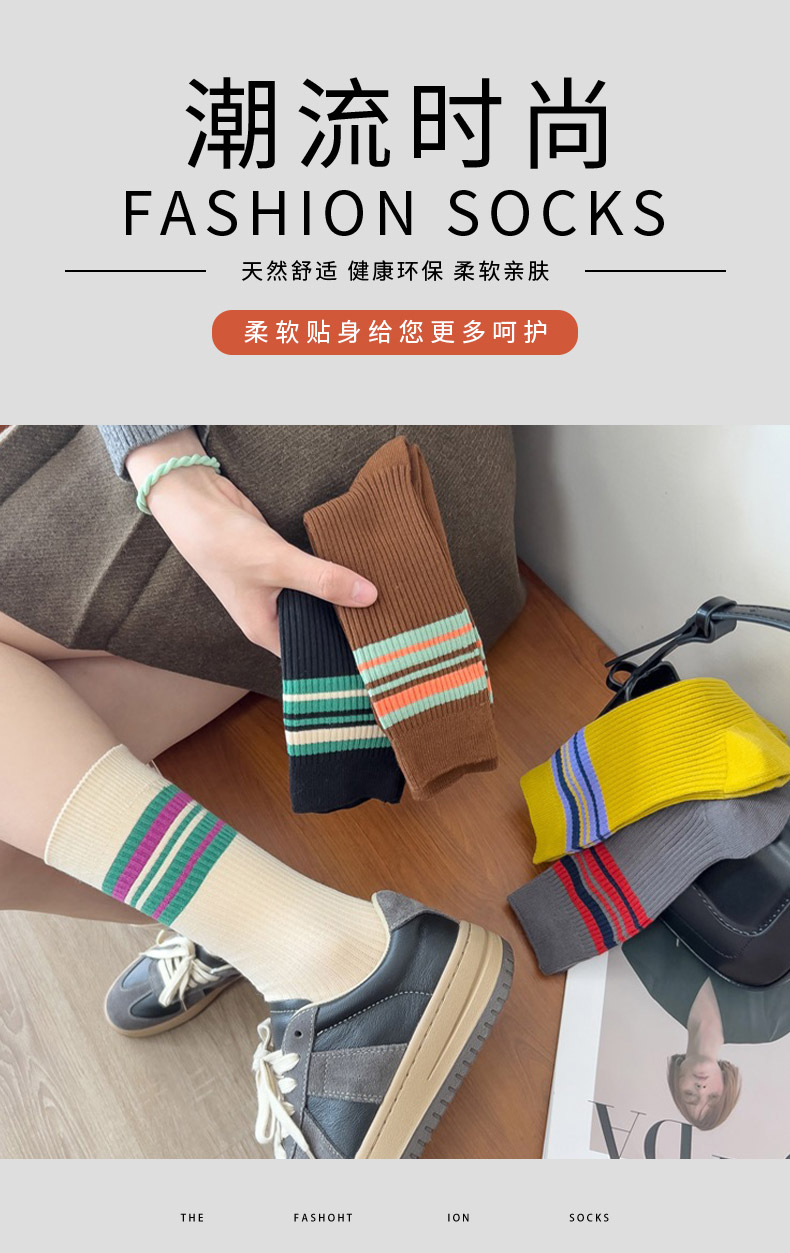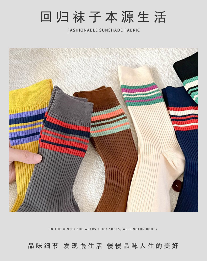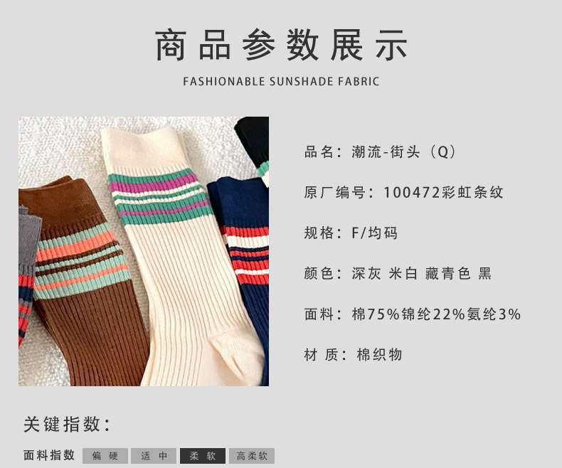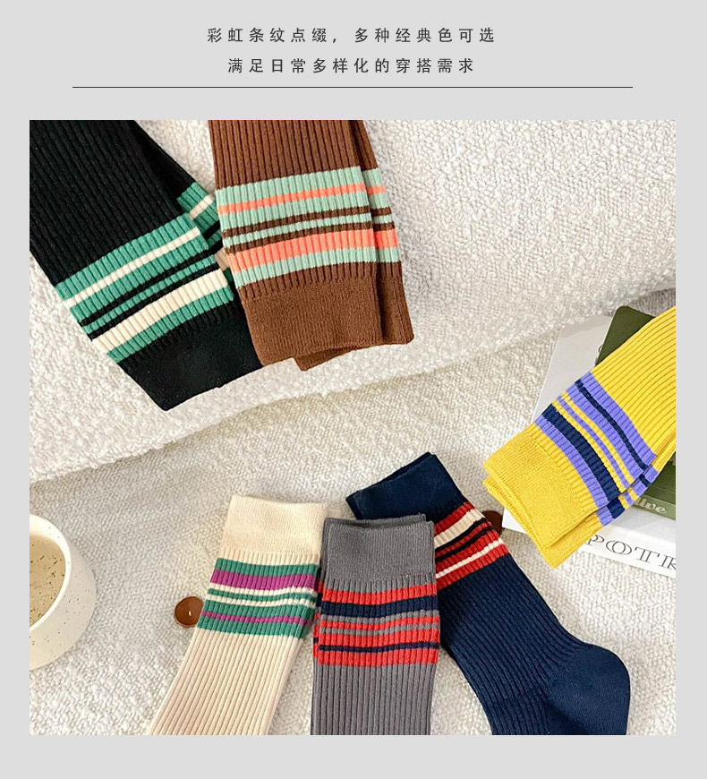 潮流街头风彩虹条纹女袜中筒袜纪念日百货门店同款165844383