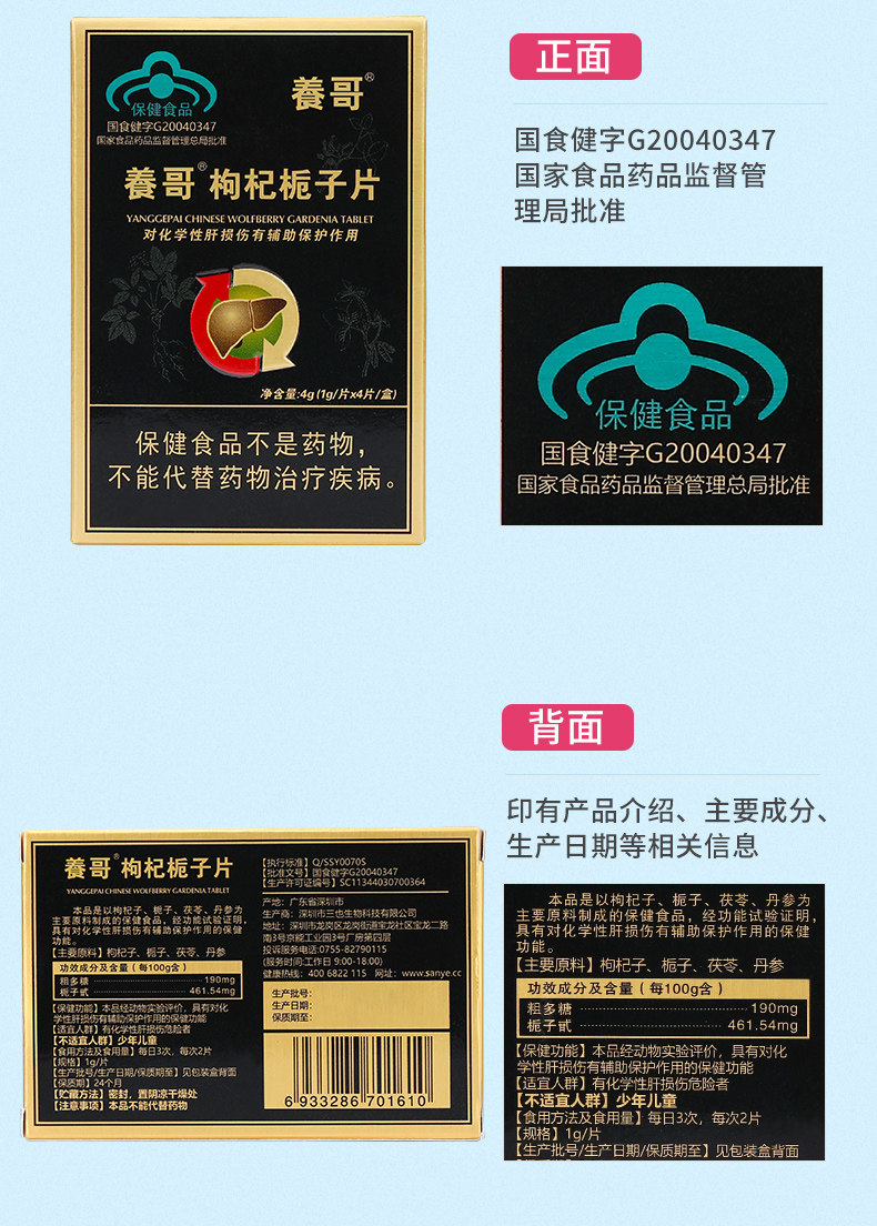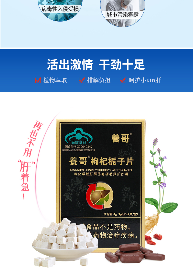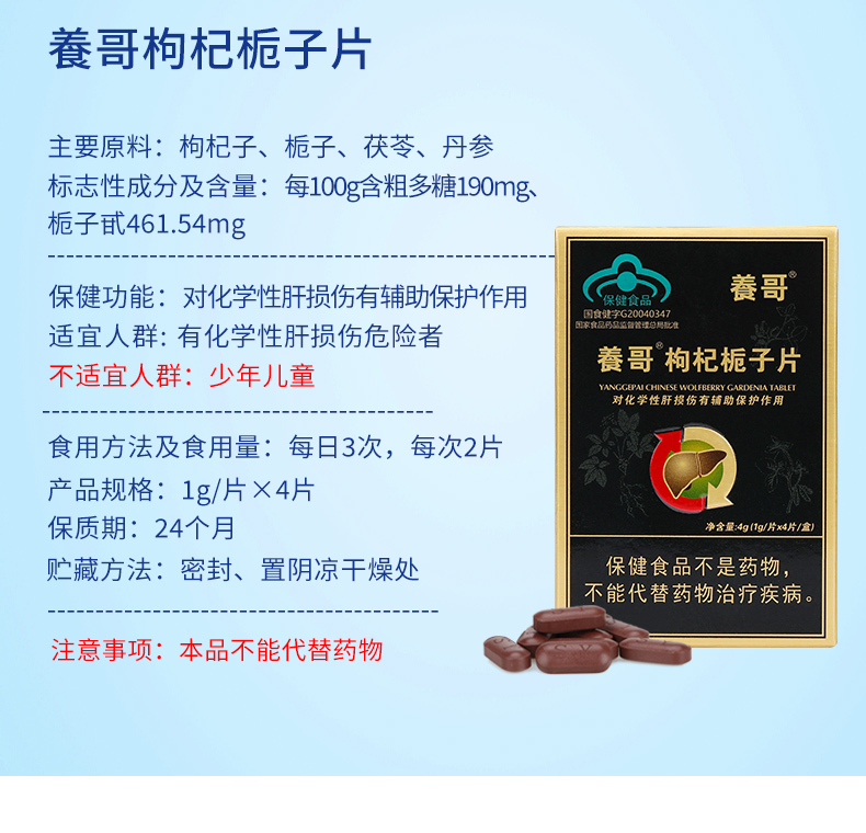 【2盒装共8片】养哥枸杞栀子片 解酒养护对化学性肝损伤有辅助保护作用 2盒共8片