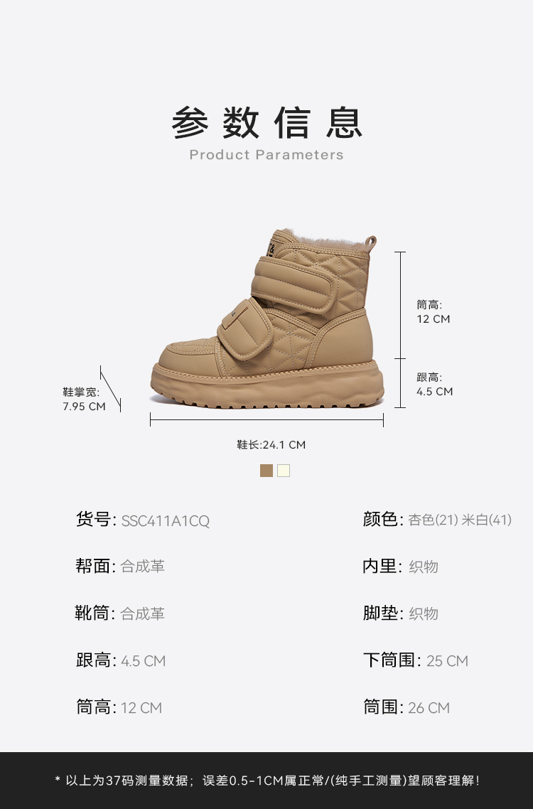 星期六时尚魔术贴保暖厚绒雪地靴SSC411A1CQ
