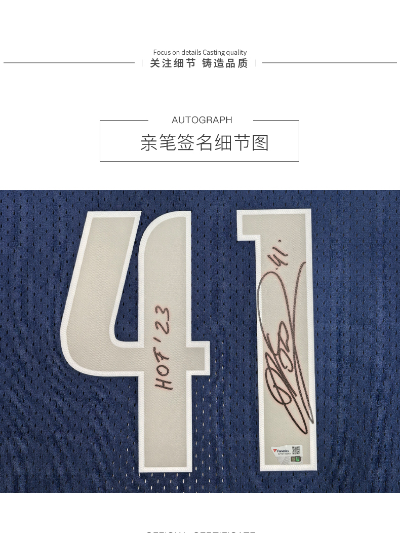 收藏系列 诺维斯基 41号蓝色加签版 亲笔签名球衣