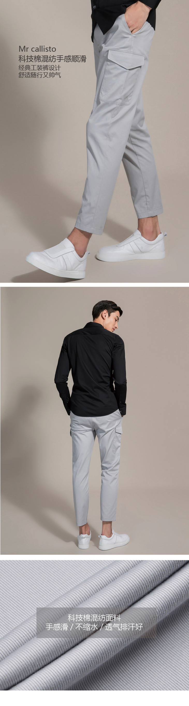 callisto浅灰色工装休闲裤 棉混纺 SOCPW048GY
