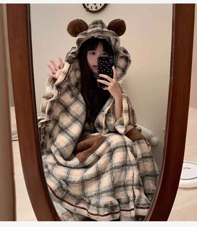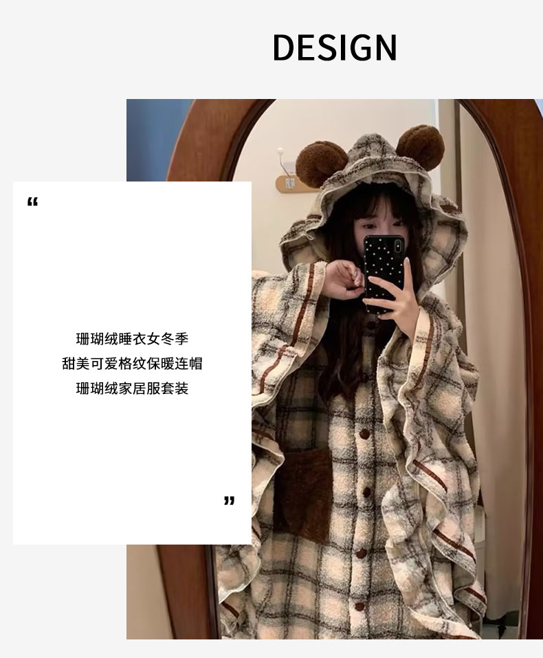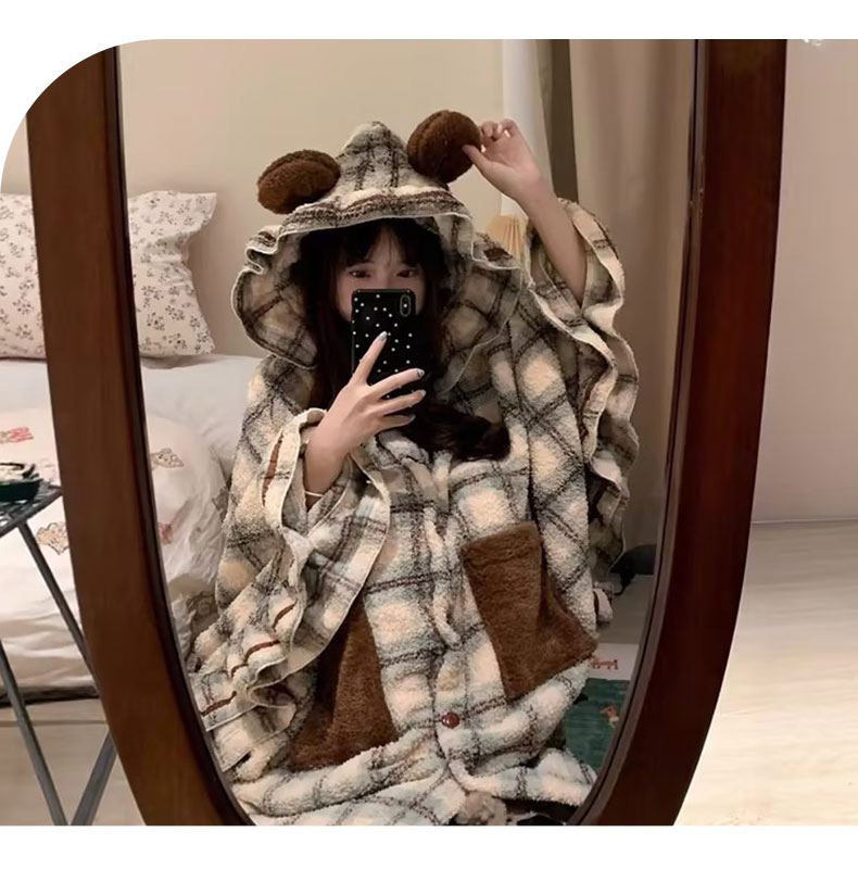 ins趣味系列连帽格子斗篷睡衣少女家居服-纪念日百货门店同款169696058