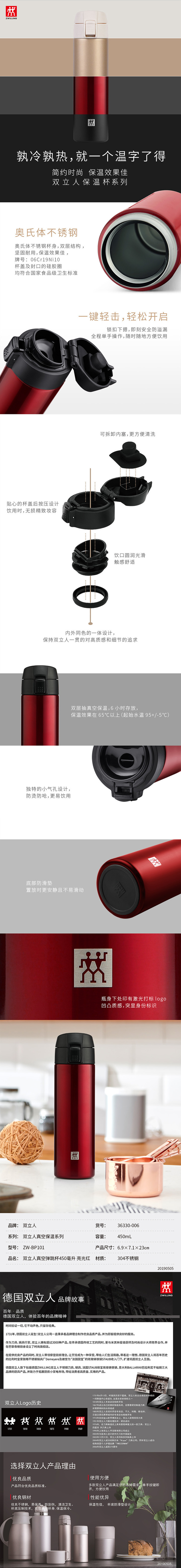 双立人 Zwilling 真空弹跳杯 金属红 450ml ZW-BP101