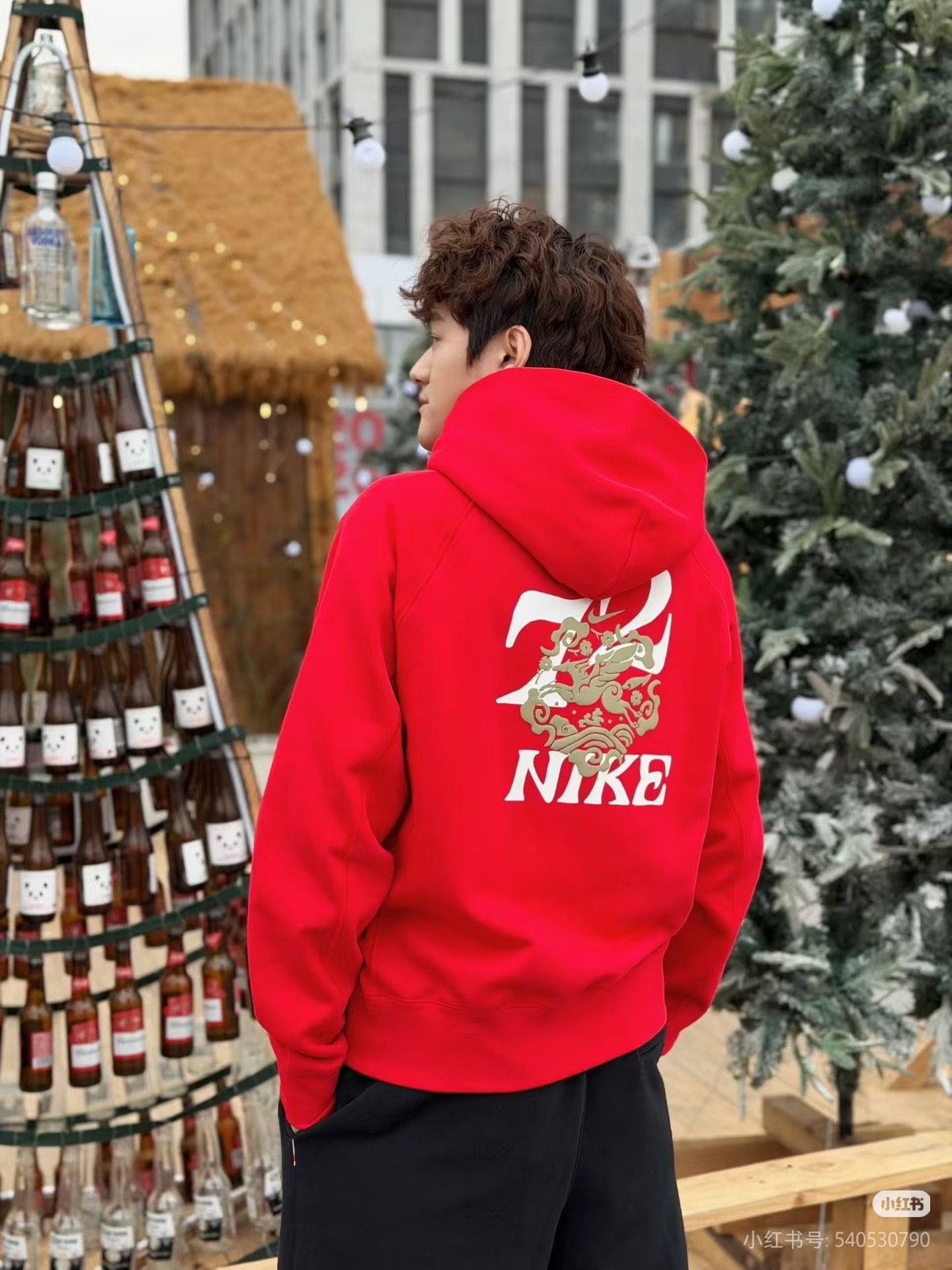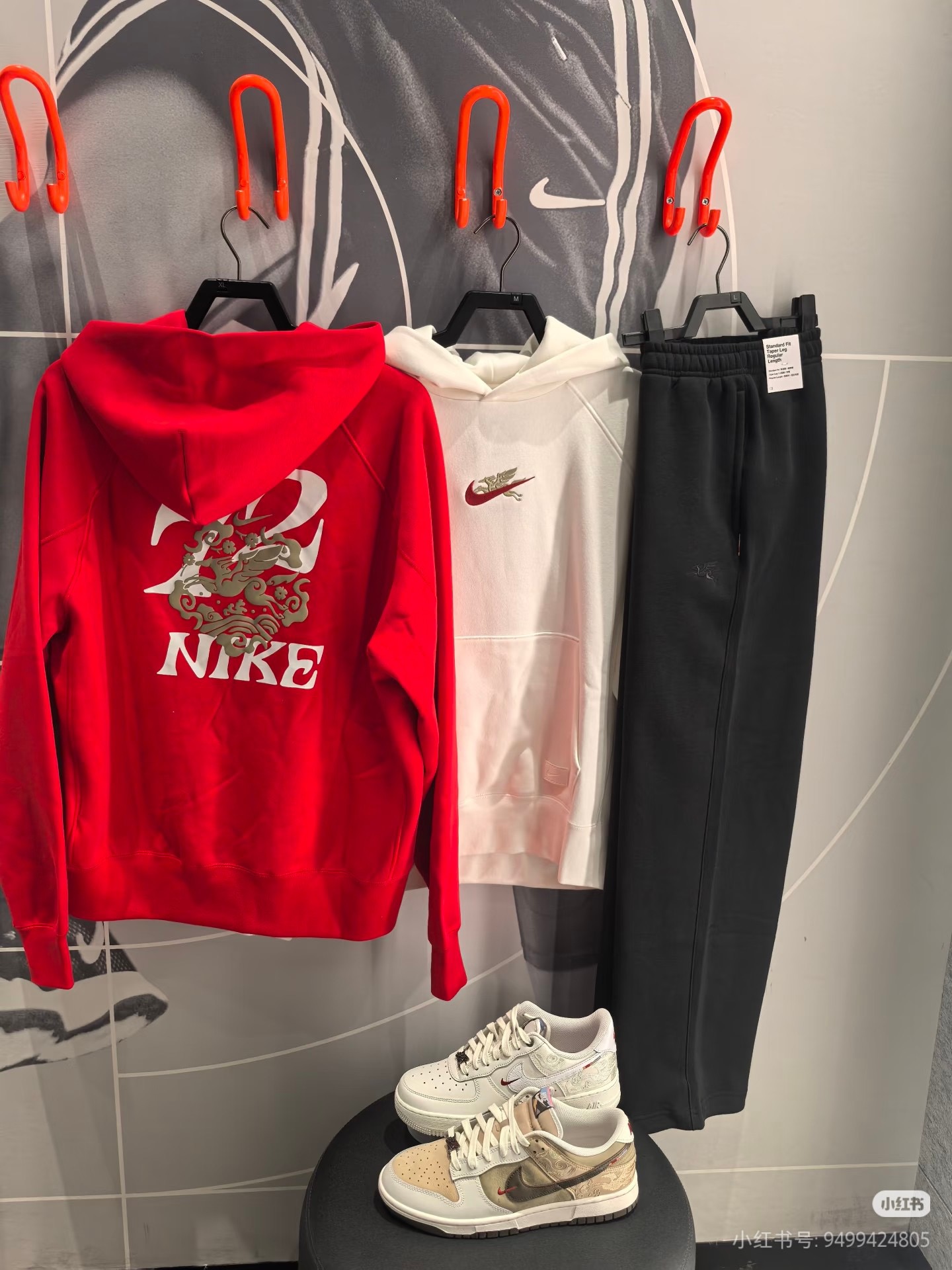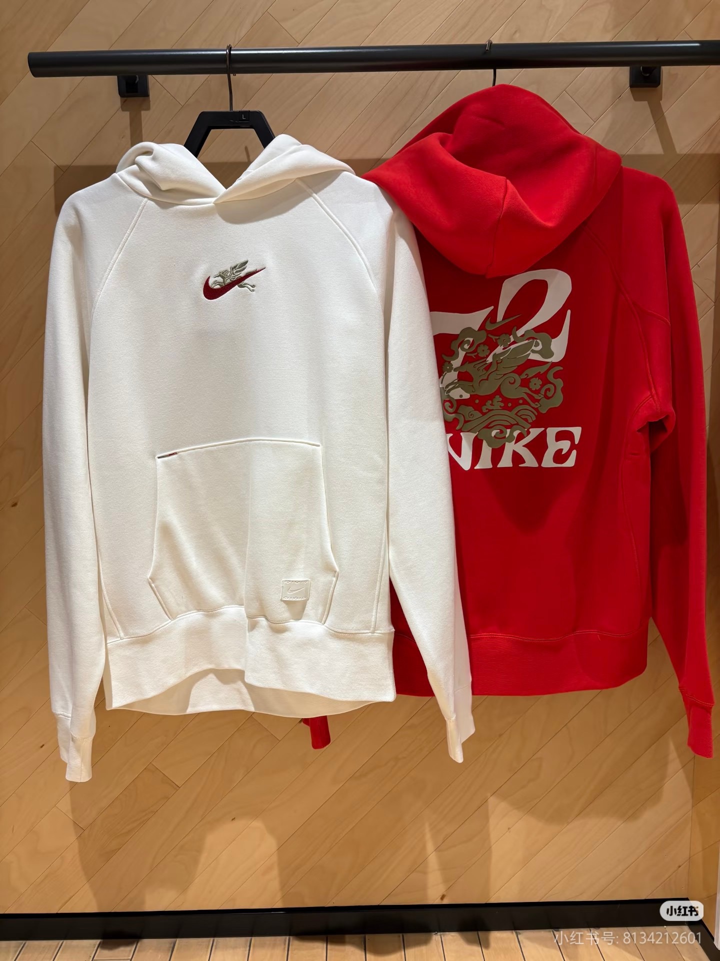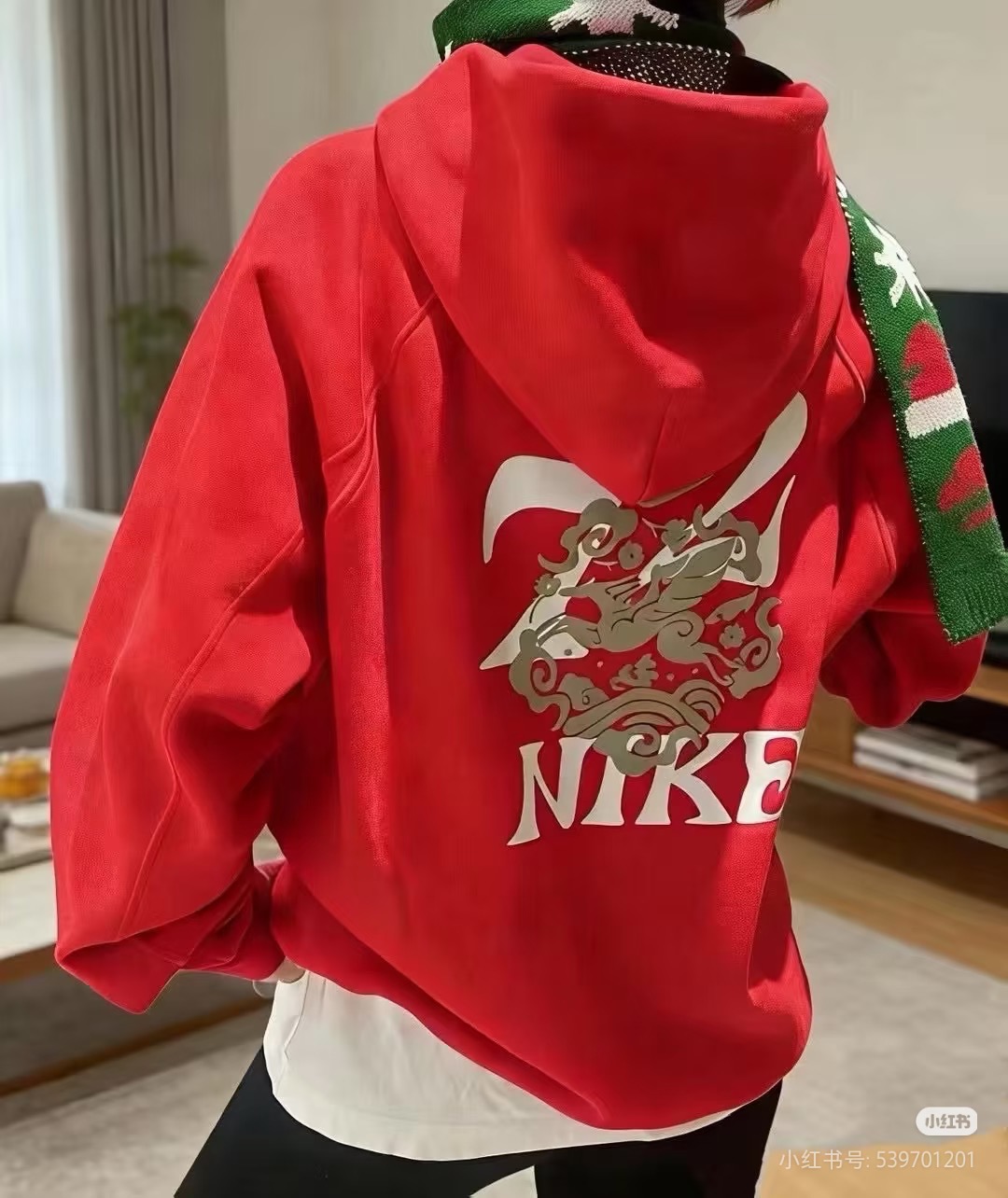 新年氛围感拉满,新年系列也太懂国人的审美了,限定款与生肖文化相结合,以“马到成功,一马平川”为核心寓意,提取骏马祥云等会国风元素,帽衫深队红➕米白两个配色都超有年味,红色是浓郁的新年红!