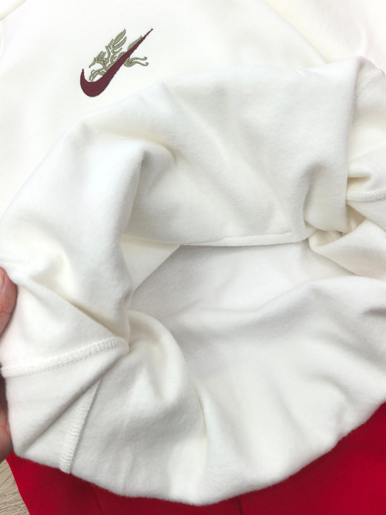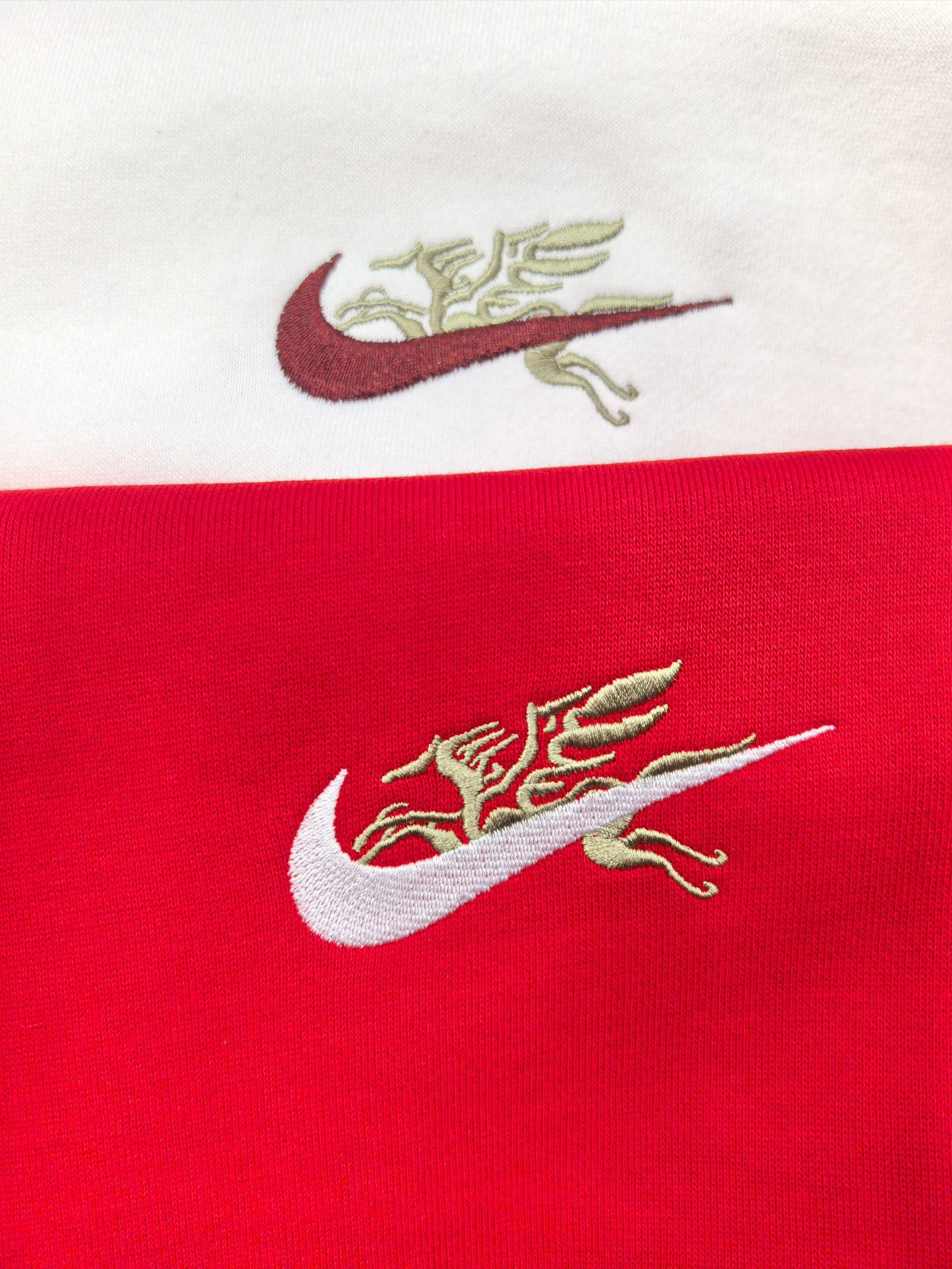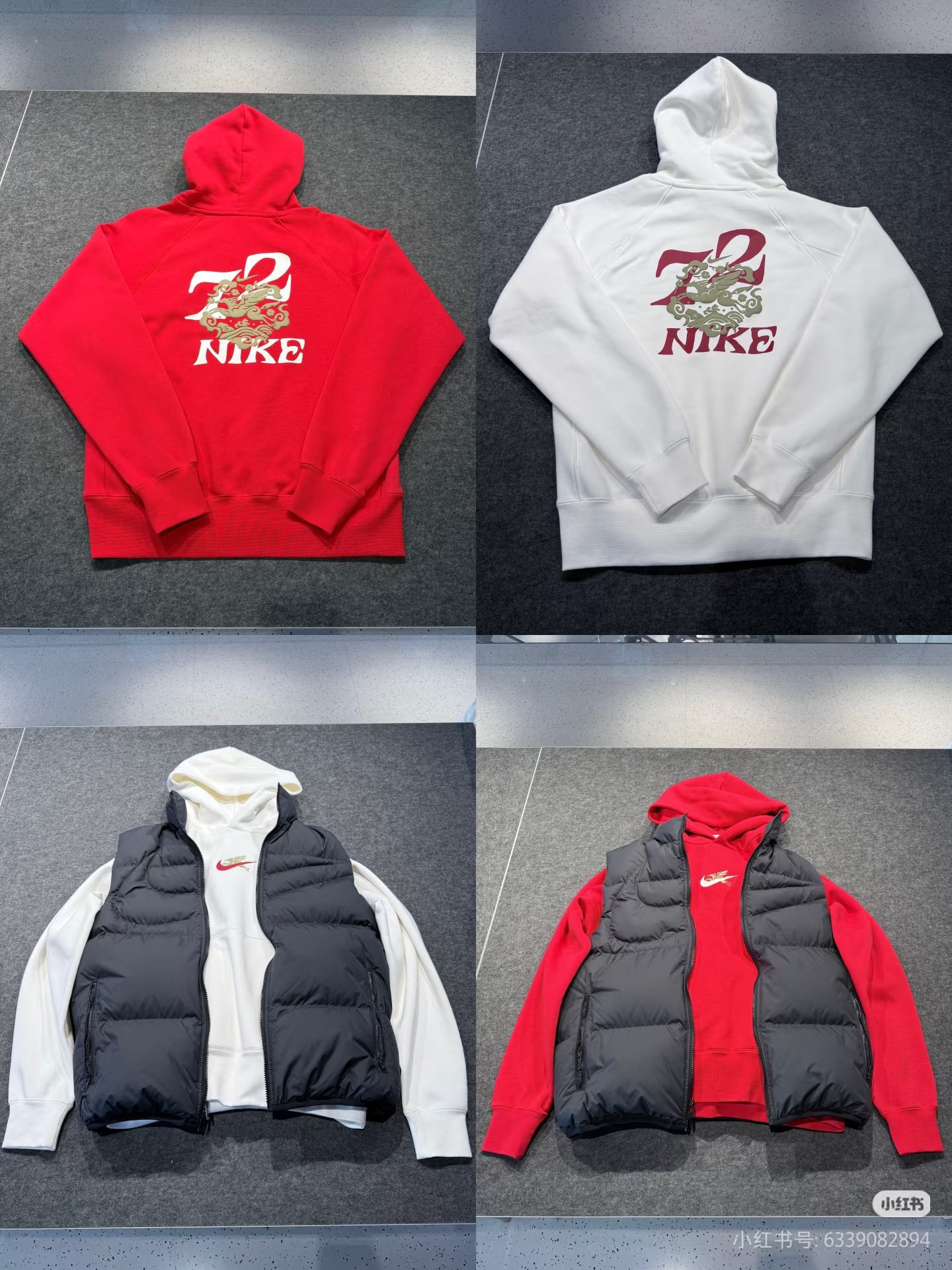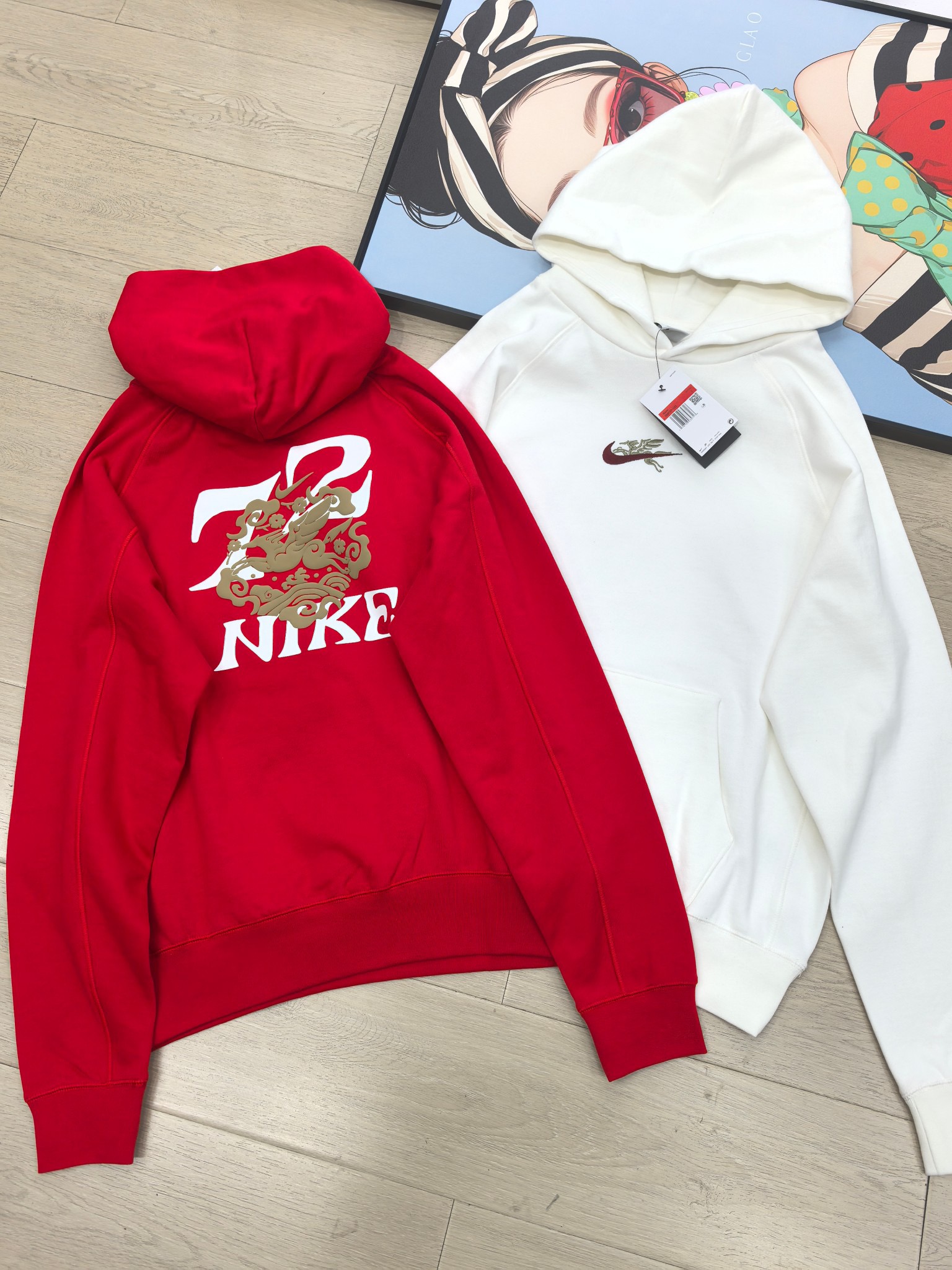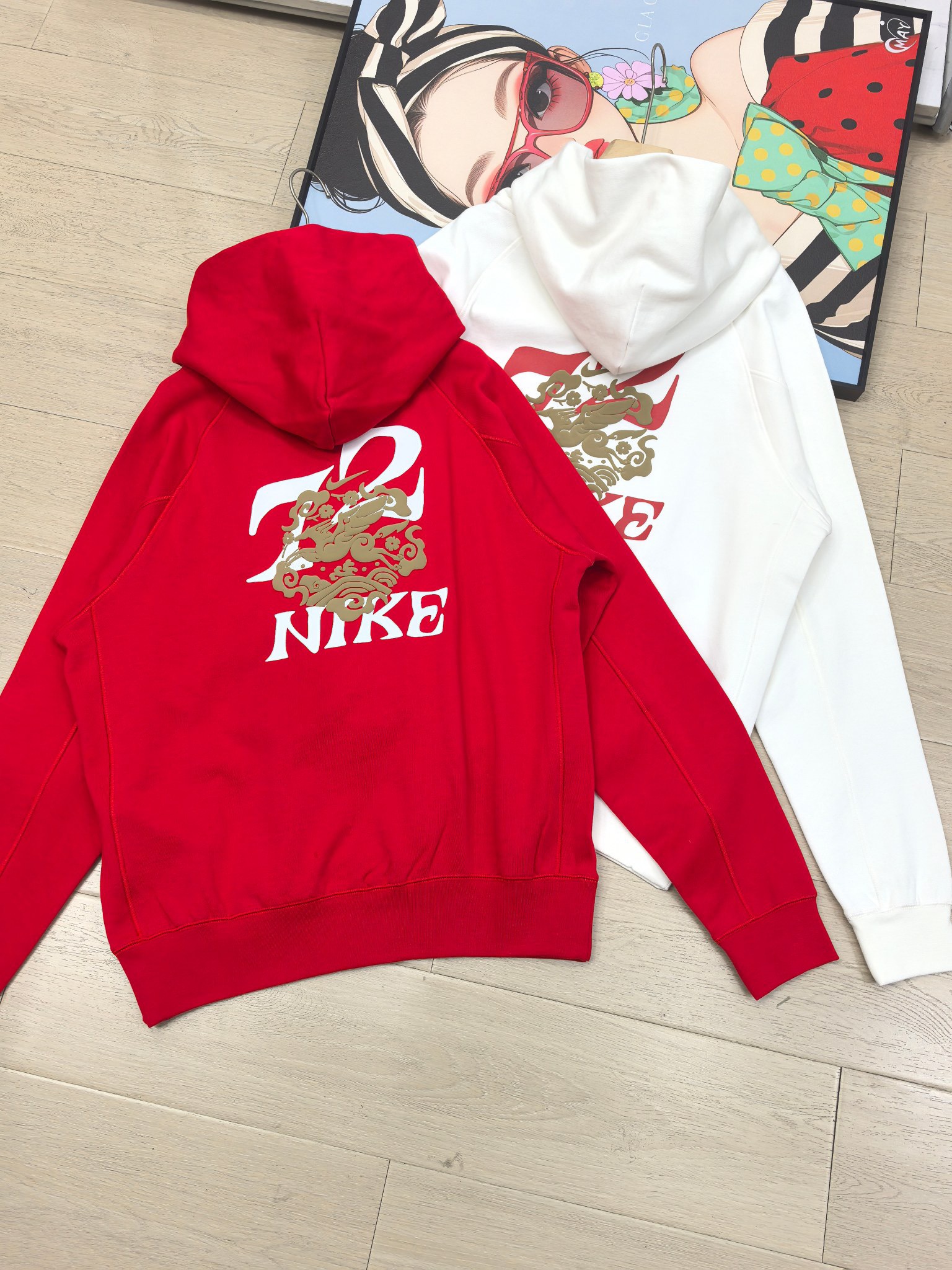 新年氛围感拉满,新年系列也太懂国人的审美了,限定款与生肖文化相结合,以“马到成功,一马平川”为核心寓意,提取骏马祥云等会国风元素,帽衫深队红➕米白两个配色都超有年味,红色是浓郁的新年红!