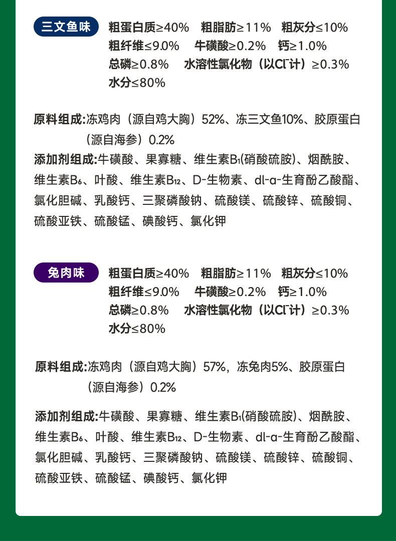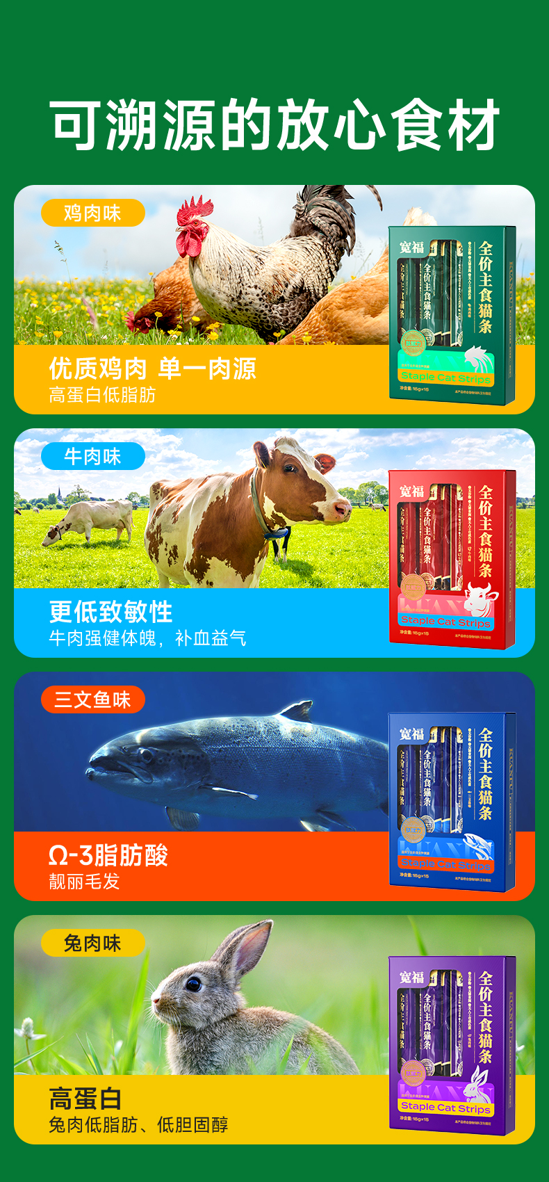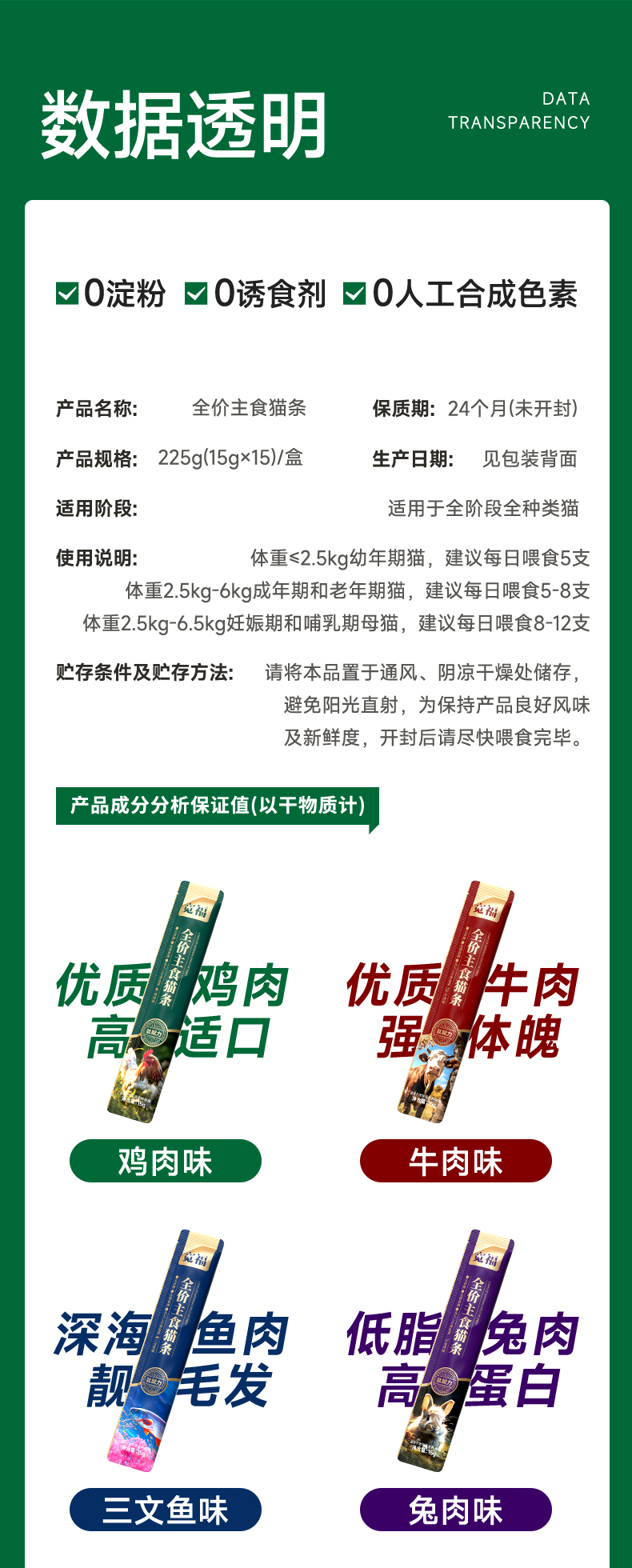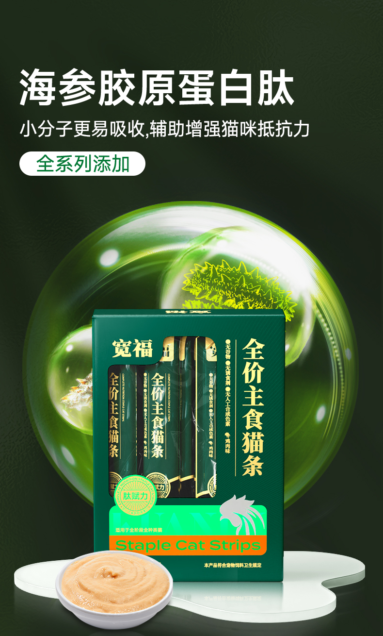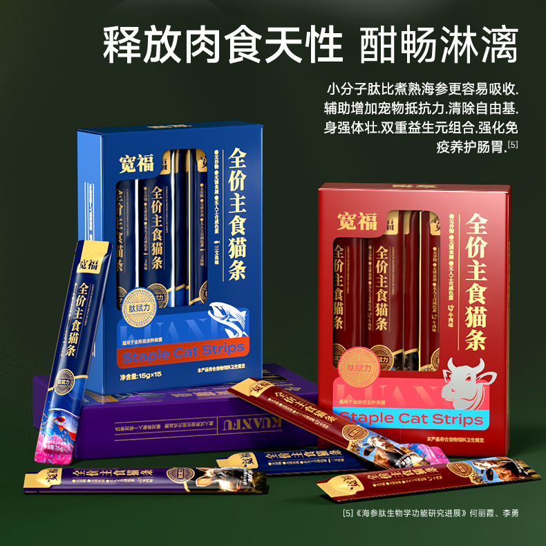 【海参主食猫条】宽福 动物性原料62% 四种配方+海参胶原蛋白 8种维生素8种矿物质 无色素无诱食剂呵护猫咪肠胃