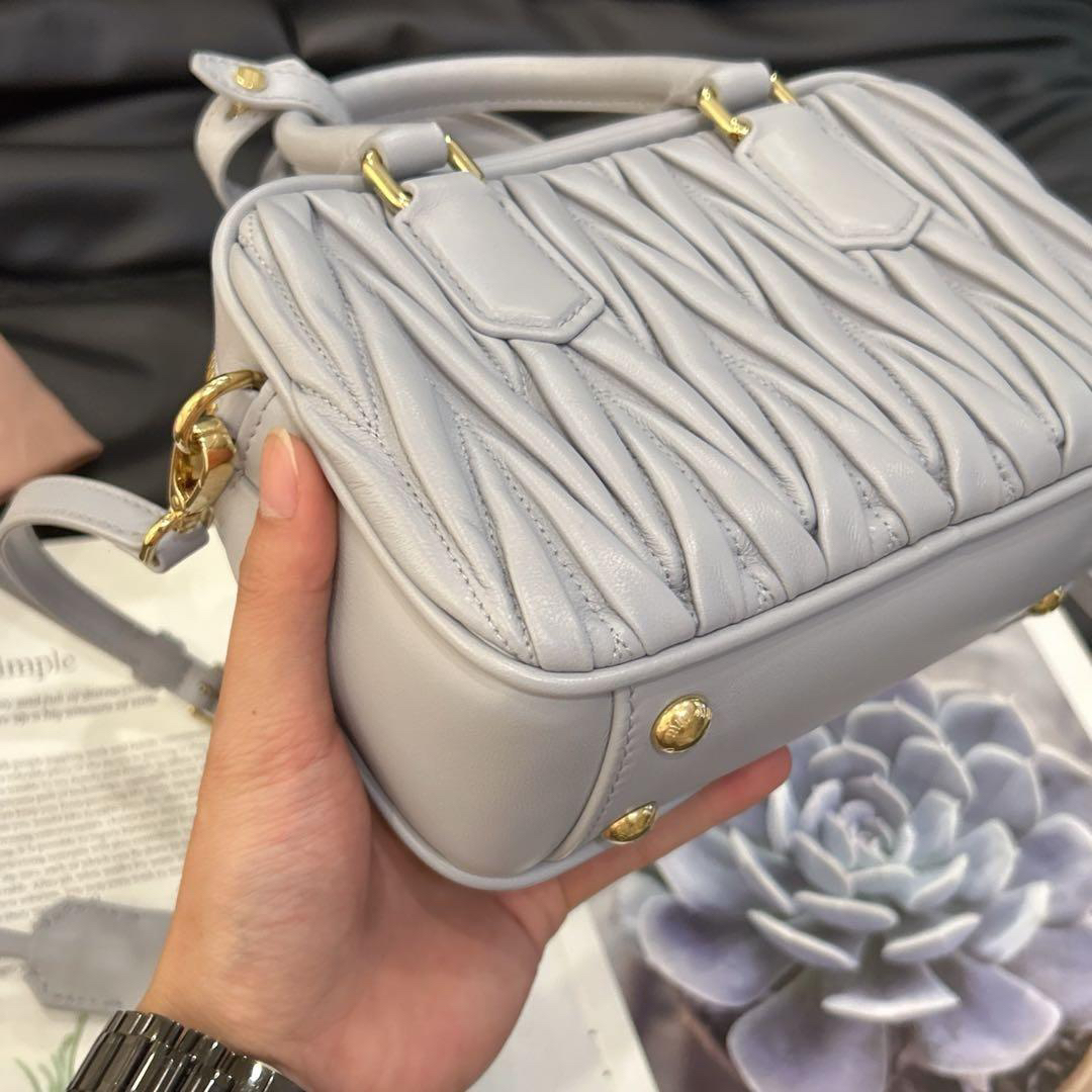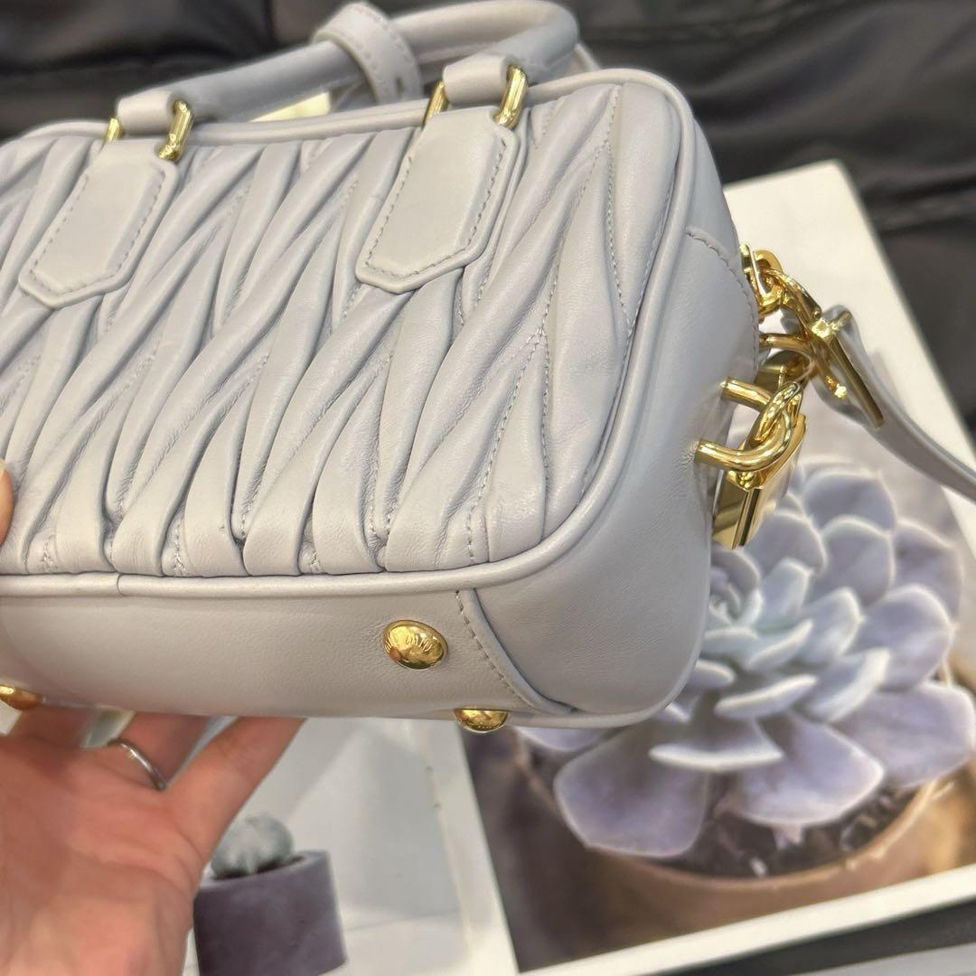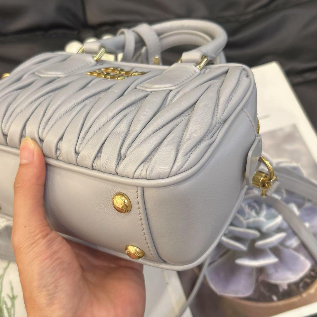【商品詳情】正品二手 miumiu 保龄球 mini 矢车菊蓝 褶皱 羊皮 斜挎包 🎳 98新 20x14 配件:肩带 钥匙锁 挂件 防尘袋 。名媛千金闭眼入