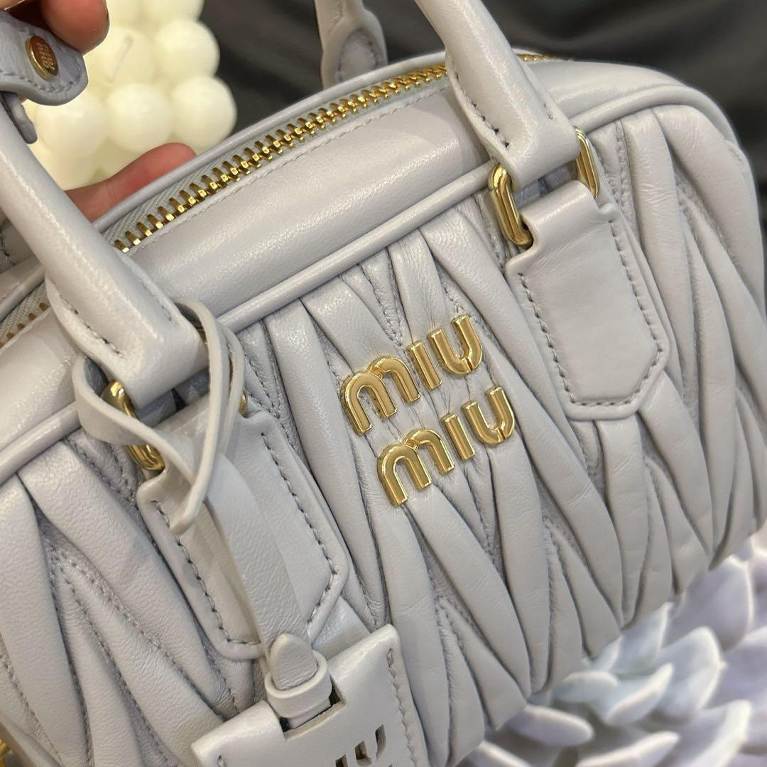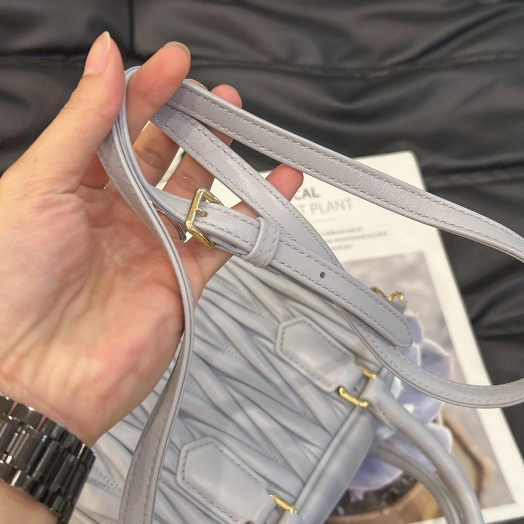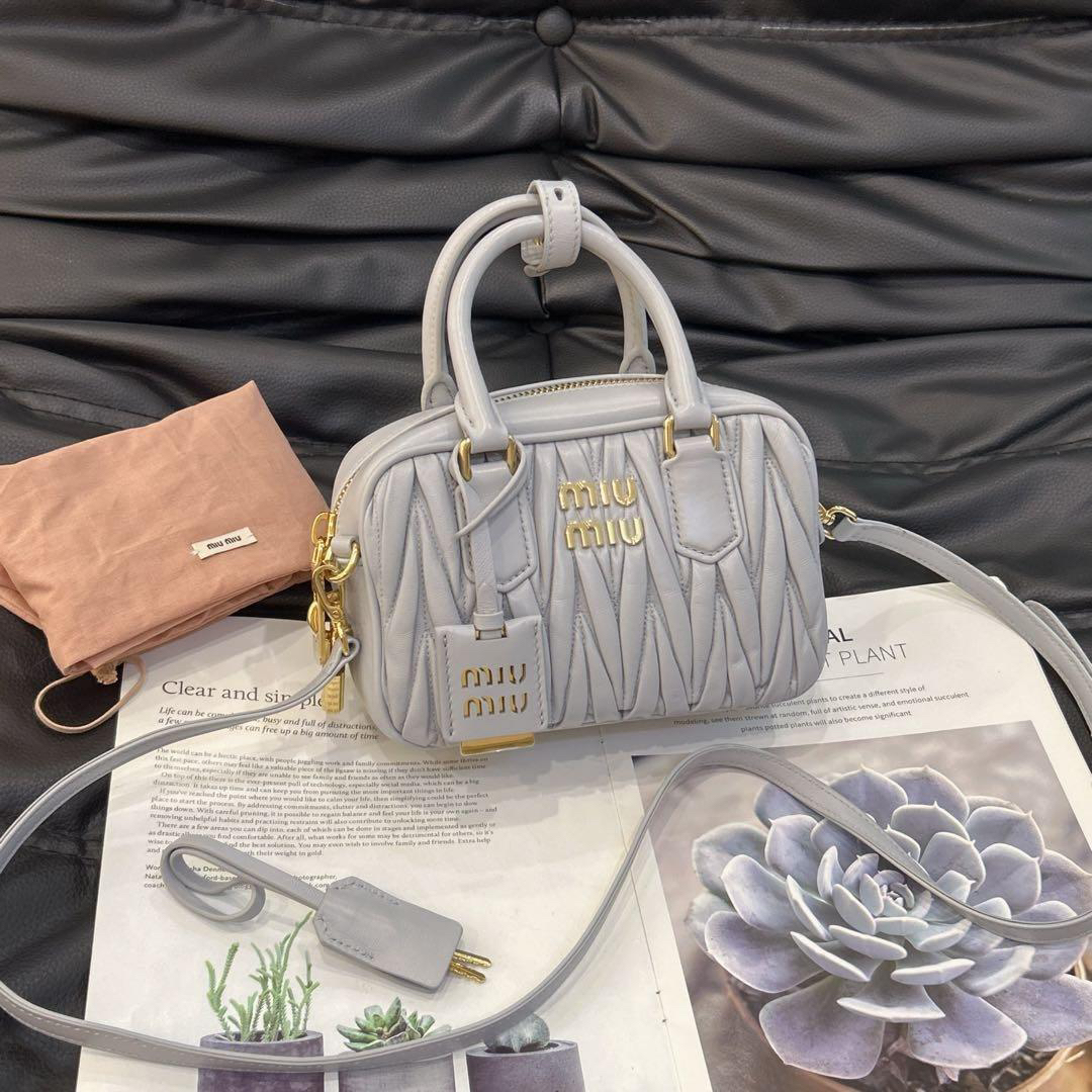 【商品詳情】正品二手 miumiu 保龄球 mini 矢车菊蓝 褶皱 羊皮 斜挎包 🎳 98新 20x14 配件:肩带 钥匙锁 挂件 防尘袋 。名媛千金闭眼入