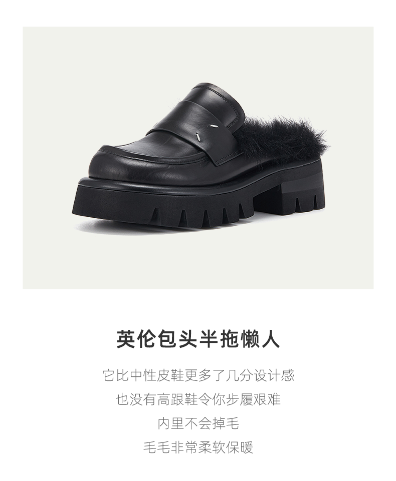 westory秋季新品英伦包头半拖懒人小众设计师真皮平底鞋W23CM73671