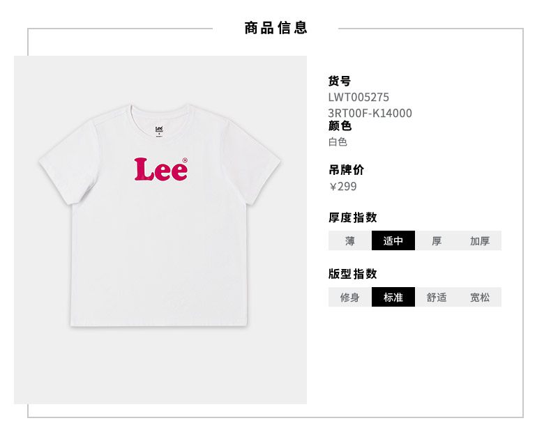 LEE新品标准版印花套头多色女短袖T恤LWT0052753RT