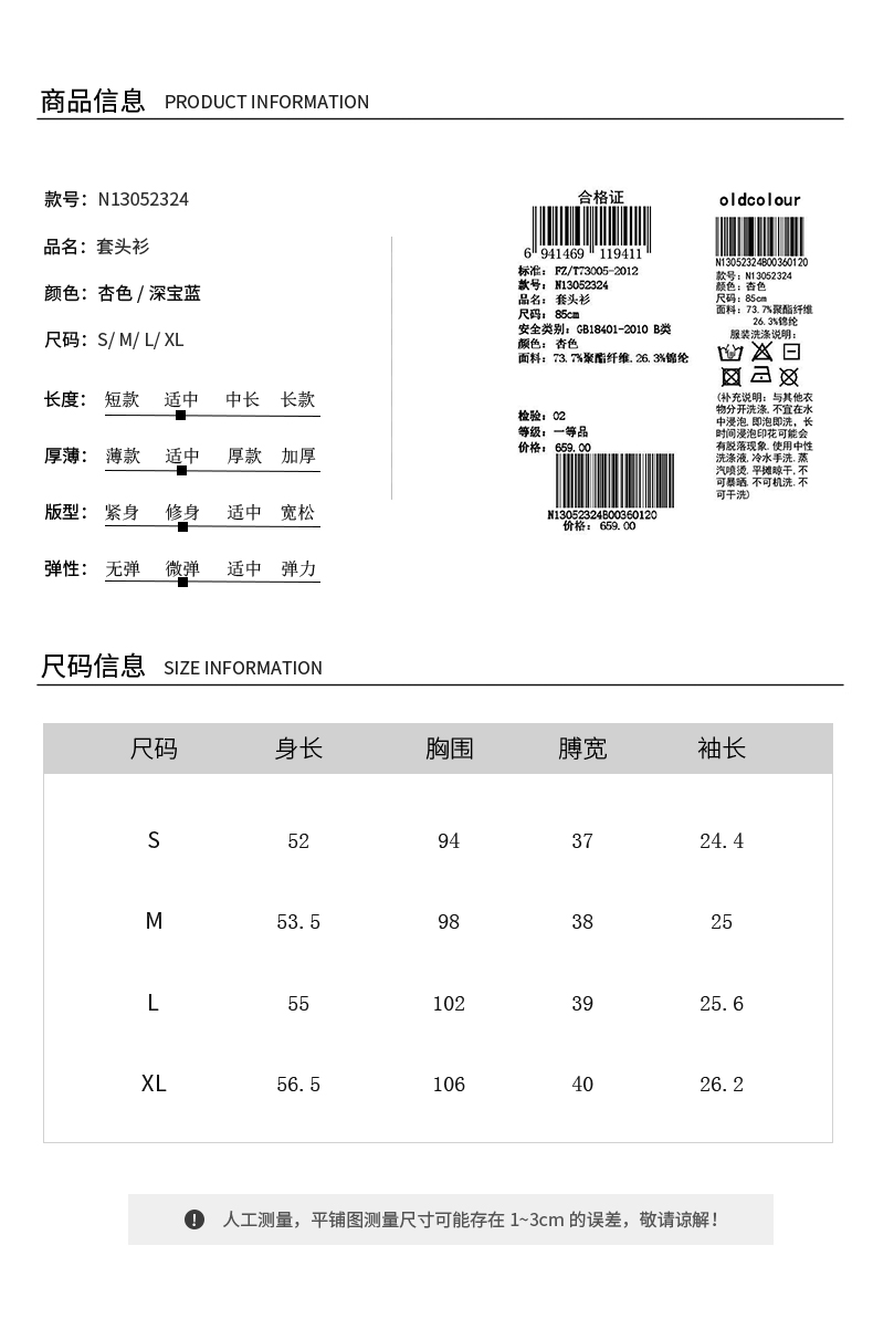 oldcolour纯色T恤春季新款设计感圆领长袖短款上衣女P12023234