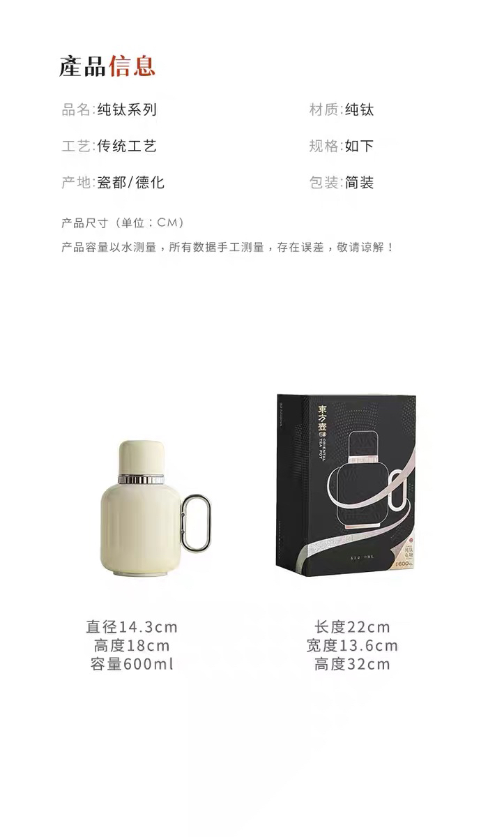 东方壶纯钛保温壶千秋壶暖壶焖泡茶壶600ML