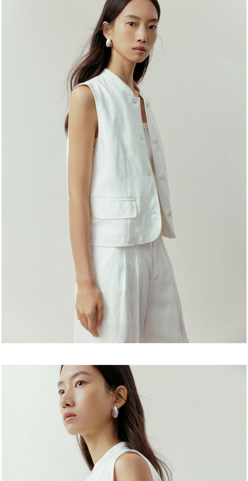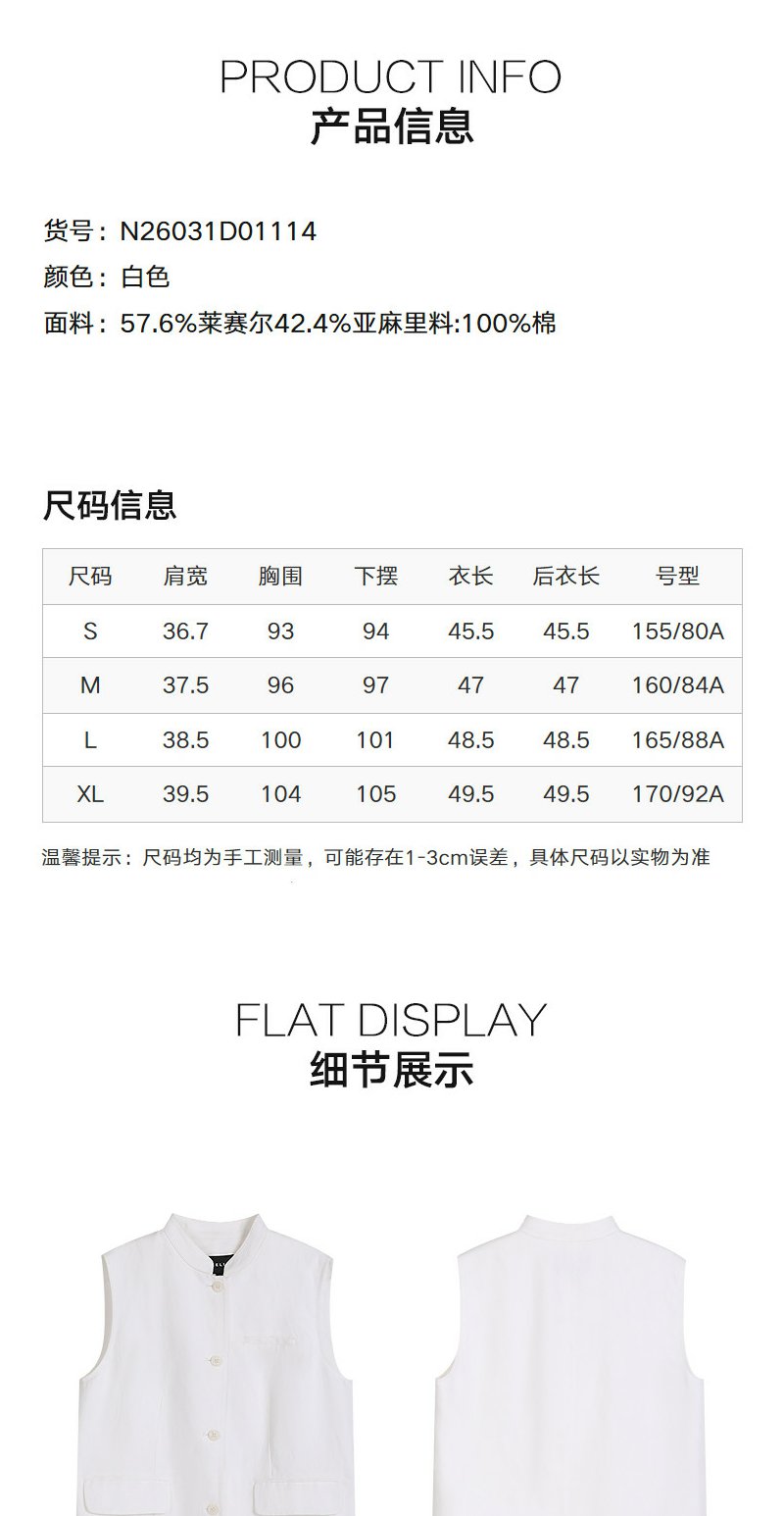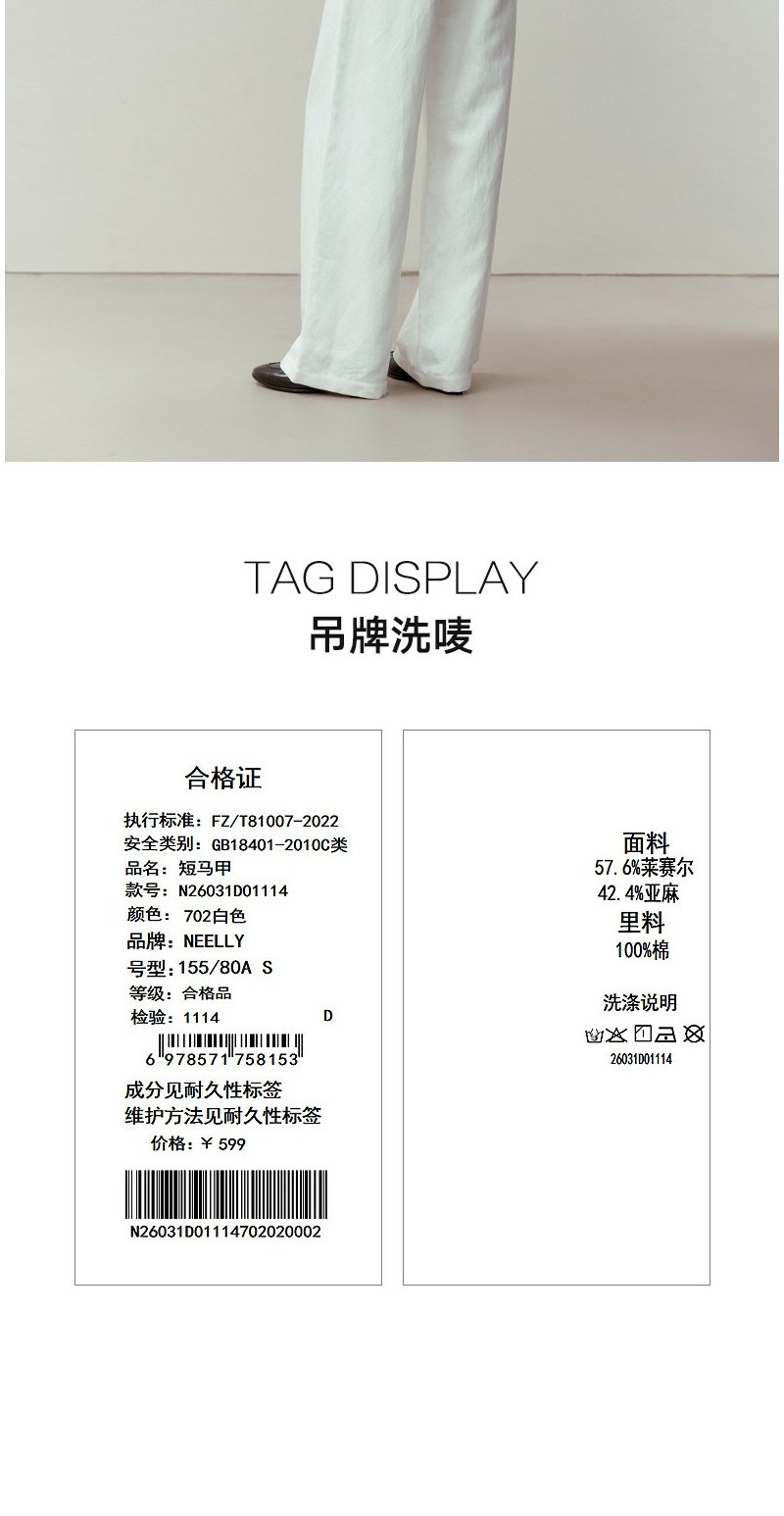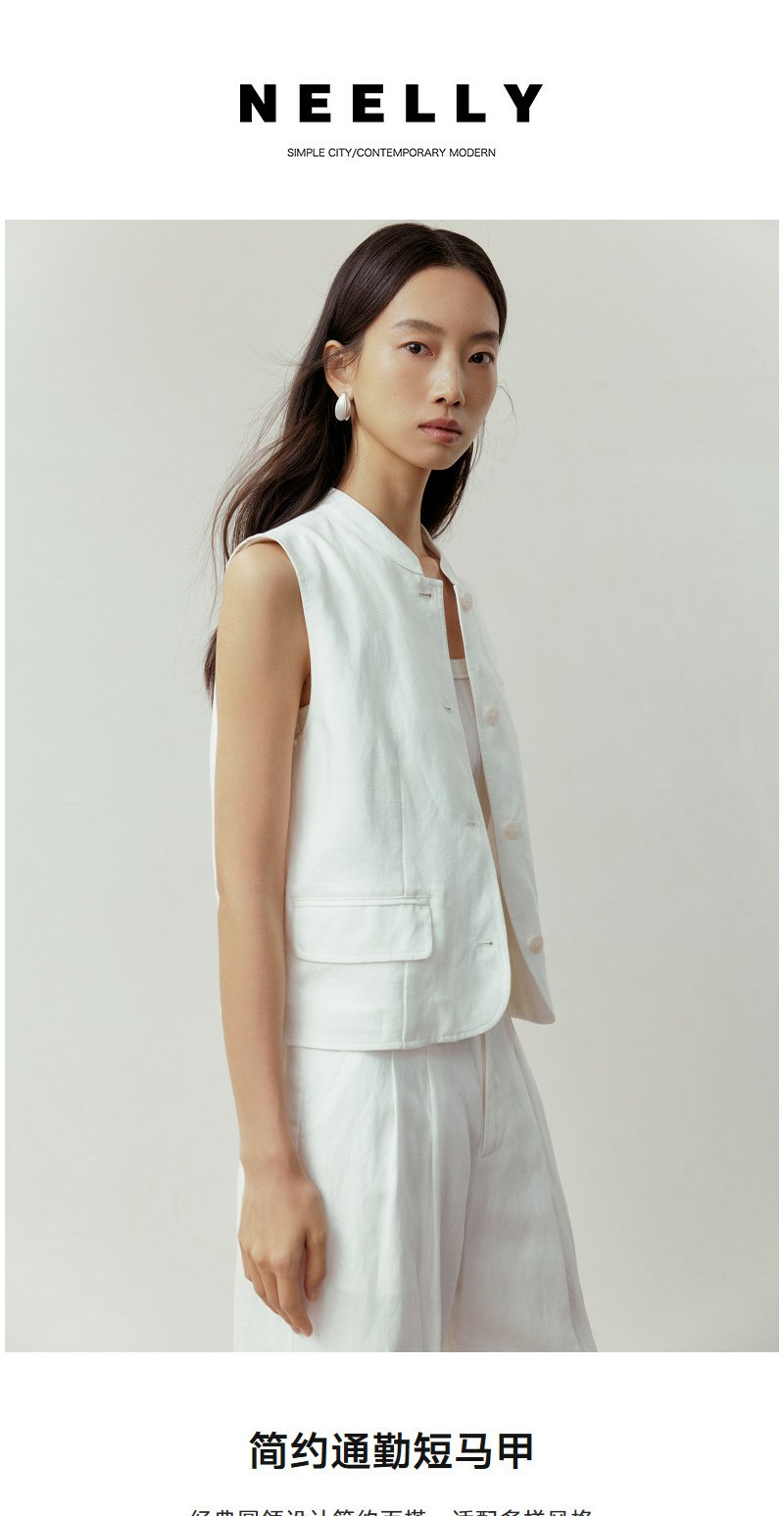 NEELLY纳俪商场同款春新款简约休闲通勤短马甲女百搭舒适叠穿上衣N26031D01114