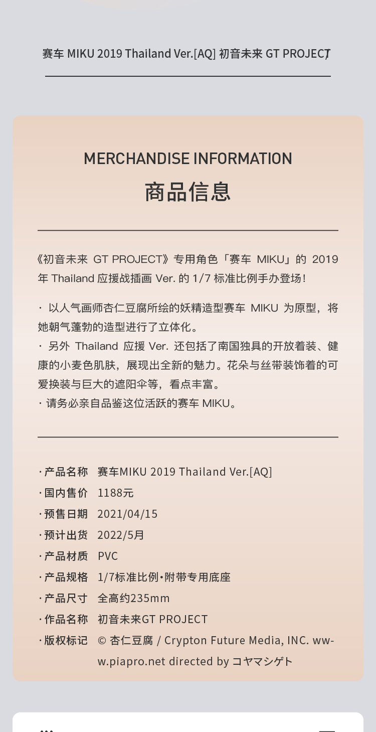 【GSC现货】赛车MIKU 2019 Thailand Ver.[AQ] 初音未来GT PROJECT