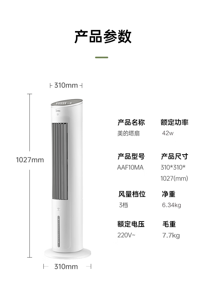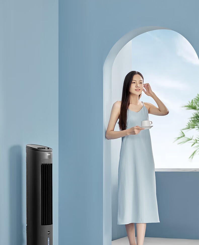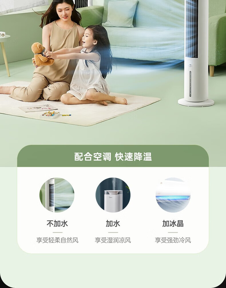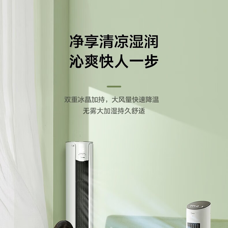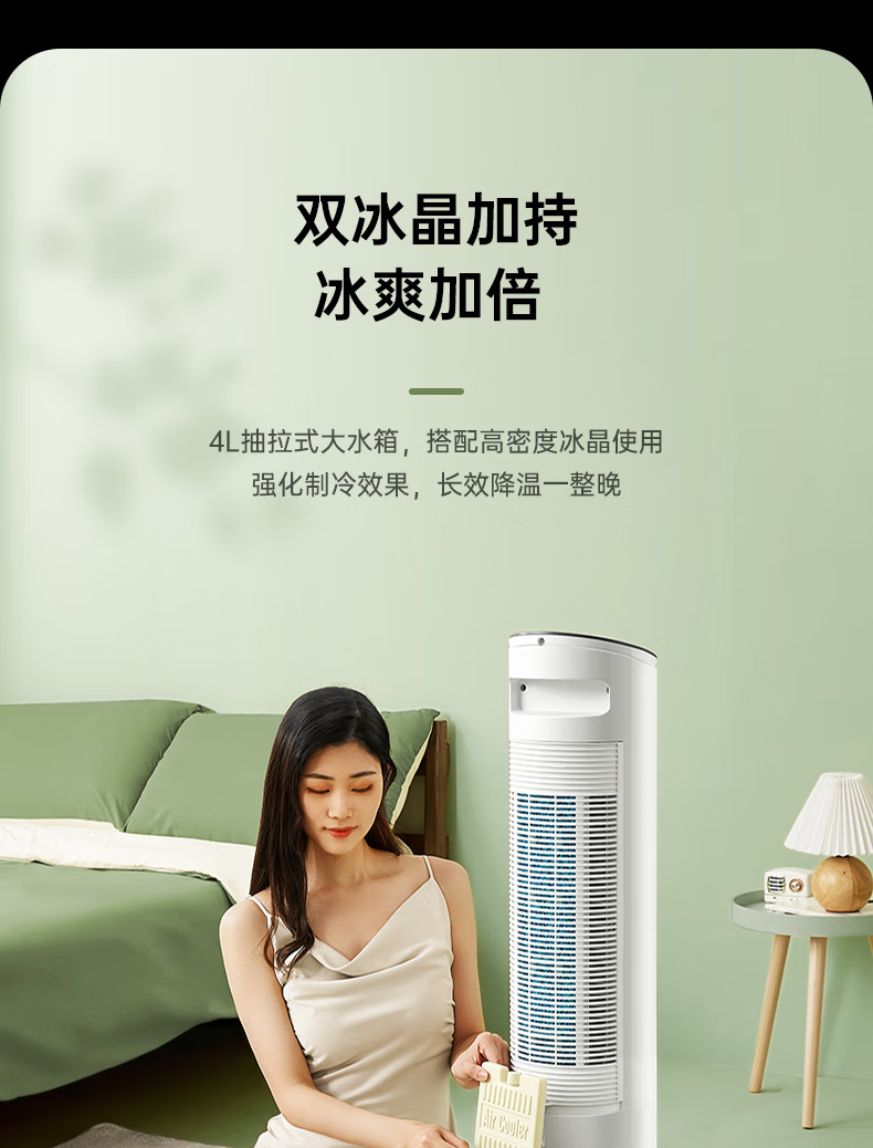 美的(Midea)冷风扇_家用水冷塔扇_无叶柔风冷风机_加湿制冷空调扇_立式客厅卧室轻音节能落地扇_AAF10MA_4L水箱【含2块大冰晶】