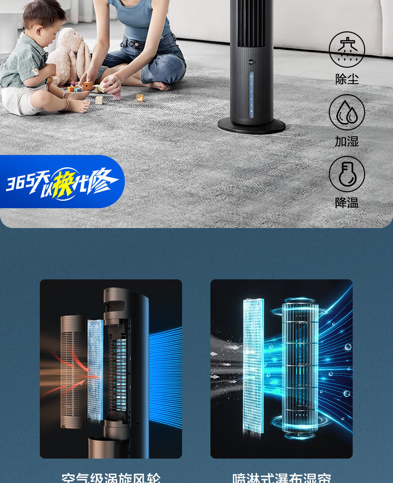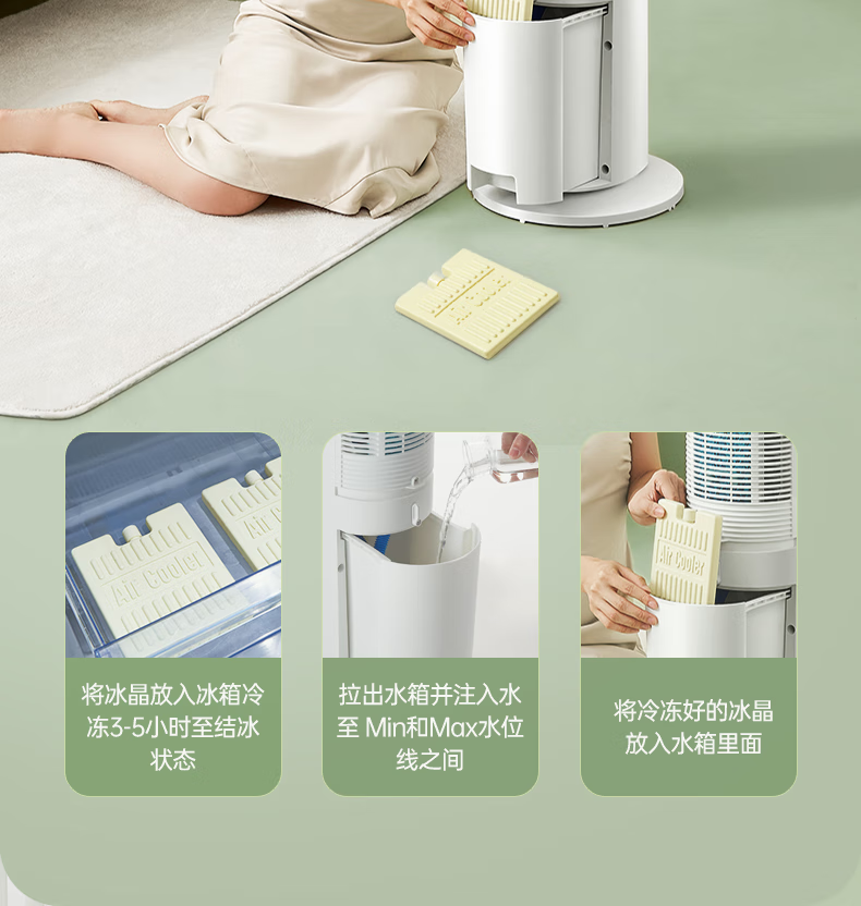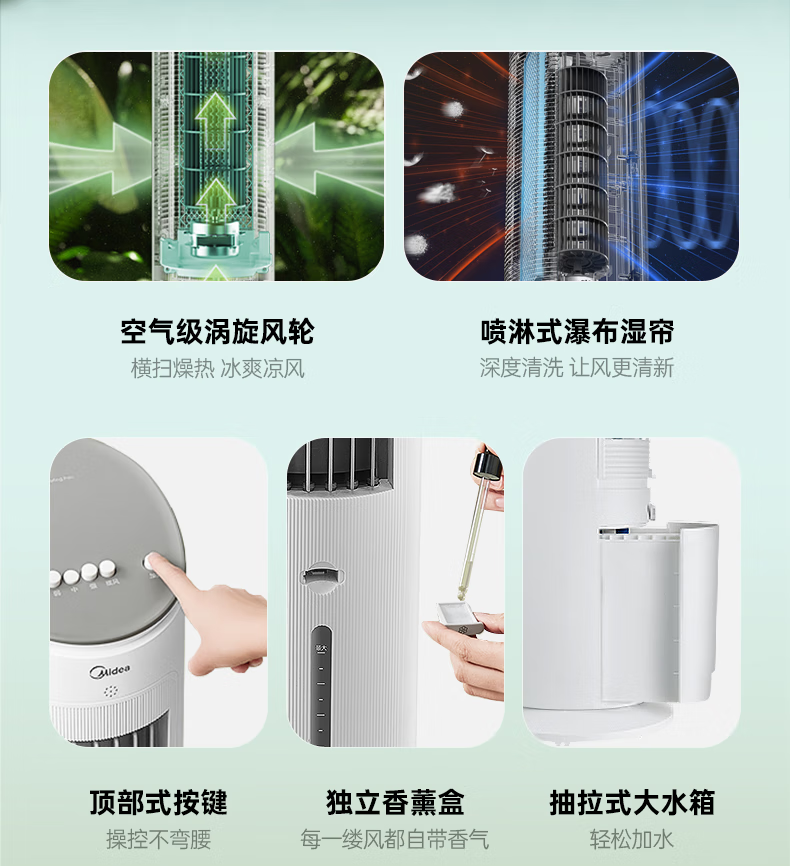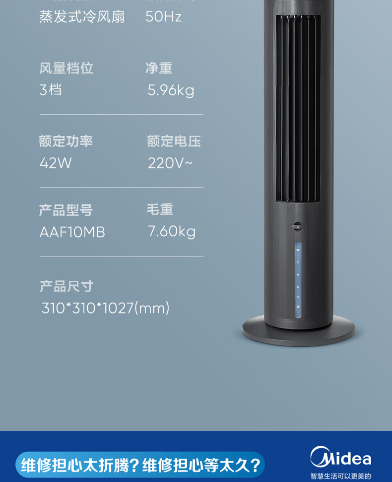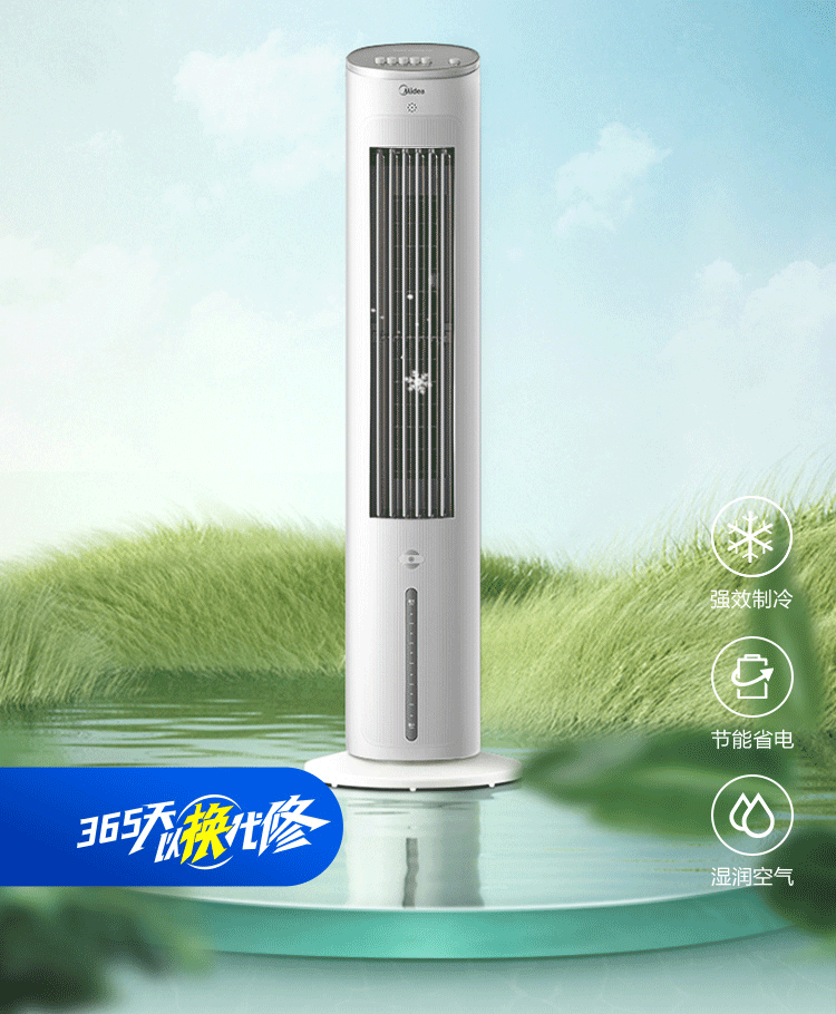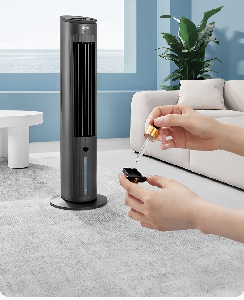 美的(Midea)冷风扇_家用水冷塔扇_无叶柔风冷风机_加湿制冷空调扇_立式客厅卧室轻音节能落地扇_AAF10MA_4L水箱【含2块大冰晶】