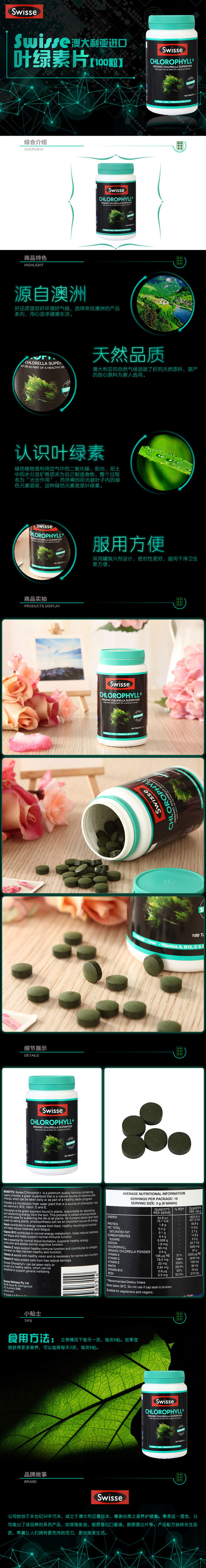 【保税仓】Swisse 植物精华萃取叶绿素片 100片